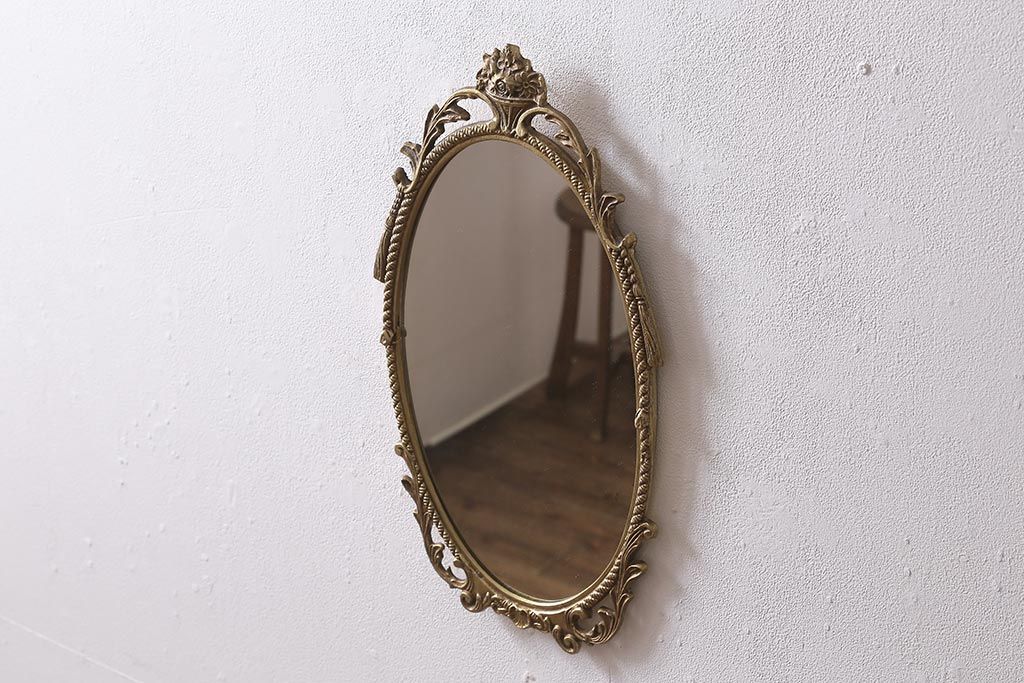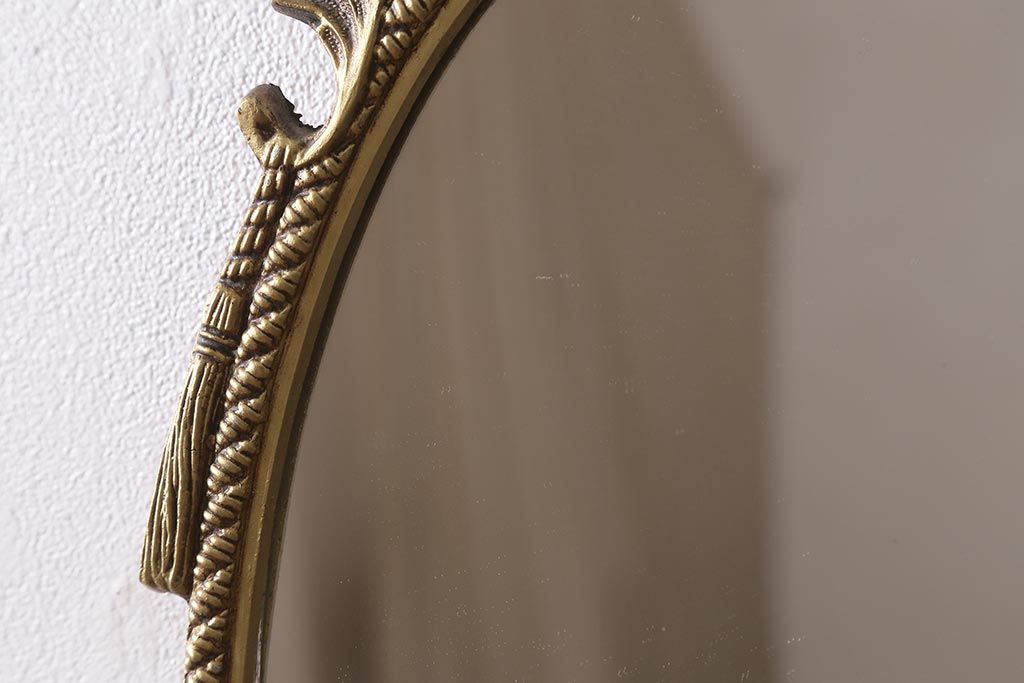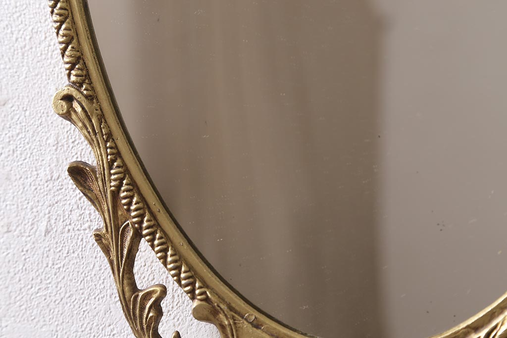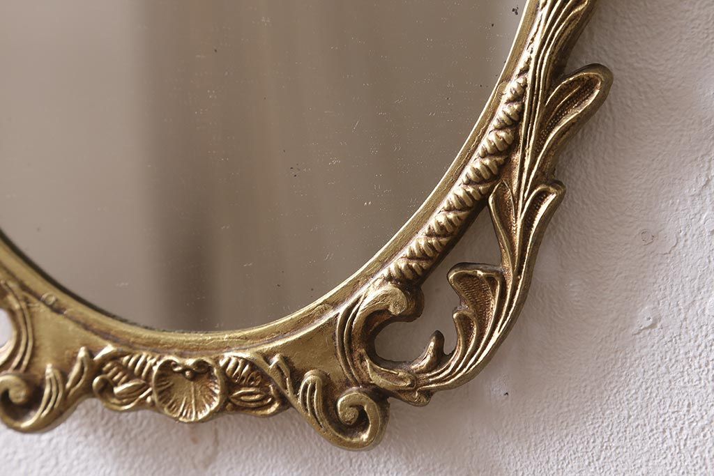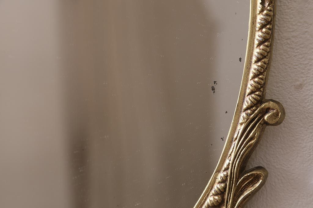 ヴィンテージ雑貨 ヨーロッパビンテージ 気品漂うデザインの丸型ウォールミラー(鏡)(R-043308)