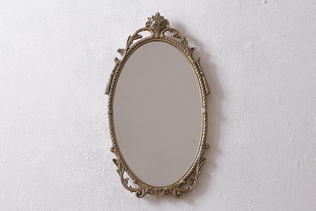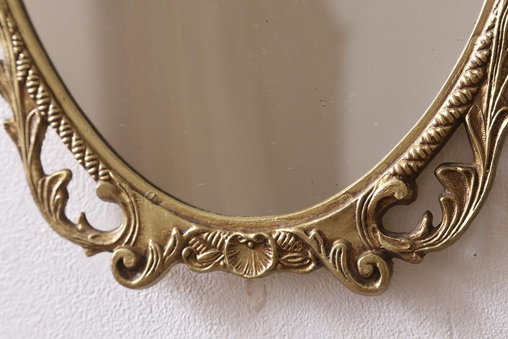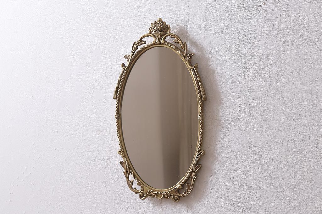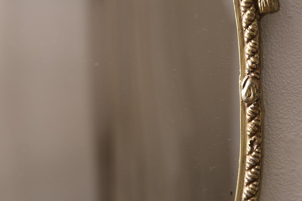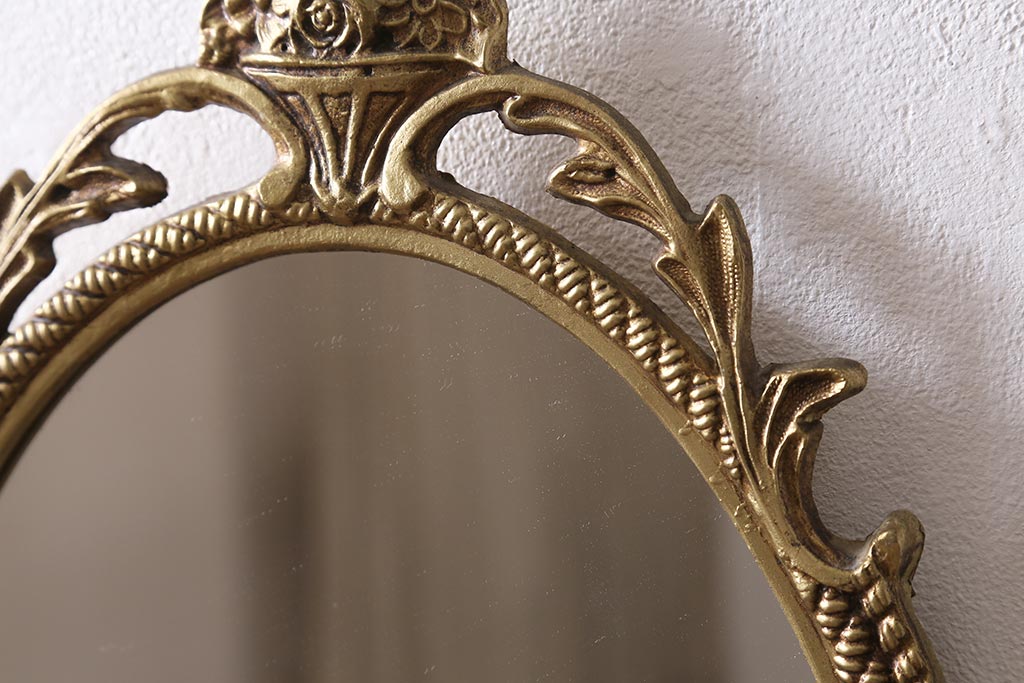 ヴィンテージ雑貨 ヨーロッパビンテージ 気品漂うデザインの丸型ウォールミラー(鏡)(R-043308)