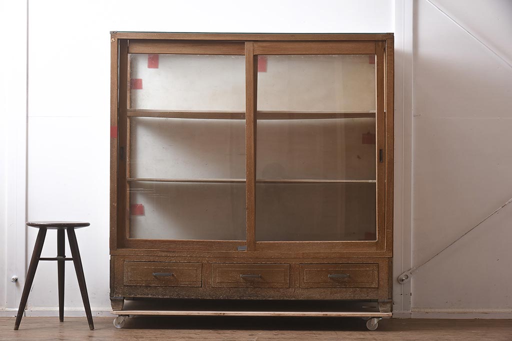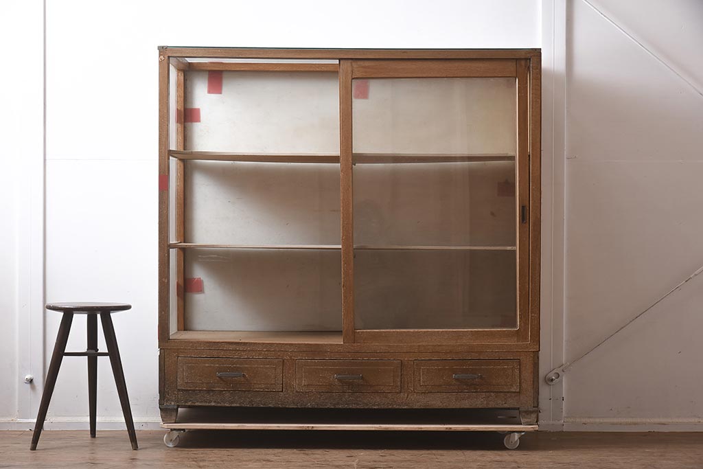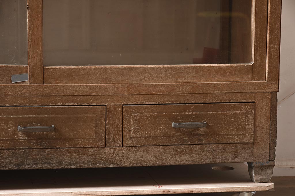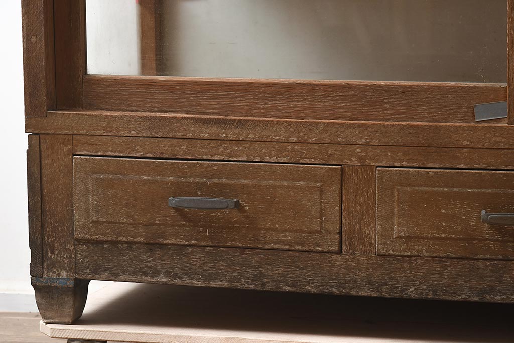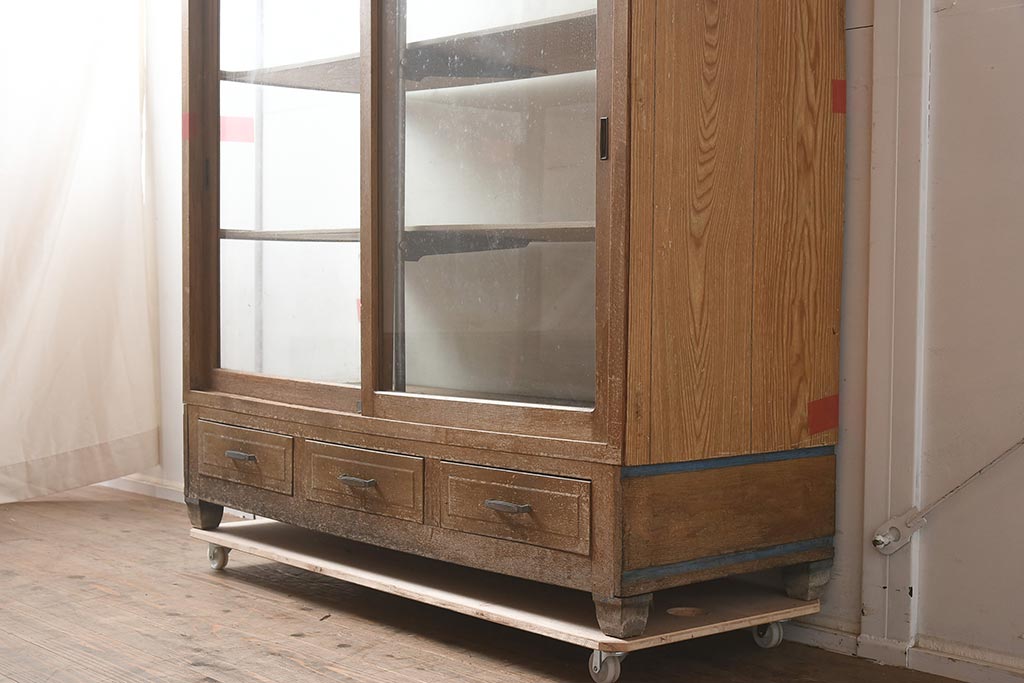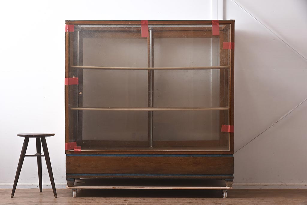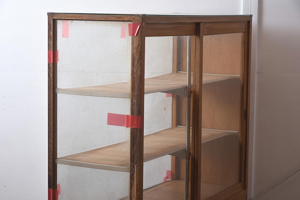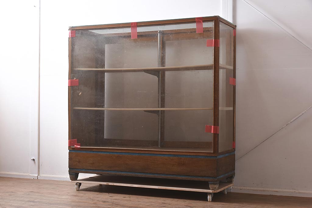 アンティーク家具 昭和中期 ナラ材 大型サイズのレトロなガラスケース(ショーケース、陳列棚)(R-043364)です。