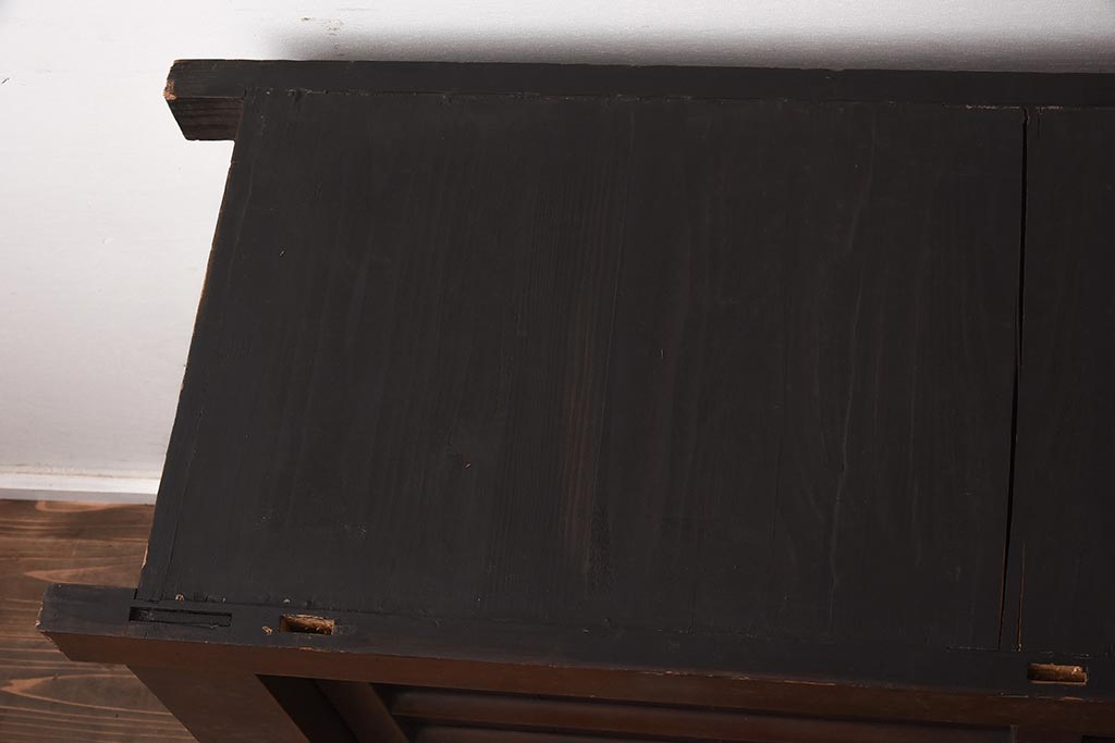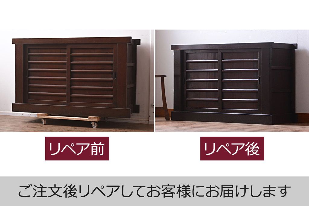 アンティーク家具 横桟引き戸の4尺水屋サイドボード(四尺水屋箪笥、戸棚、収納棚)(R-043285)