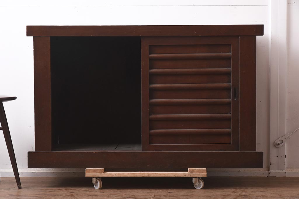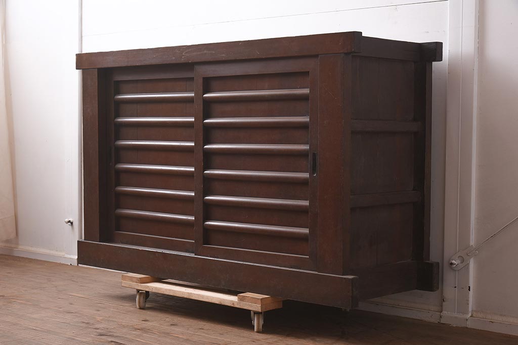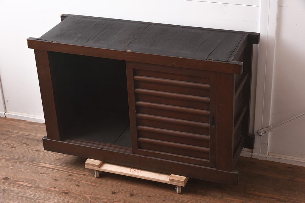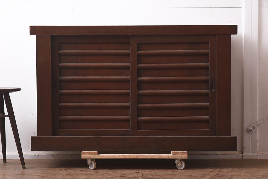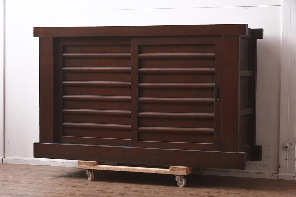 アンティーク家具 横桟引き戸の4尺水屋サイドボード(四尺水屋箪笥、戸棚、収納棚)(R-043285)です。