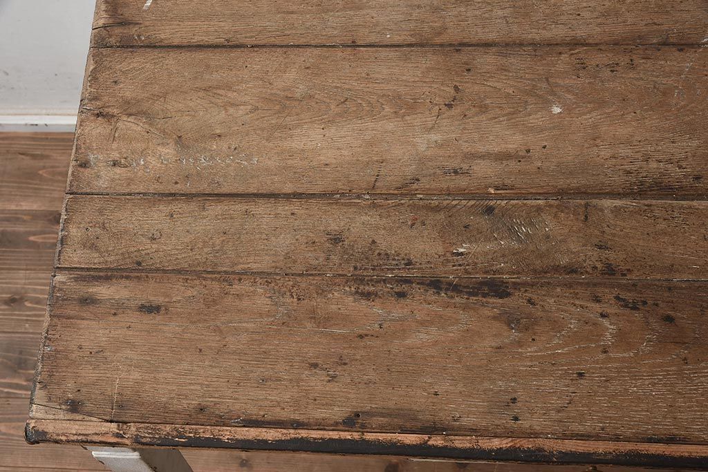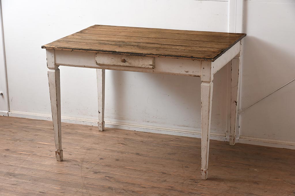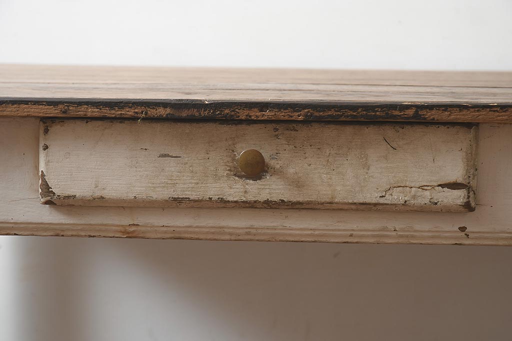 テーブル> 作業台 > フランスアンティーク シャビーな質感がお洒落なペイントテーブル(カフェテーブル、机、在宅ワーク、在宅用作業台、ワークデスク)(R-042207)