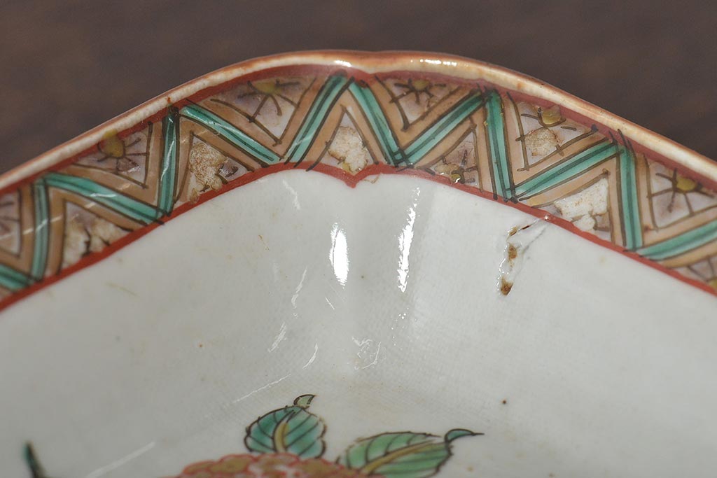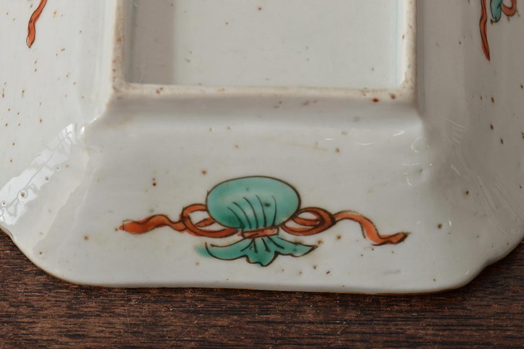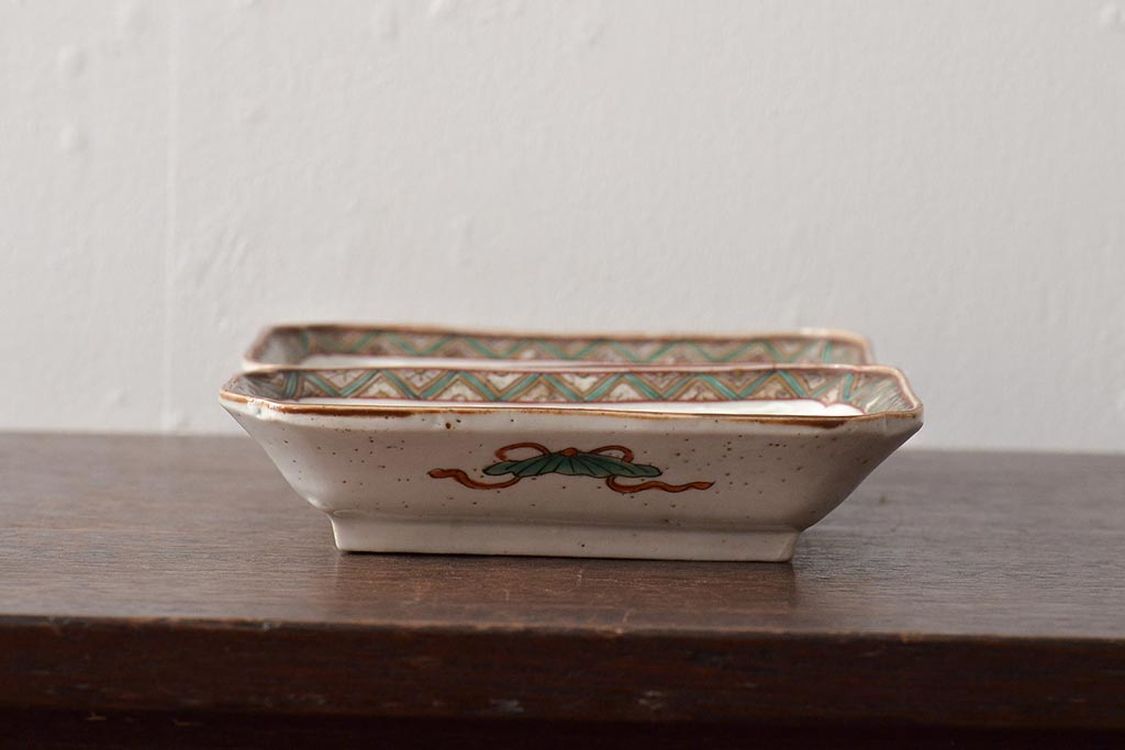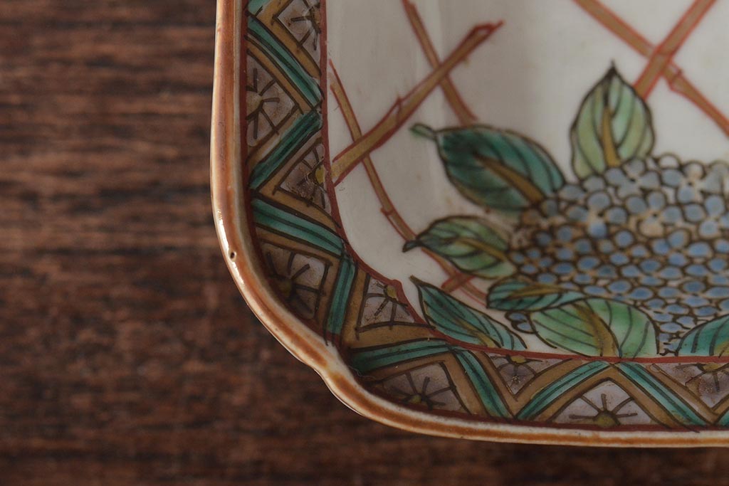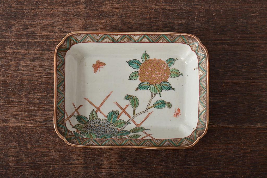 ラフジュ工房> 和食器・茶道具> 皿 > アンティーク雑貨 江戸期 九谷焼 花蝶図 角皿2枚セット(古九谷、古伊万里)(R-043237)