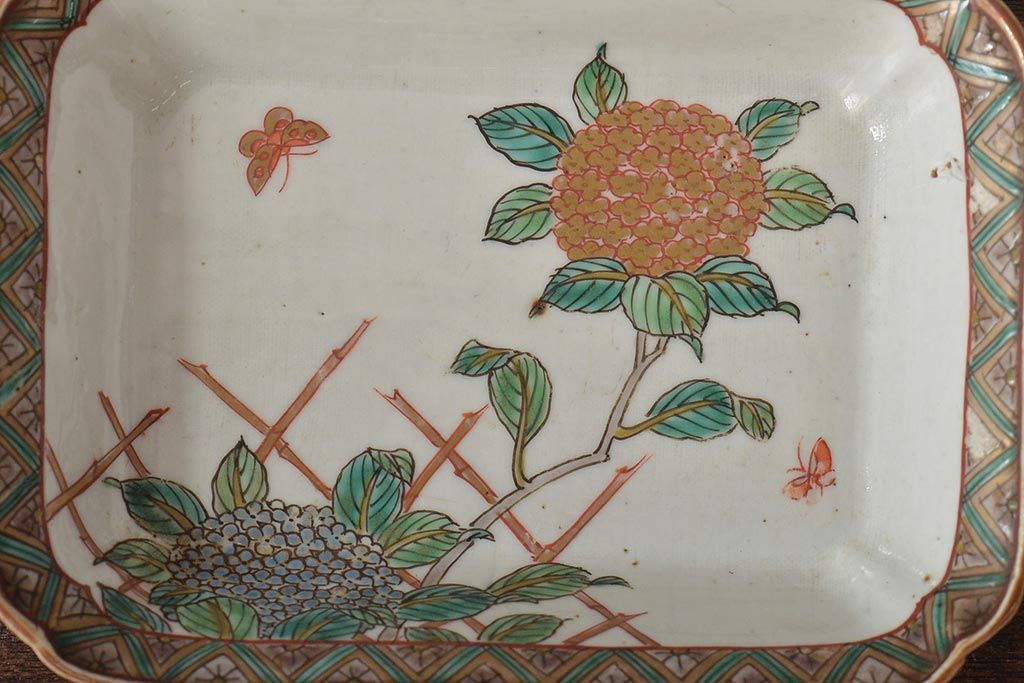 ラフジュ工房> 骨董・美術品> 骨董-陶磁器 > アンティーク雑貨 江戸期 九谷焼 花蝶図 角皿2枚セット(古九谷、古伊万里)(R-043237)