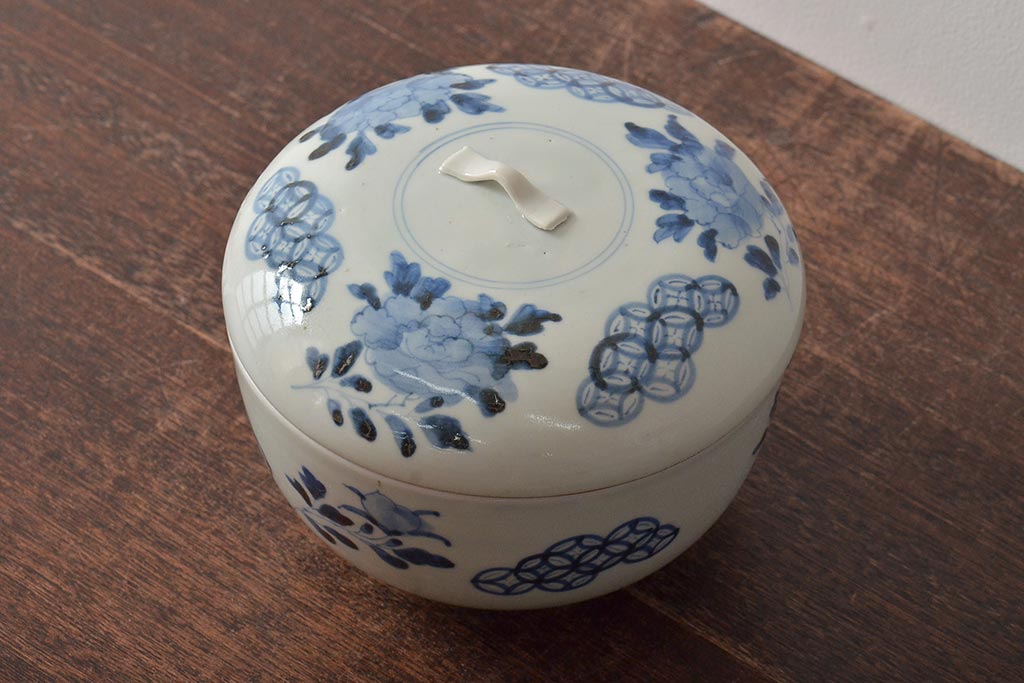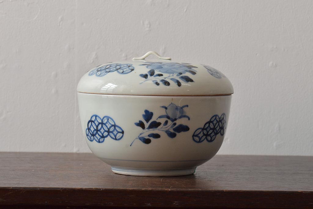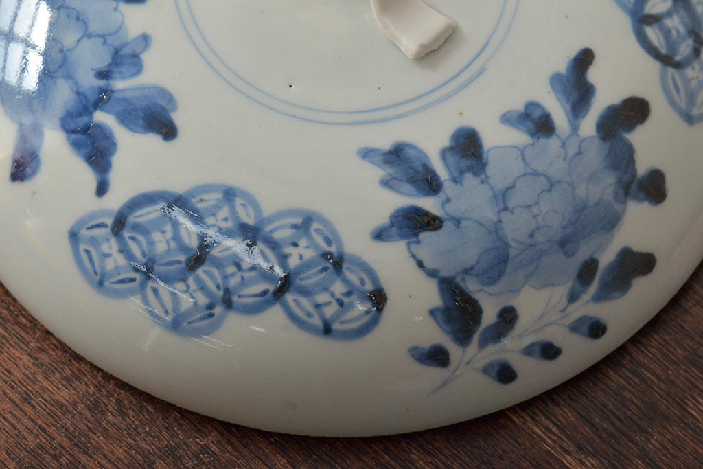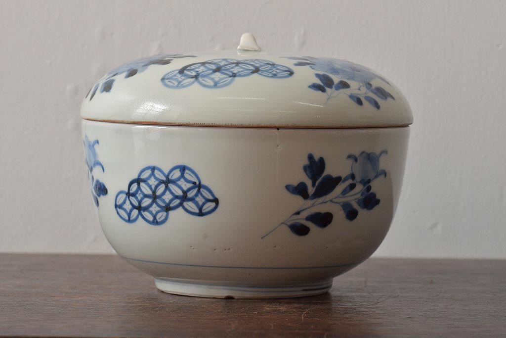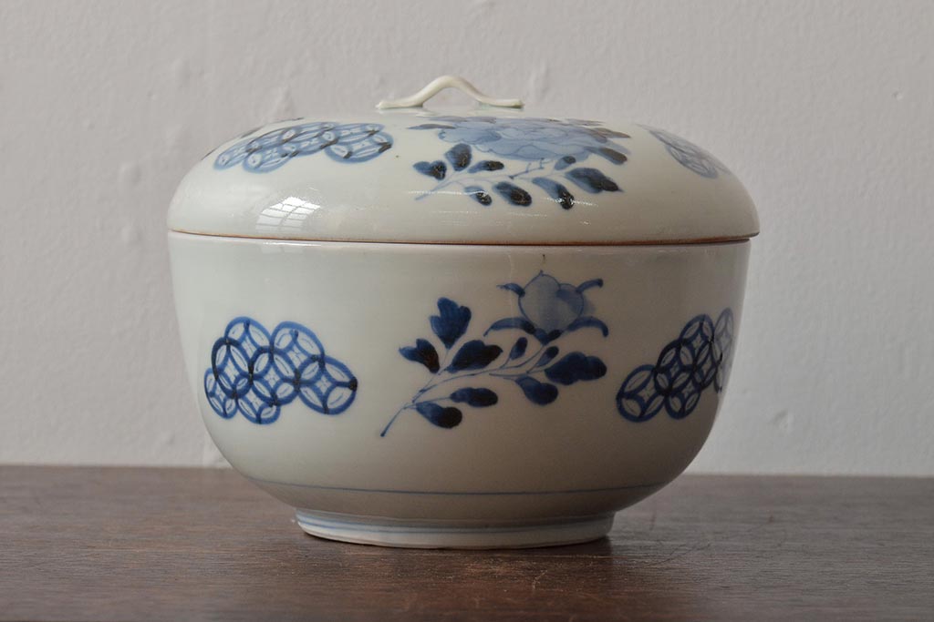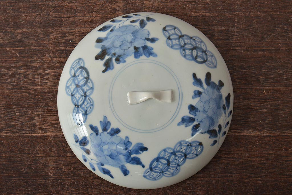 アンティーク雑貨 江戸期 古伊万里 牡丹文蓋物(深鉢、深皿)(R-043239)