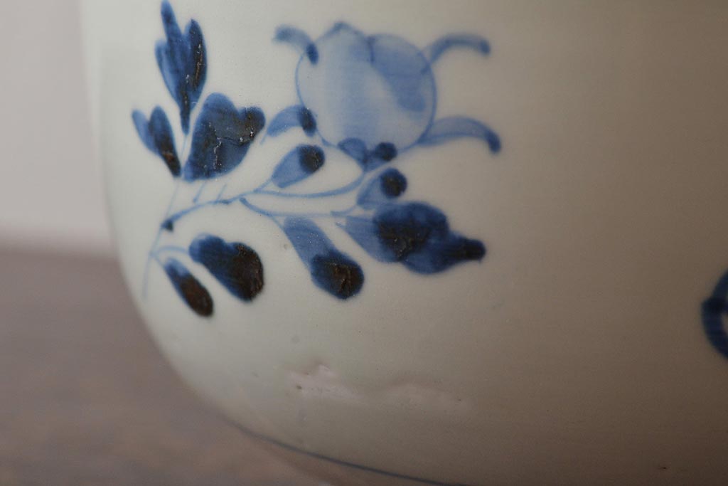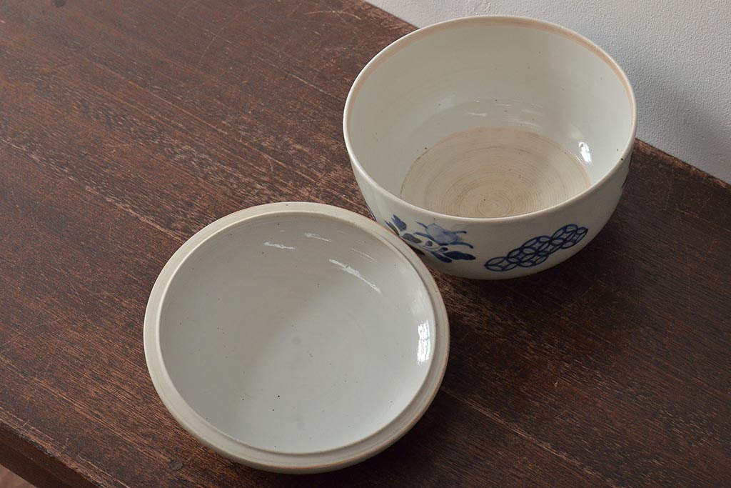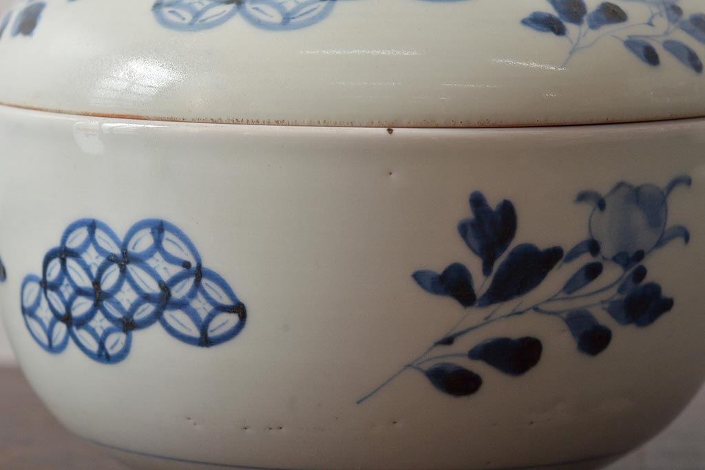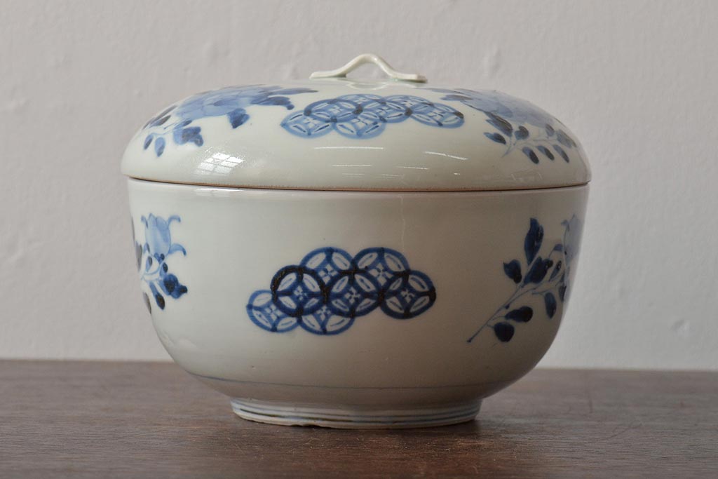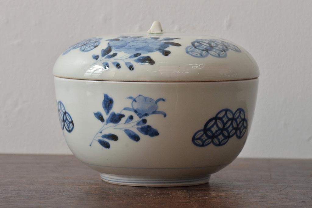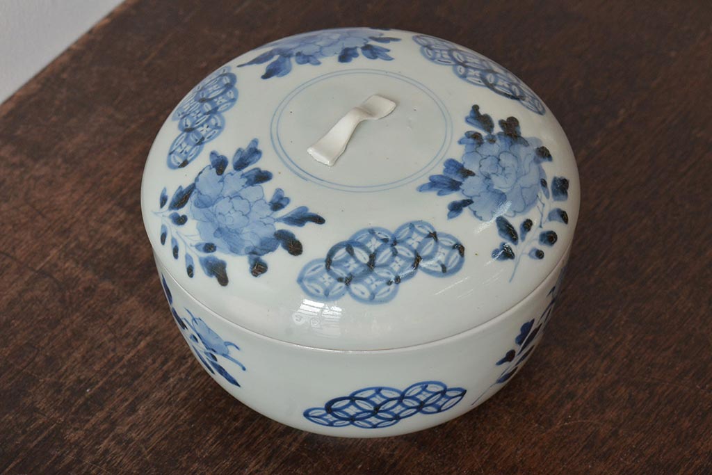 アンティーク雑貨 江戸期 古伊万里 牡丹文蓋物(深鉢、深皿)(R-043239)