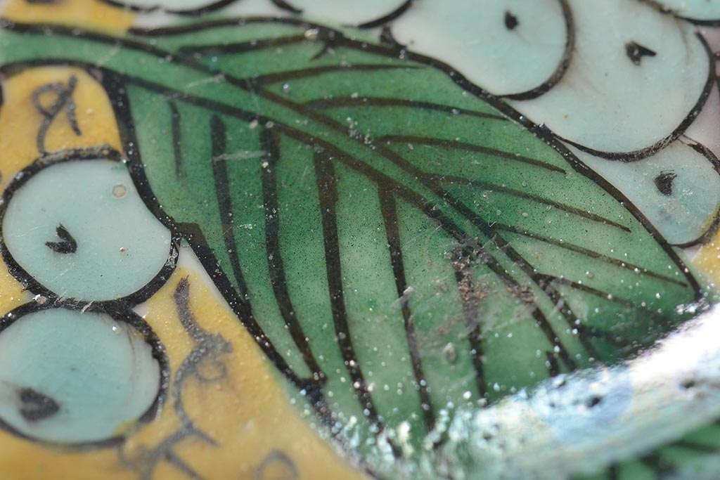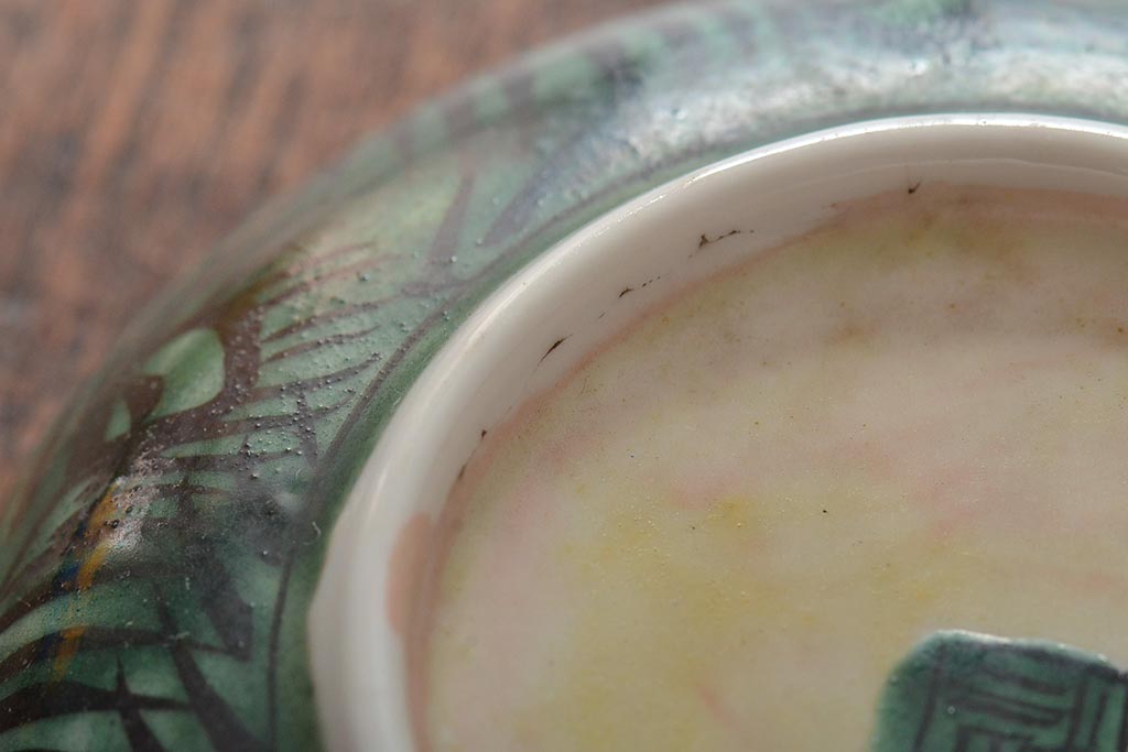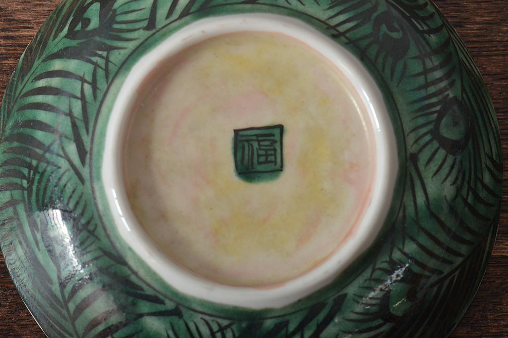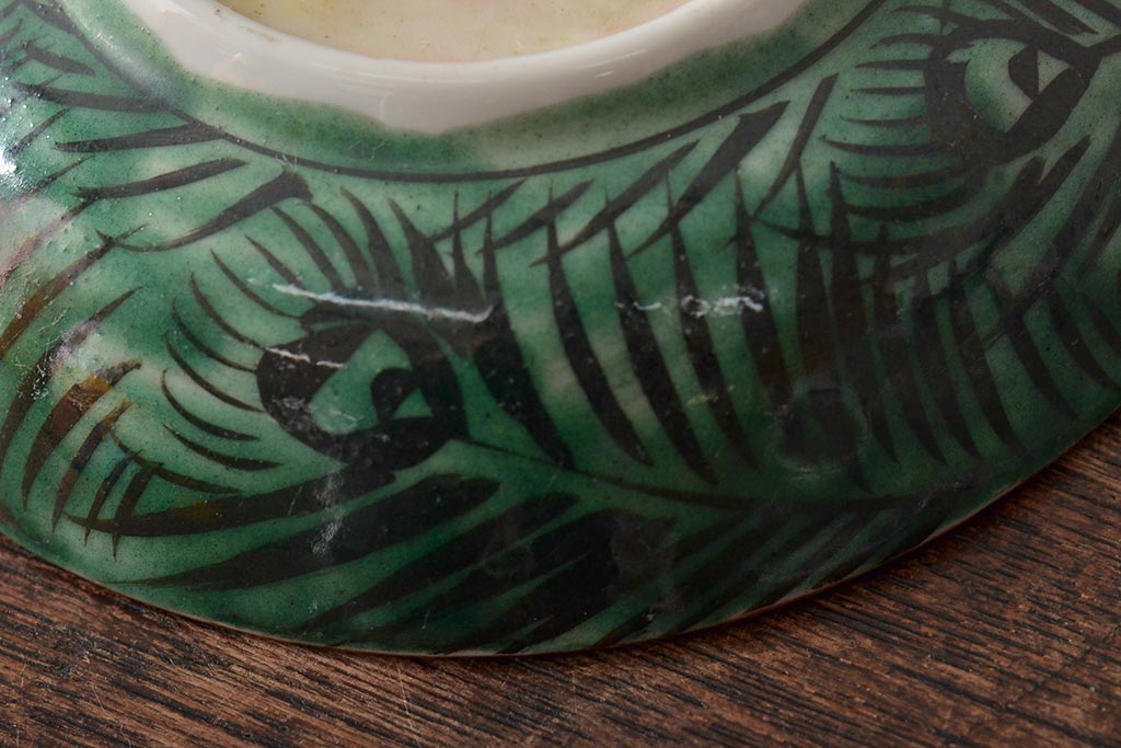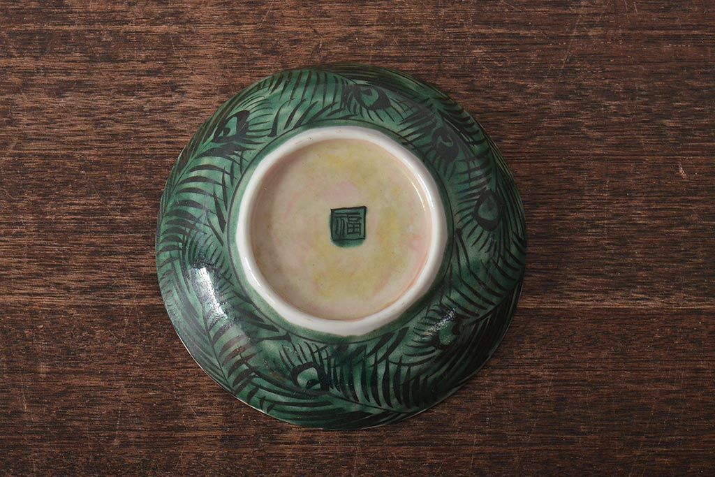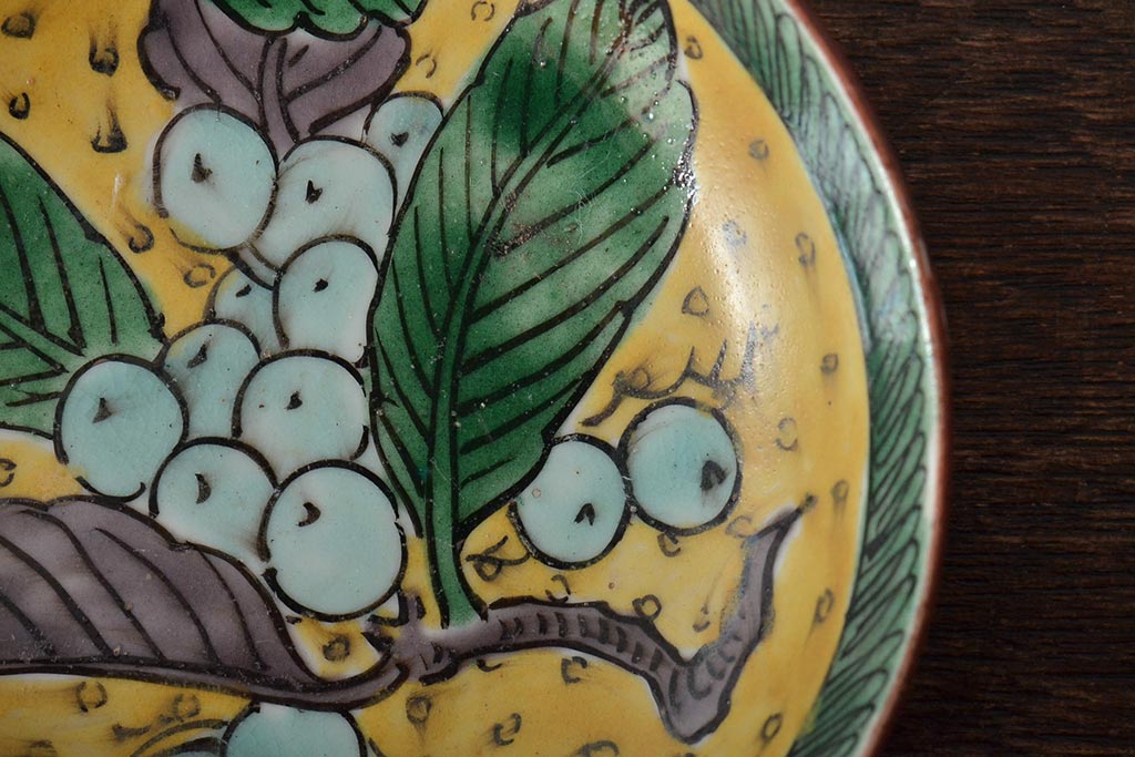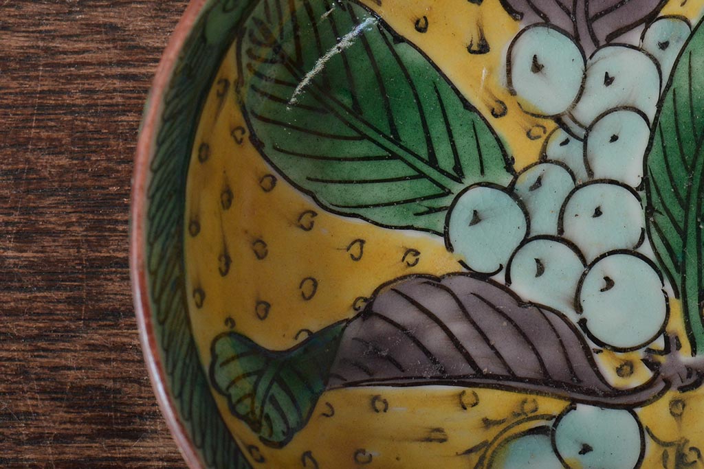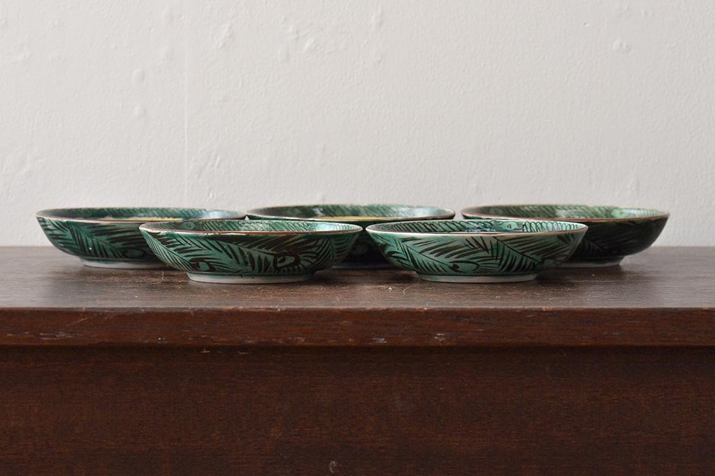 アンティーク雑貨 江戸明治期 九谷焼 角福 色絵果実染付小皿5枚セット(和食器)(R-043229)