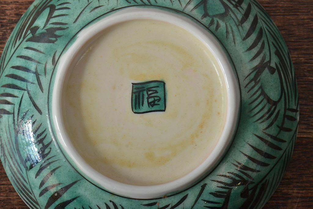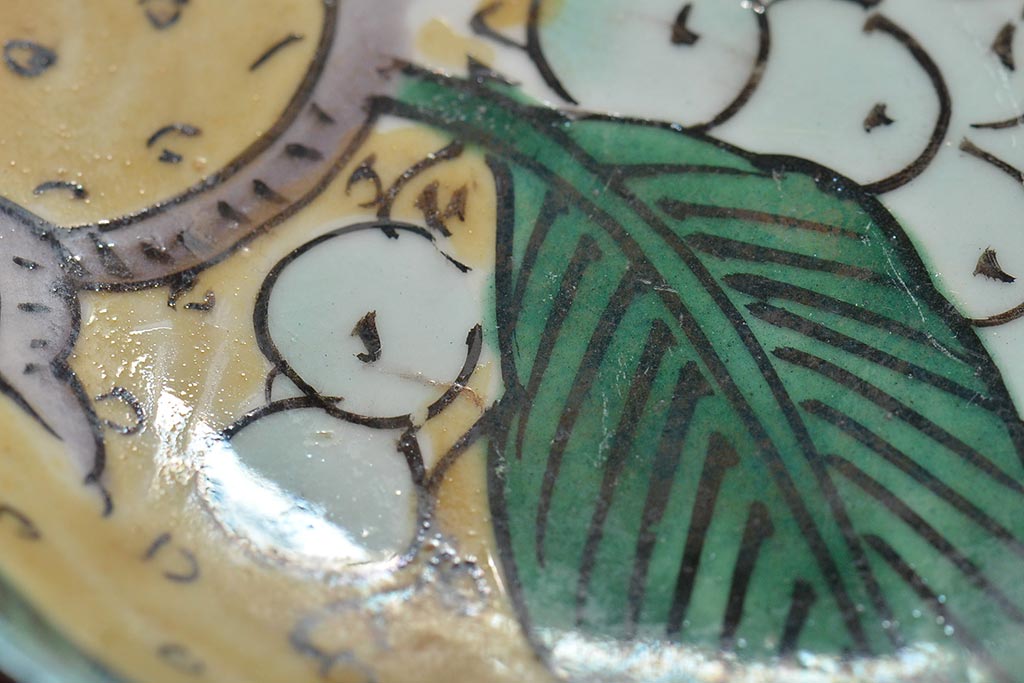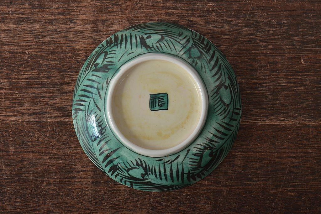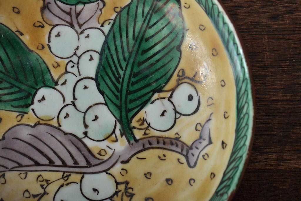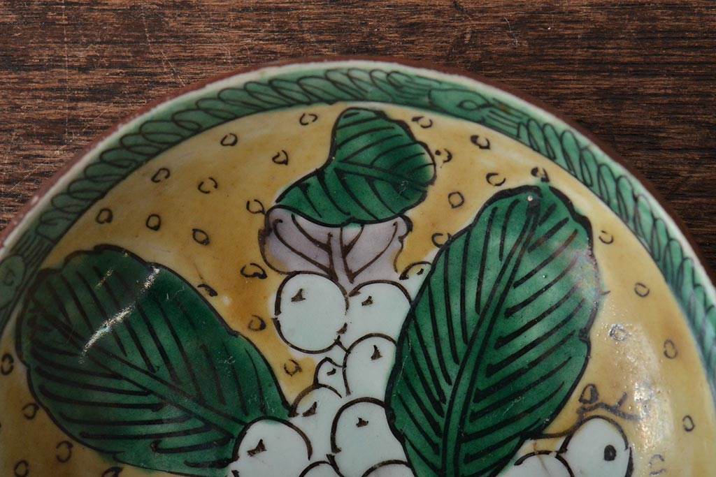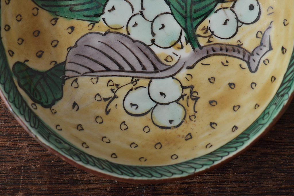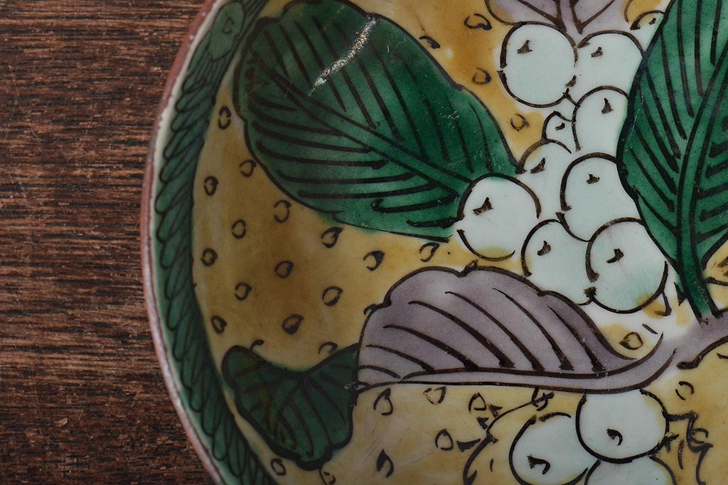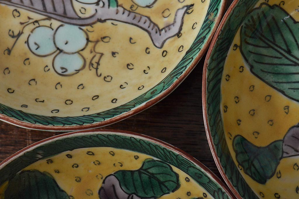 アンティーク雑貨 江戸明治期 九谷焼 角福 色絵果実染付小皿5枚セット(和食器)(R-043230)
