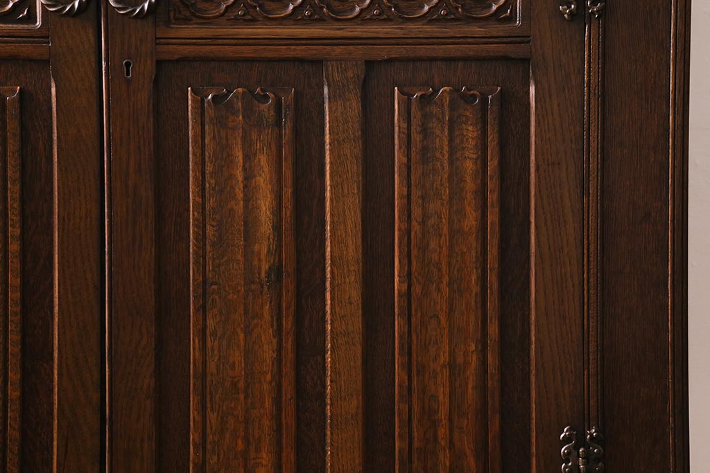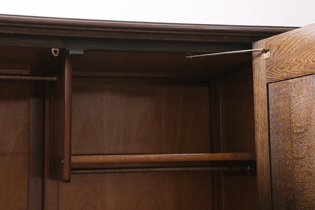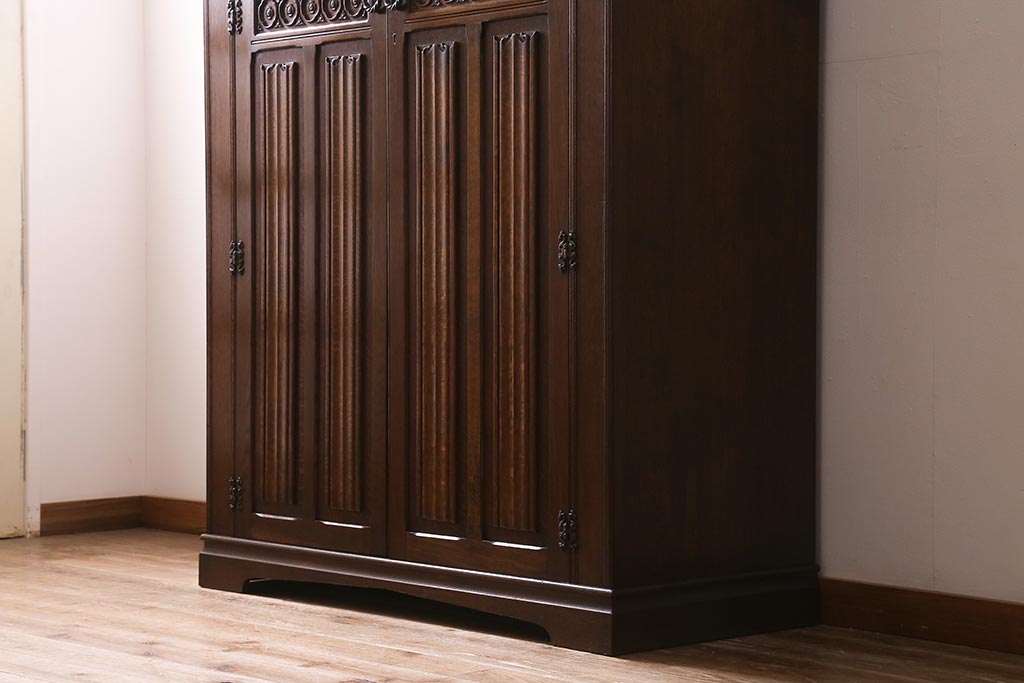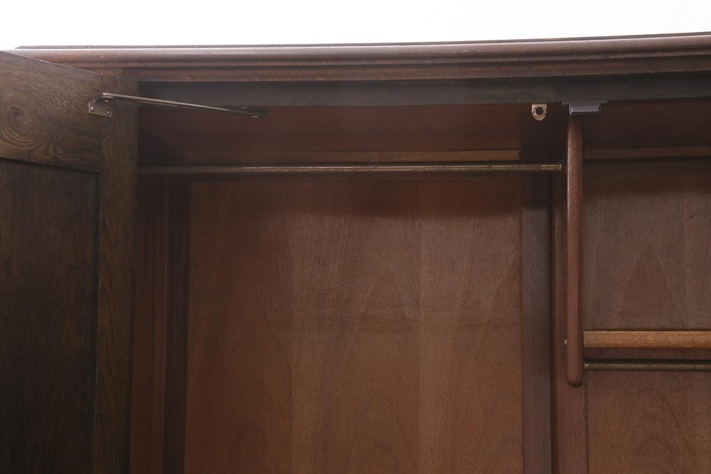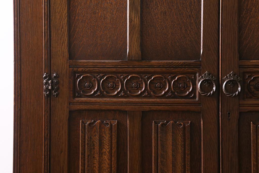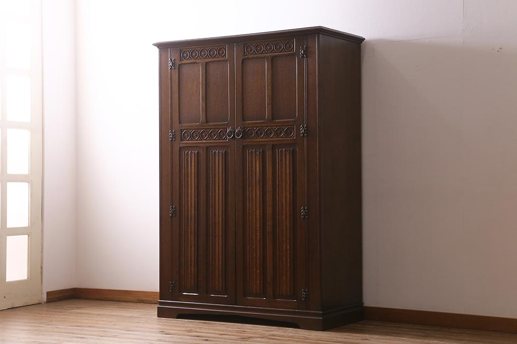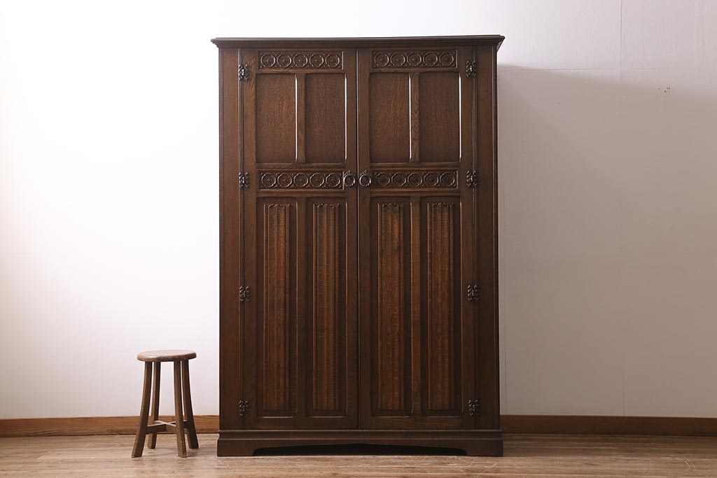 ヴィンテージ家具 ヨーロッパビンテージ CROWN AY FURNITURE オーク材 優雅な彫りの意匠が目を引くワードローブ(洋服箪笥)(R-043270)