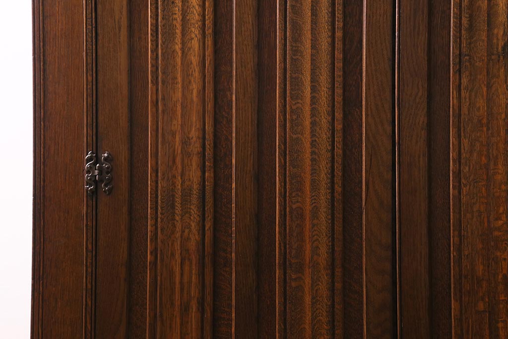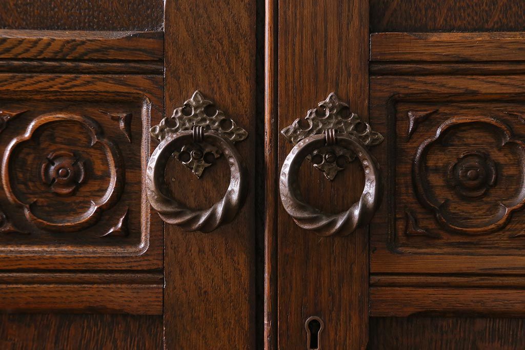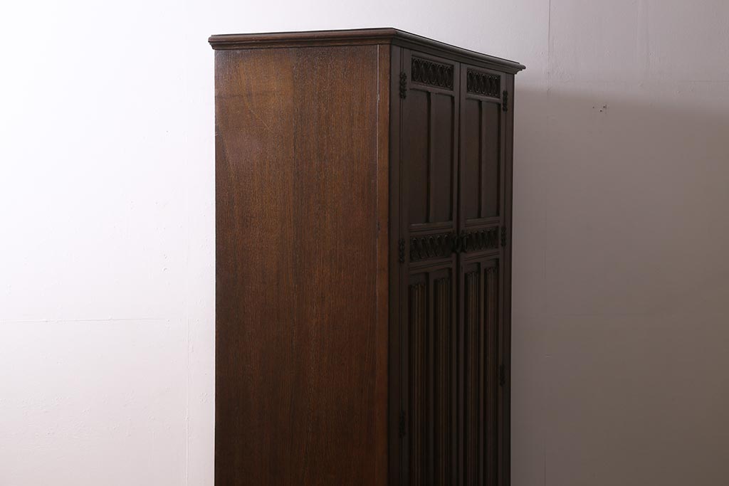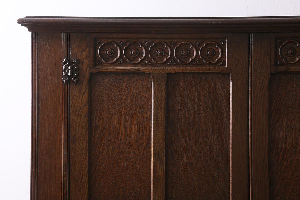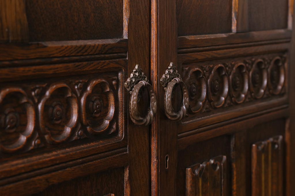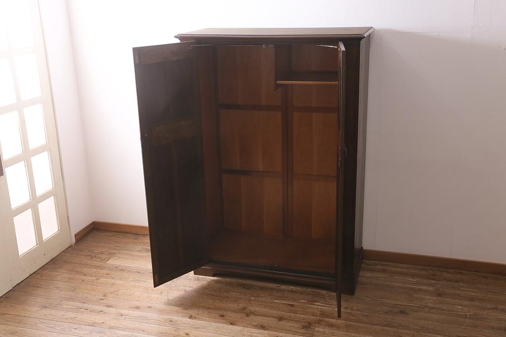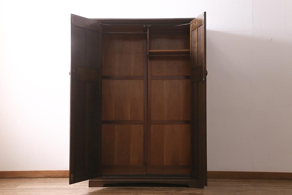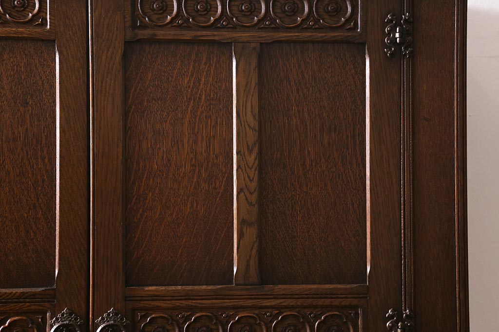 ヴィンテージ家具 ヨーロッパビンテージ CROWN AY FURNITURE オーク材 優雅な彫りの意匠が目を引くワードローブ(洋服箪笥)(R-043270)