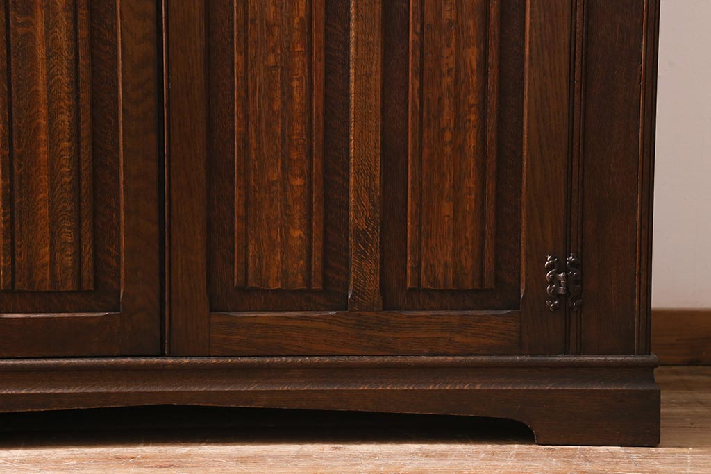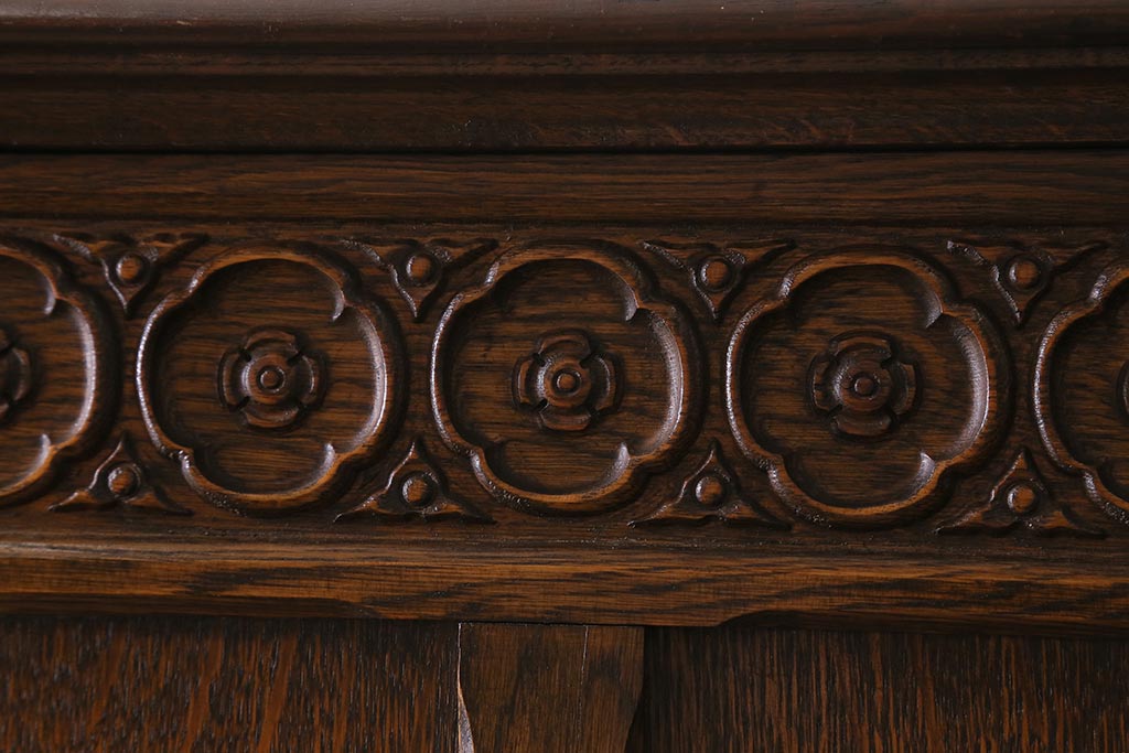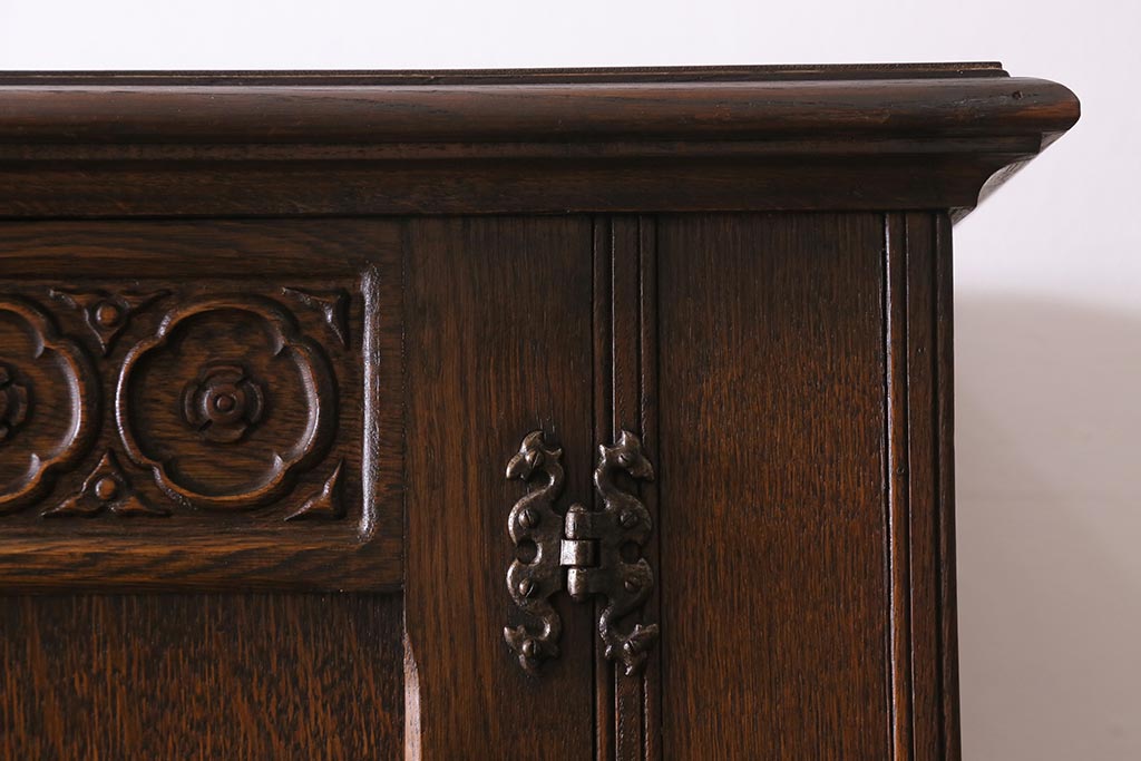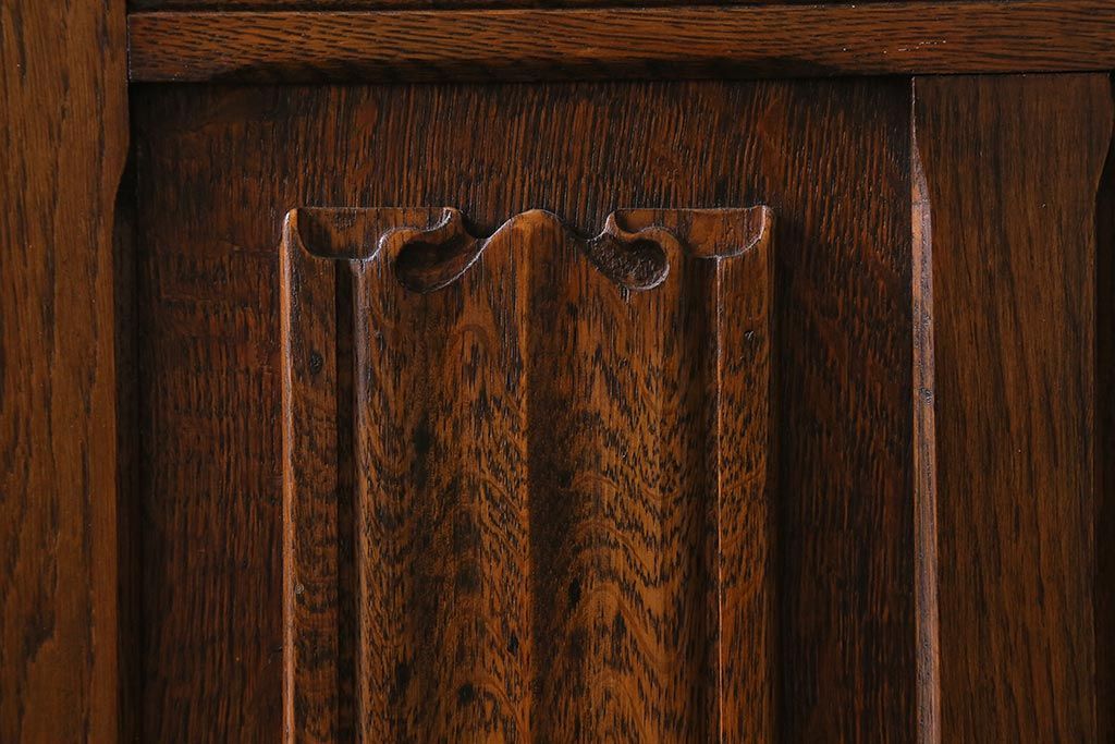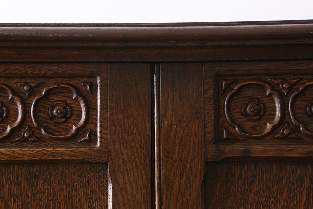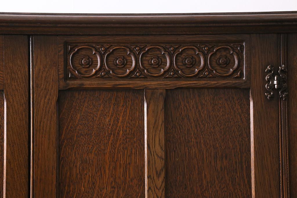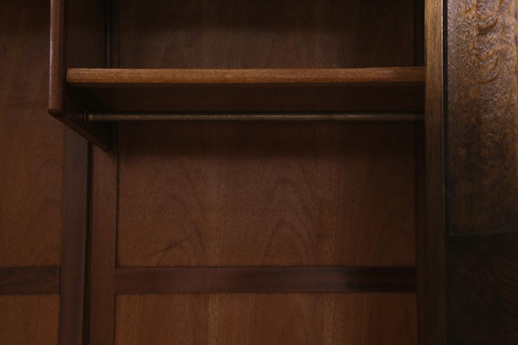 ヴィンテージ家具 ヨーロッパビンテージ CROWN AY FURNITURE オーク材 優雅な彫りの意匠が目を引くワードローブ(洋服箪笥)(R-043270)