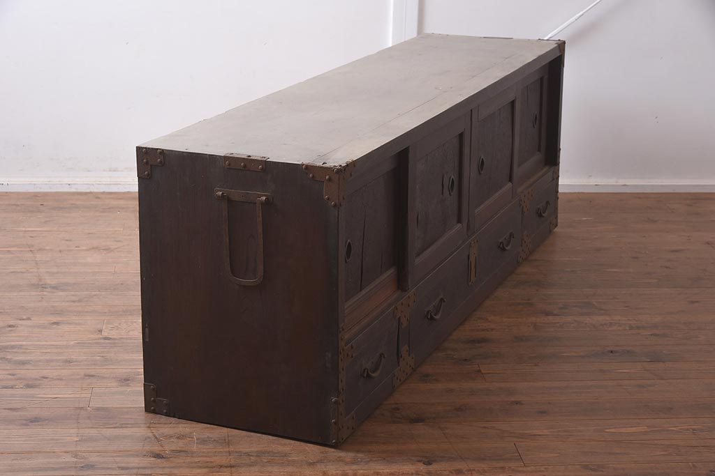 アンティーク家具 明治期 三方ケヤキ材 激レア!貫禄漂う上手物の帳場大箪笥(収納箪笥、引き出し)(R-043316)です。