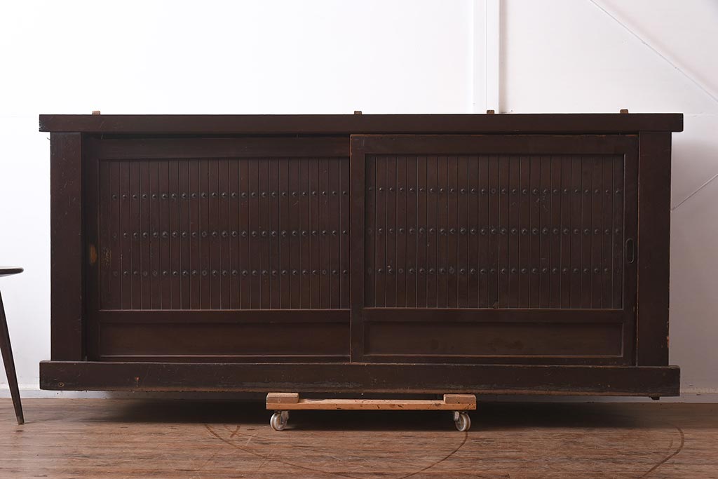 和箪笥> 水屋箪笥 > アンティーク家具 明治大正期 和の趣漂う縦桟が魅力の収納箪笥(テレビ台、ローボード、水屋箪笥、収納棚、キャビネット)(R-043434)