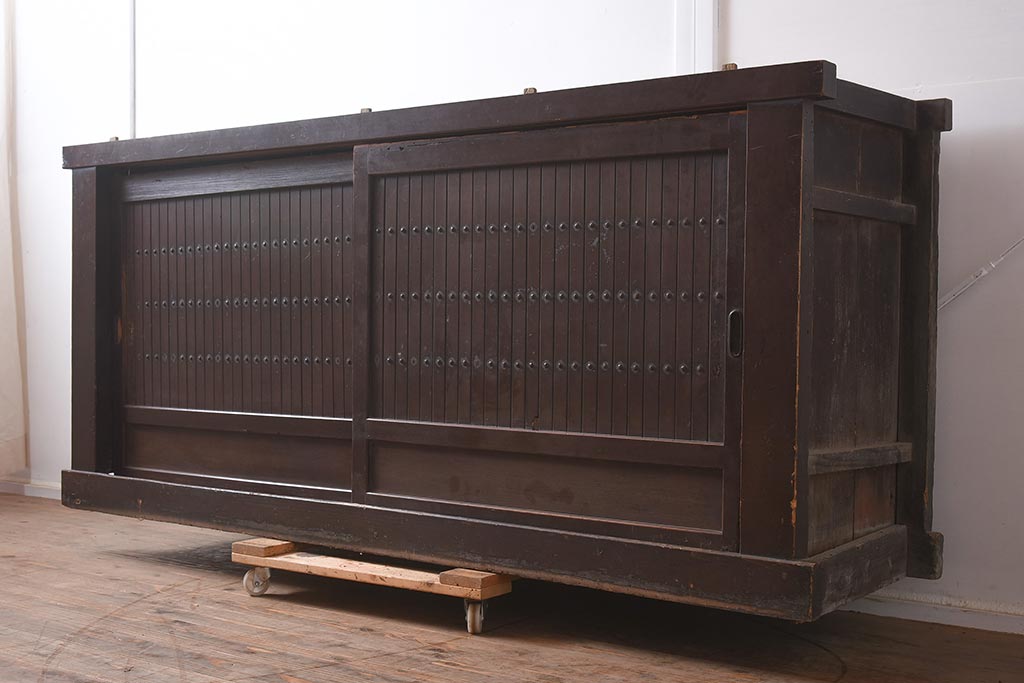 キャビネット・戸棚> テレビ台・ローボード > アンティーク家具 明治大正期 和の趣漂う縦桟が魅力の収納箪笥(テレビ台、ローボード、水屋箪笥、収納棚、キャビネット)(R-043434)