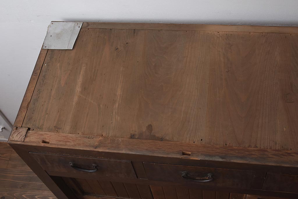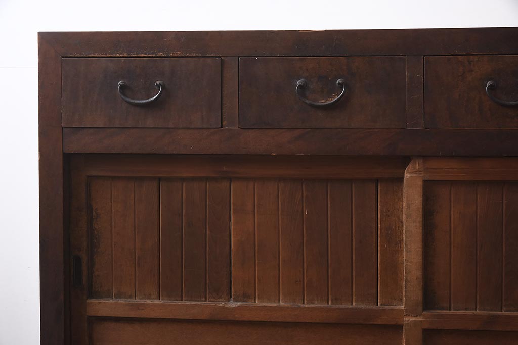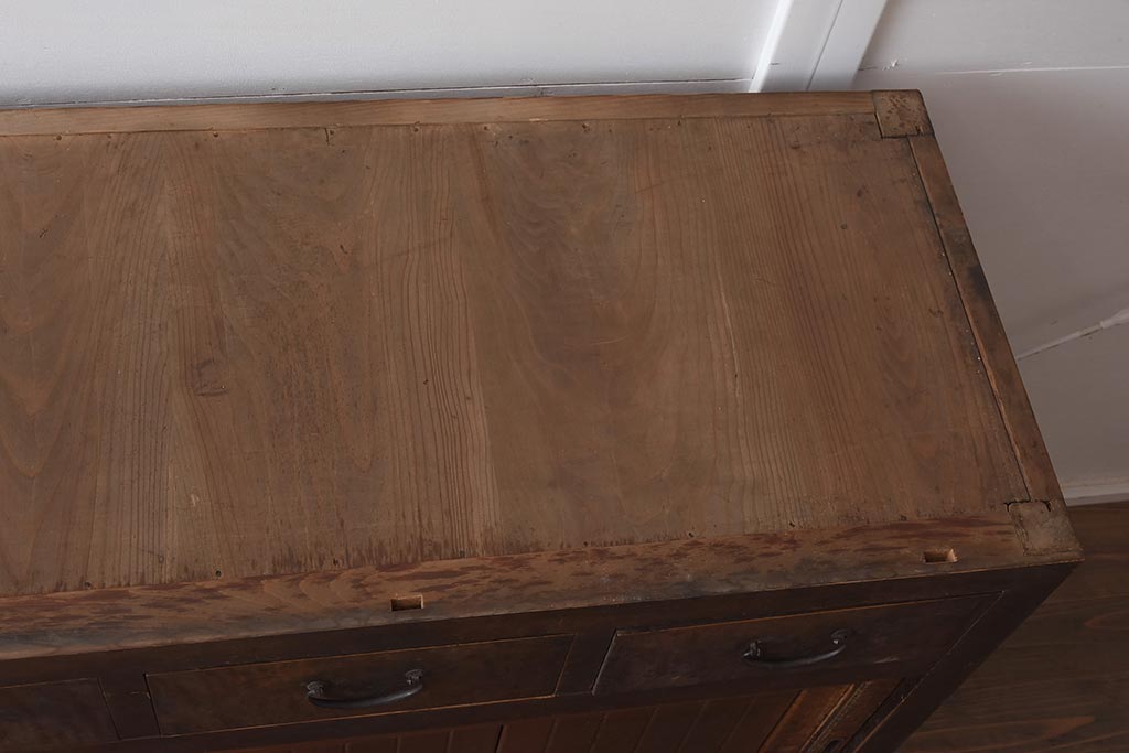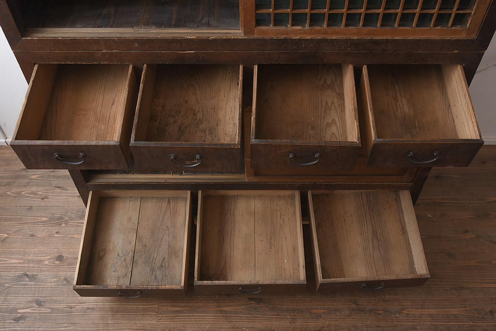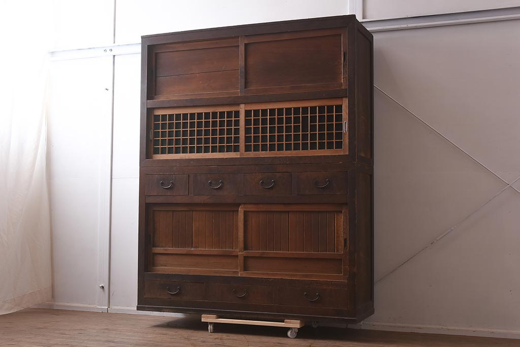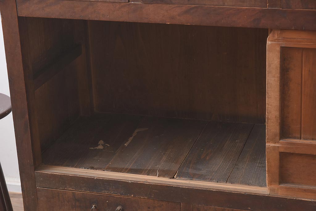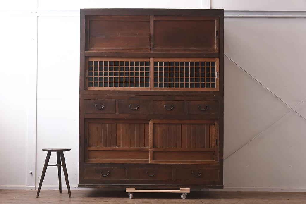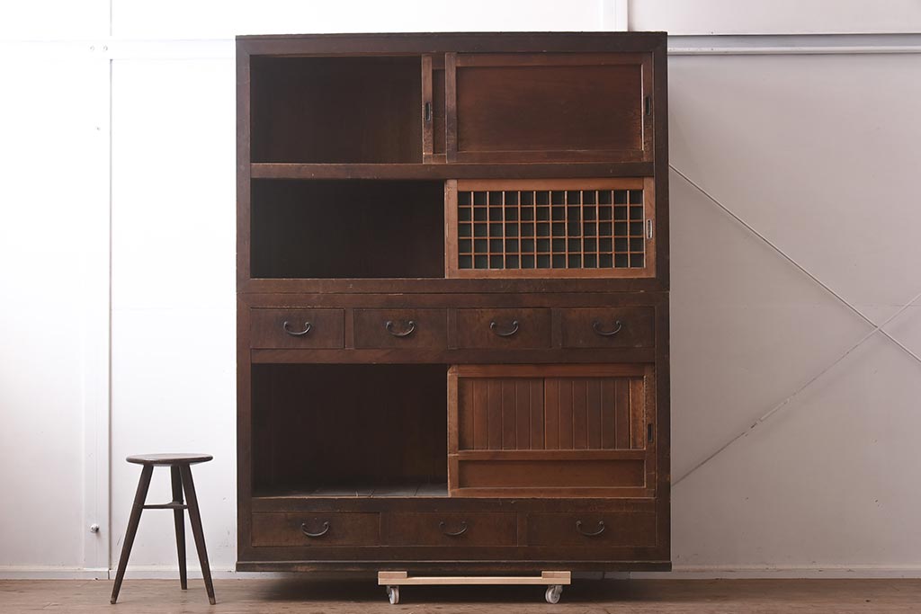 アンティーク家具 明治大正期 落ち着いた雰囲気が魅力の水屋箪笥(重ね戸棚、収納棚、収納箪笥)(R-043283)