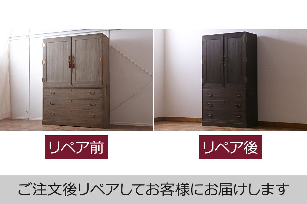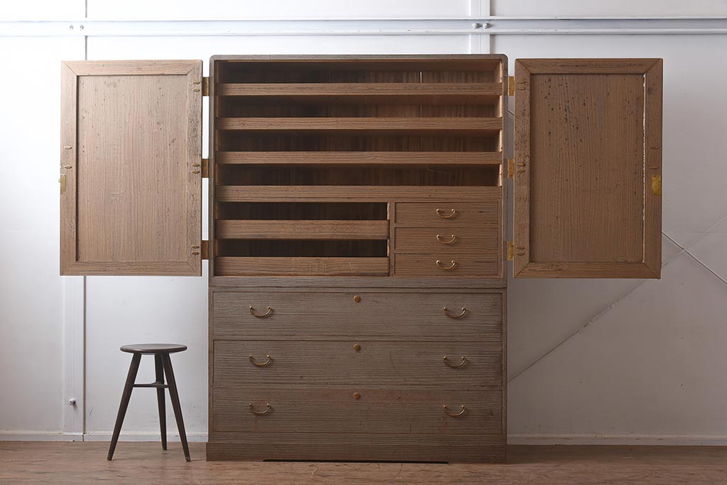 和箪笥 > アンティーク家具 昭和中期 衣装盆付き 品のある佇まいが魅力の桐箪笥(衣装箪笥、着物箪笥、和タンス、桐たんす)(R-043346)