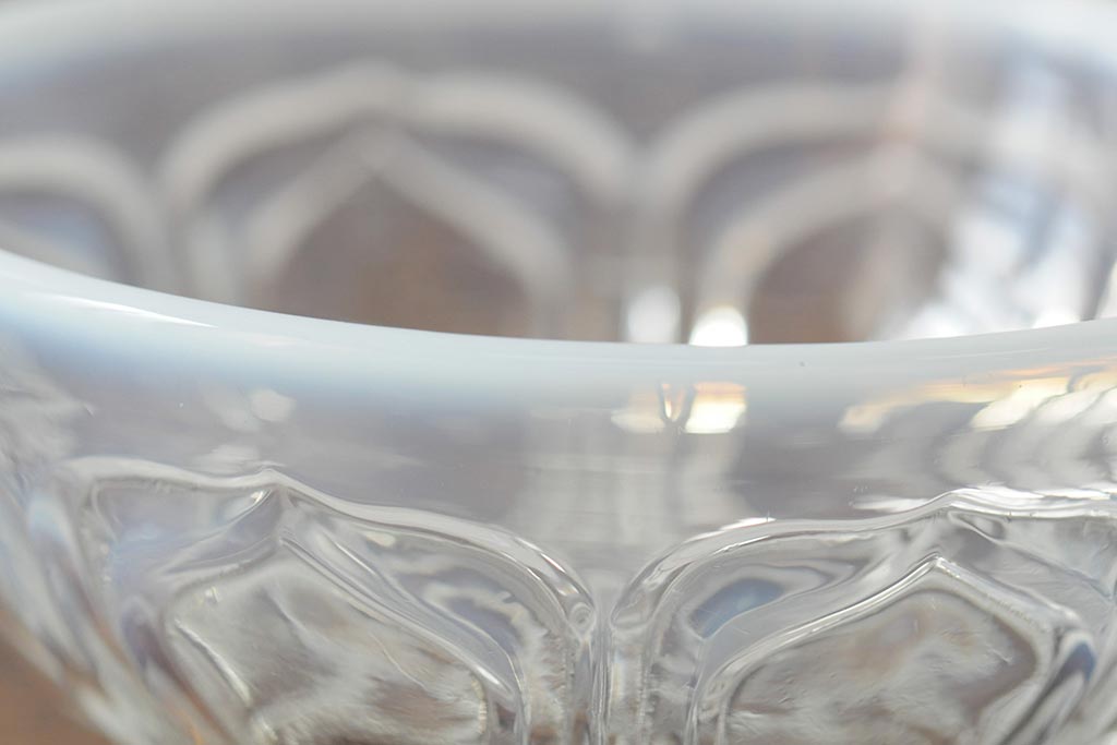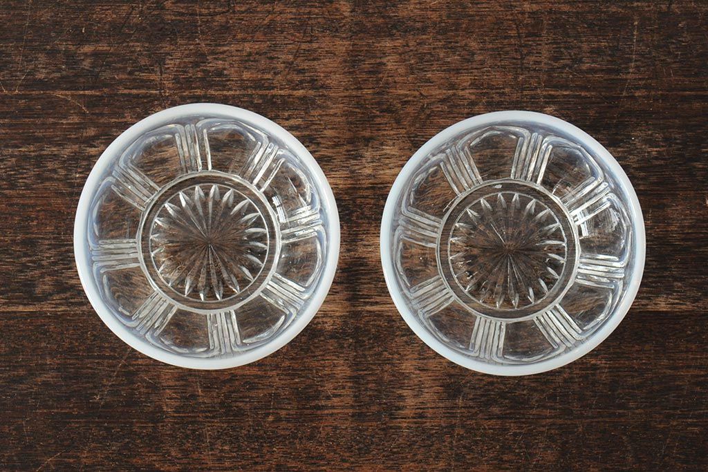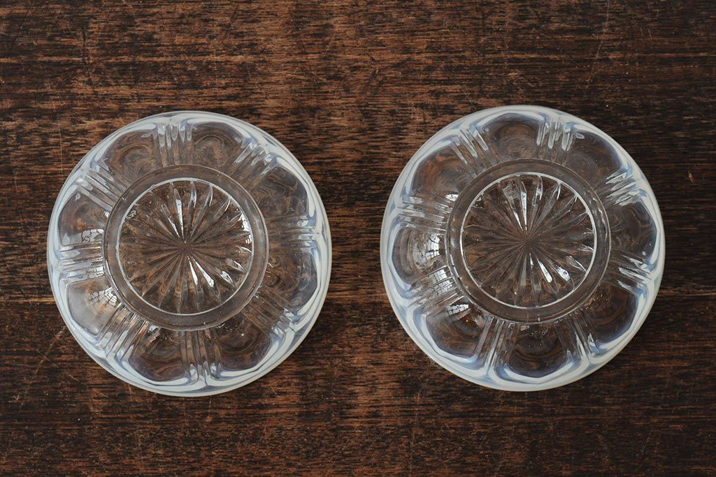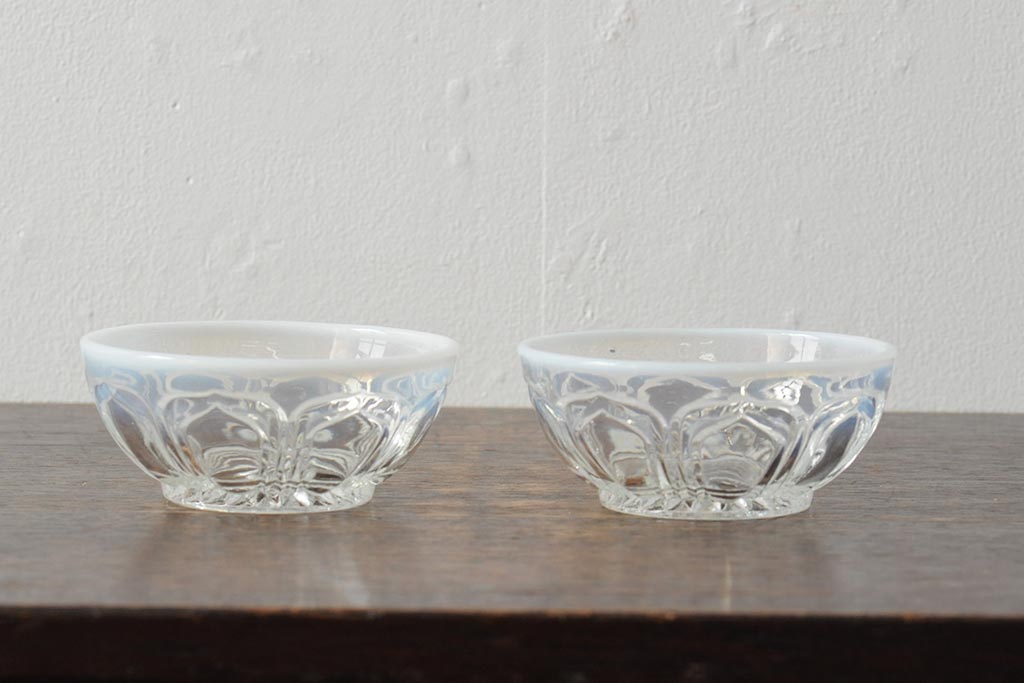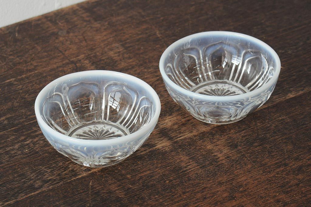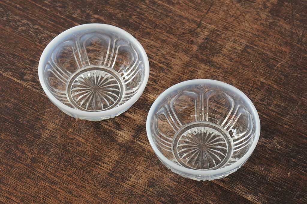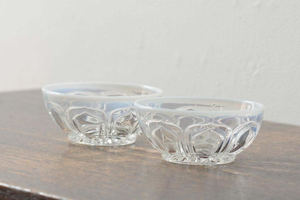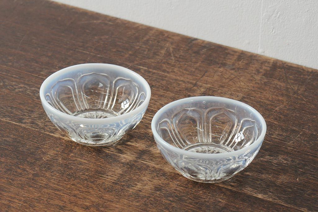 ラフジュ工房> 和食器・茶道具 > レトロ雑貨 昭和中期 乳白縁がかわいらしいプレスガラスの鉢2個(深皿、和食器)(R-043517)