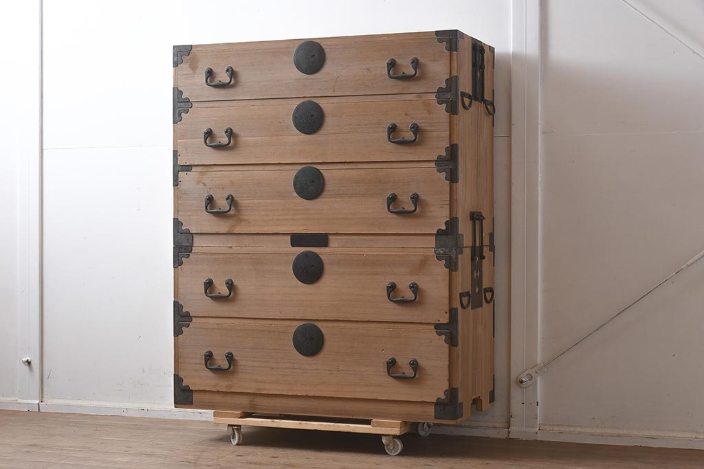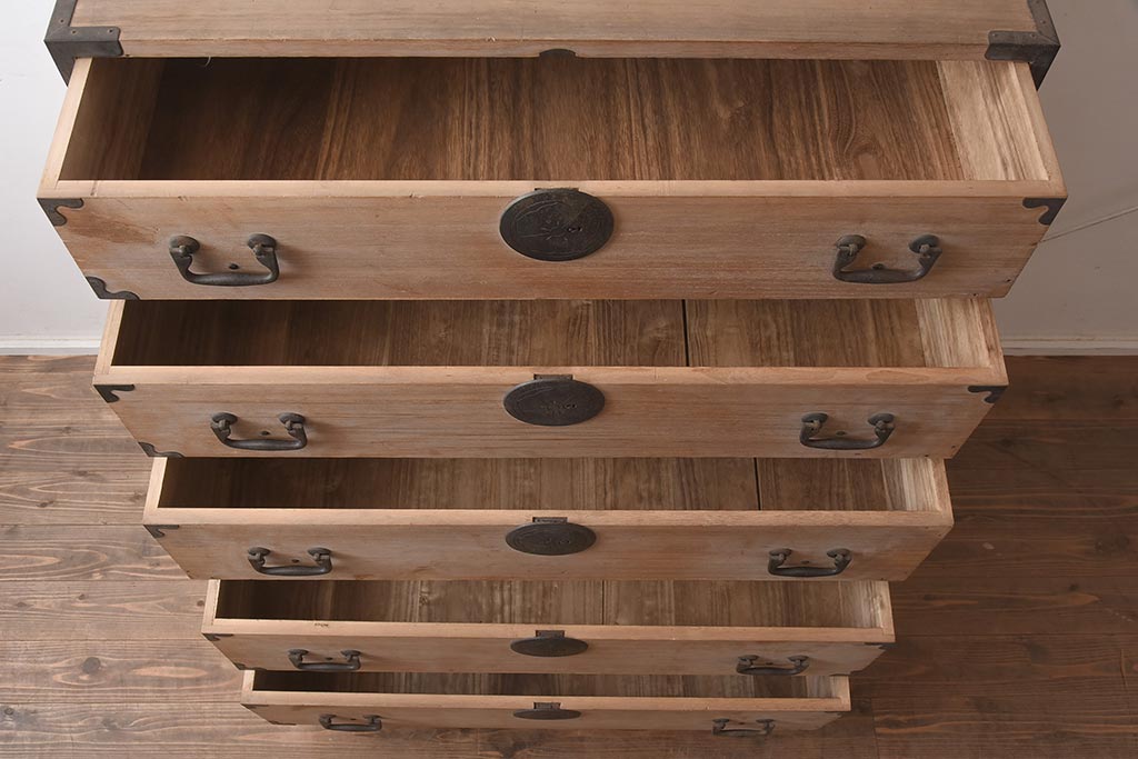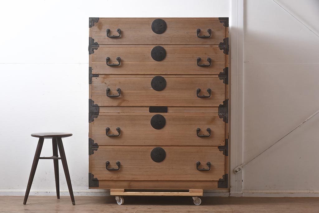 アンティーク家具 5杯 新潟産 総桐材 シンプルな重ねの衣装箪笥(引き出し、桐箪笥、桐たんす)(R-043486)