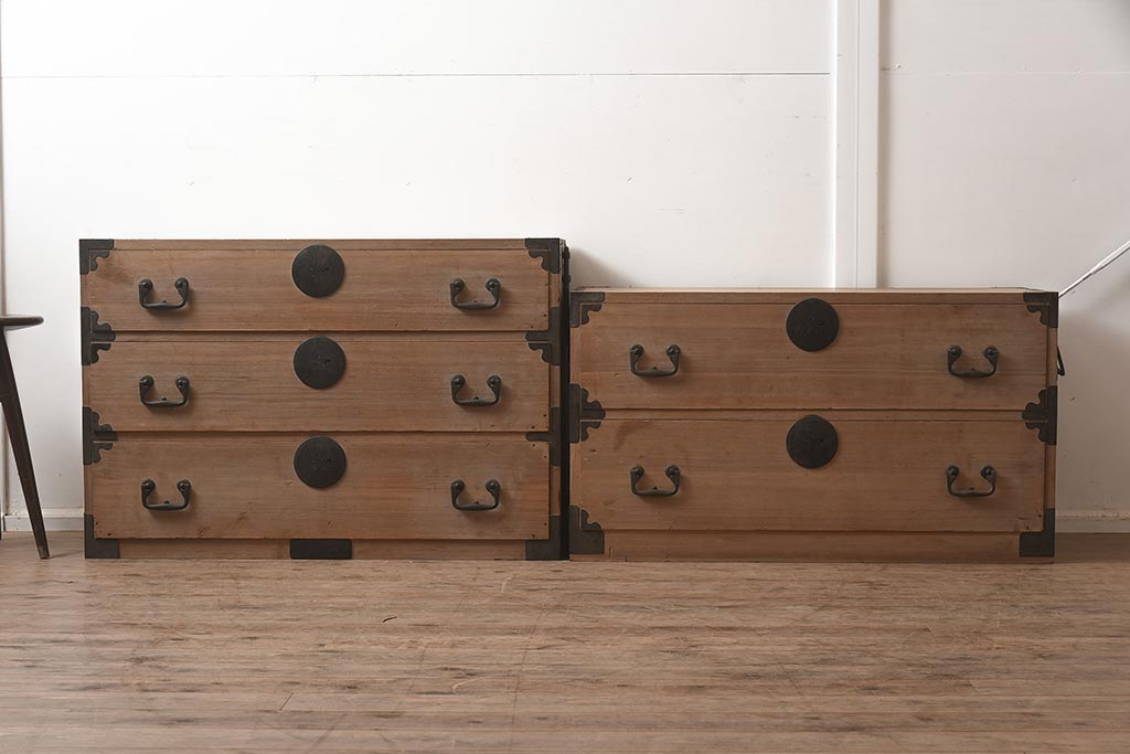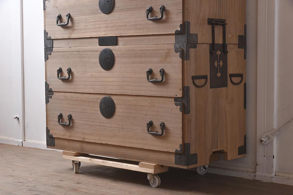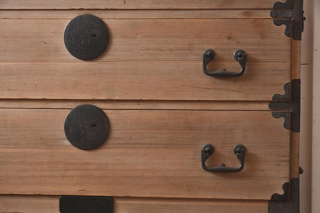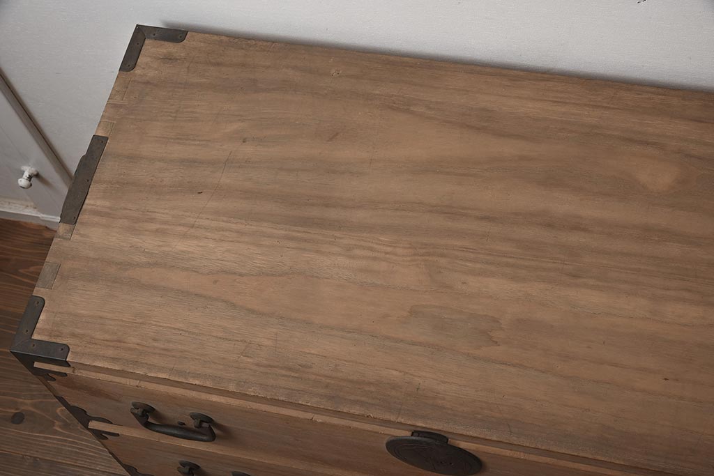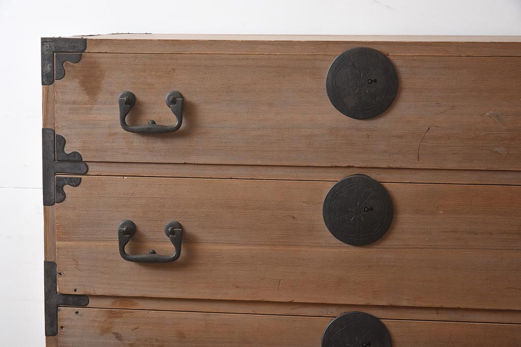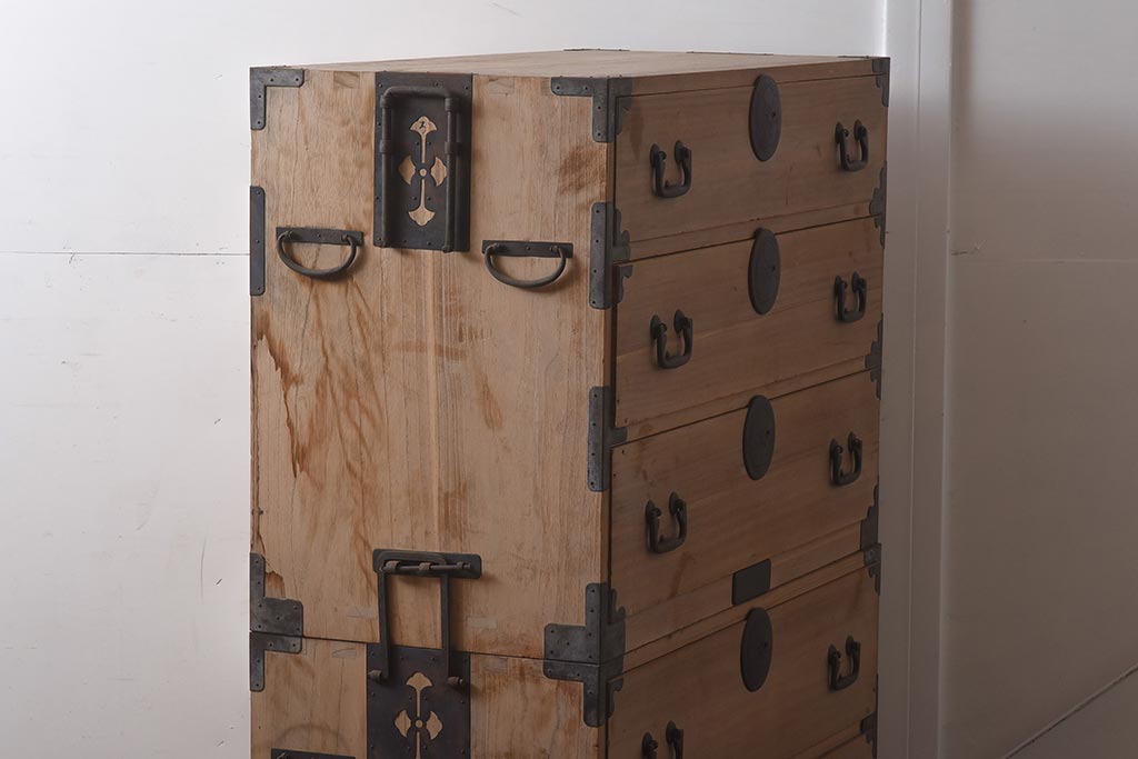 和箪笥 > アンティーク家具 5杯 新潟産 総桐材 シンプルな重ねの衣装箪笥(引き出し、桐箪笥、桐たんす)(R-043486)
