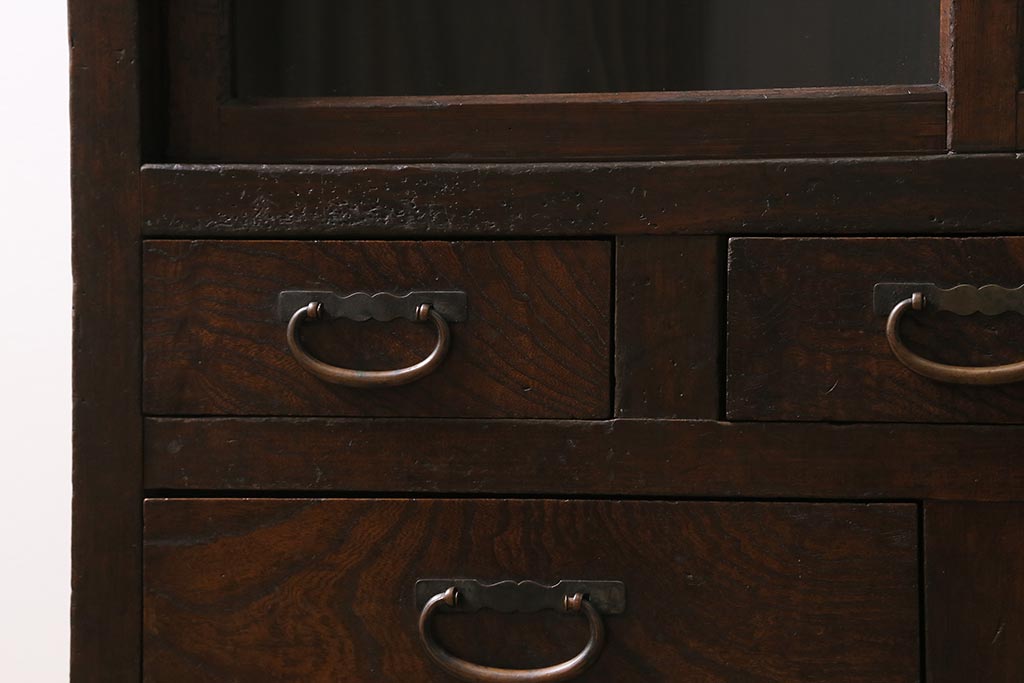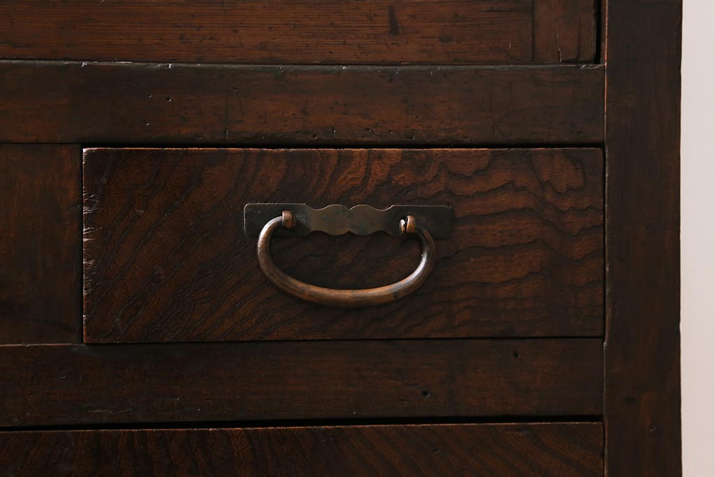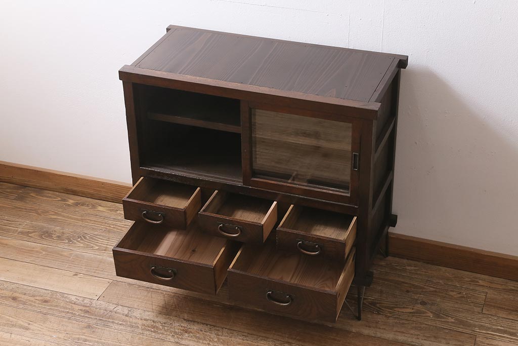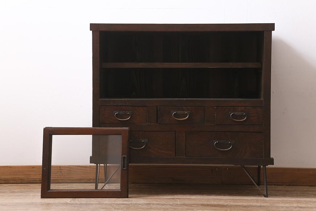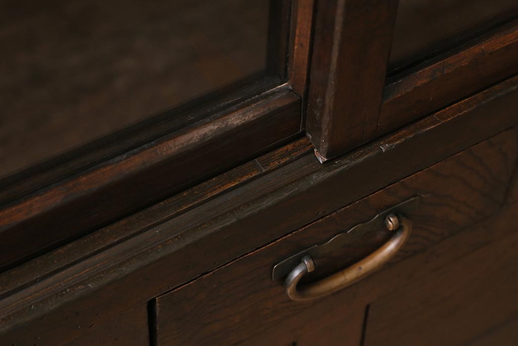 キャビネット・戸棚 > アンティーク家具 引き出し付き 木味が魅力の鉄脚リビングボード(ガラス戸棚、収納棚、キャビネット)(R-043508)
