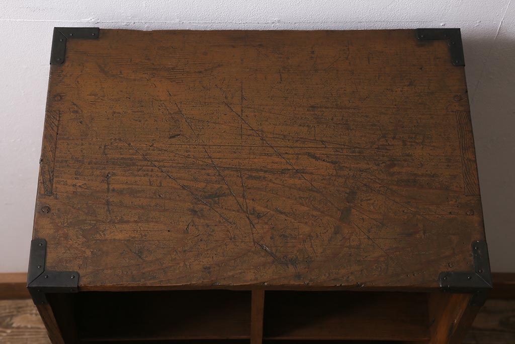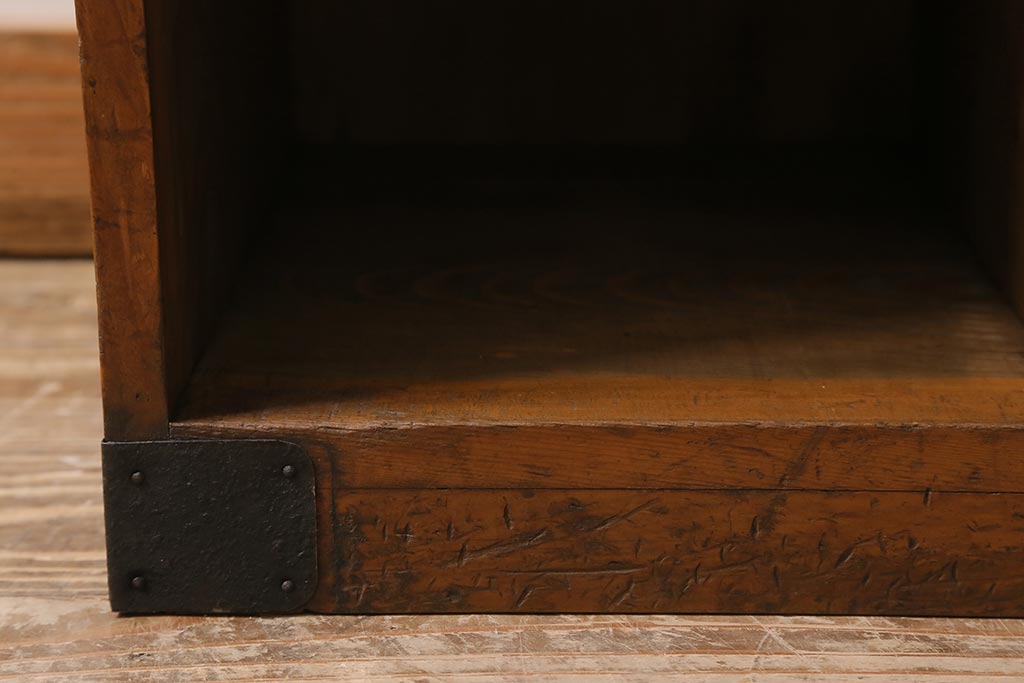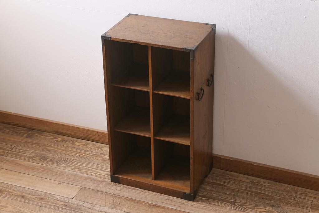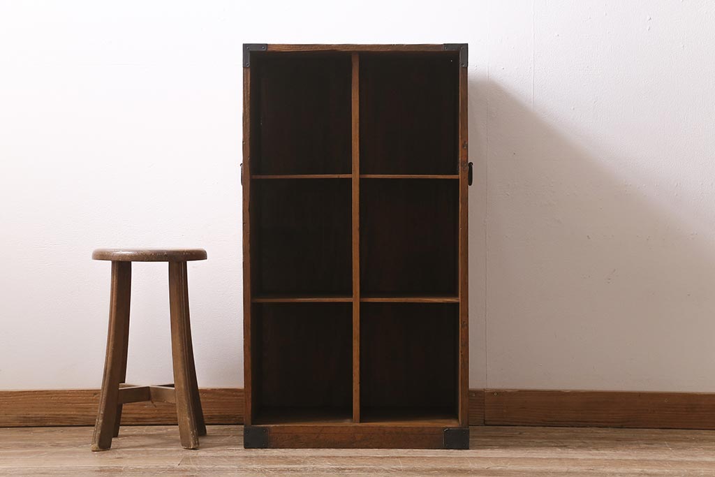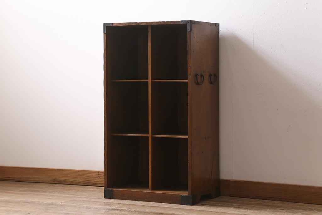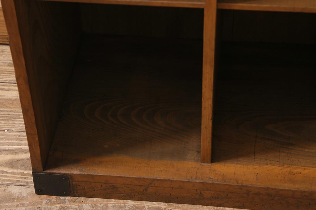アンティーク家具 ヒノキ材 木の風合いが味わい深いマス目棚(オープンラック、シェルフ)(R-043556)です。