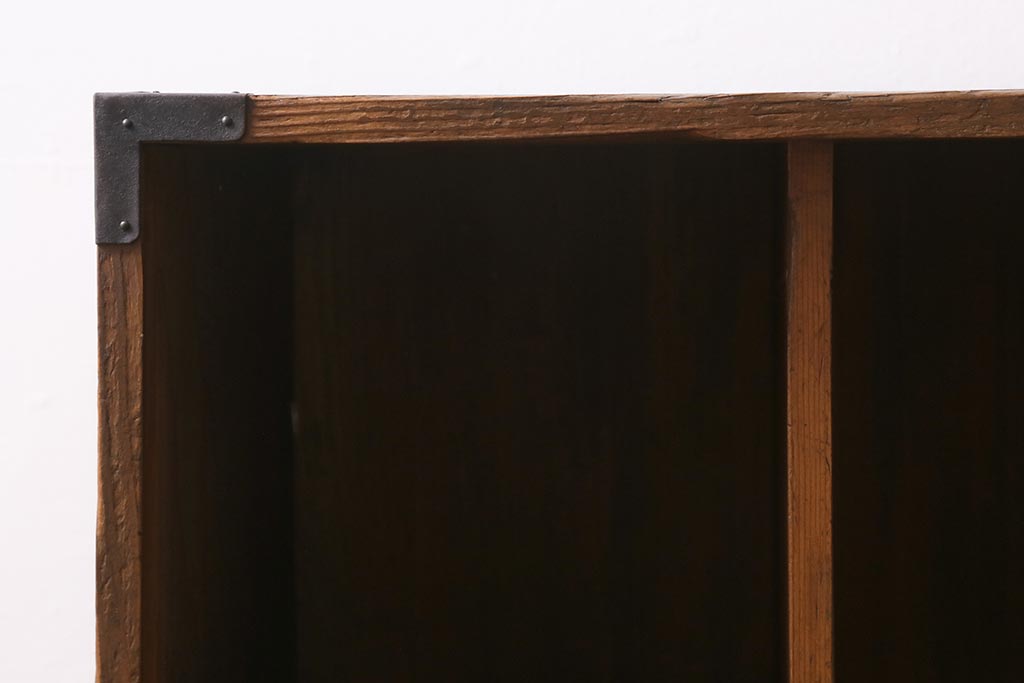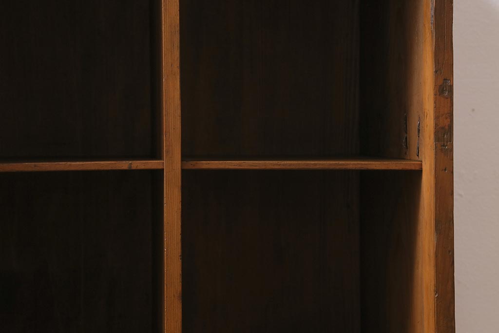 アンティーク家具 ヒノキ材 木の風合いが味わい深いマス目棚(オープンラック、シェルフ)(R-043556)