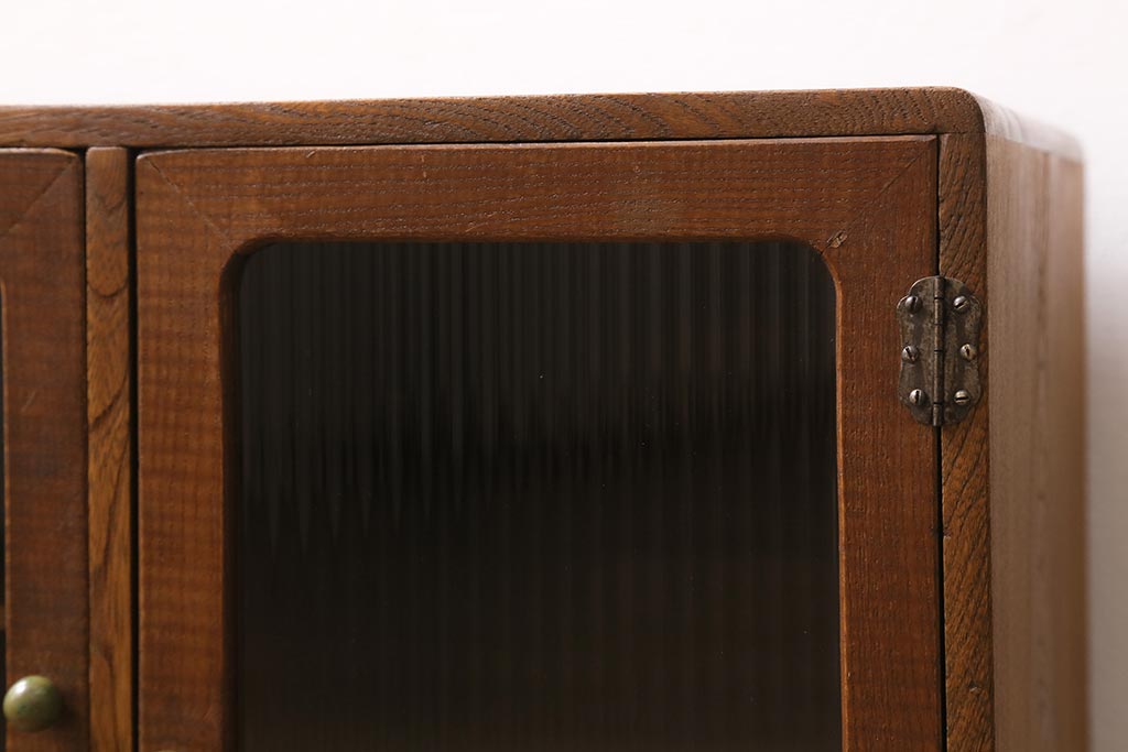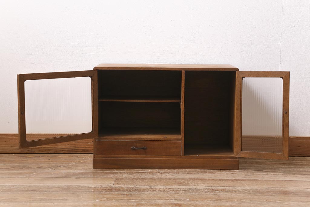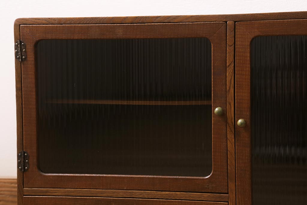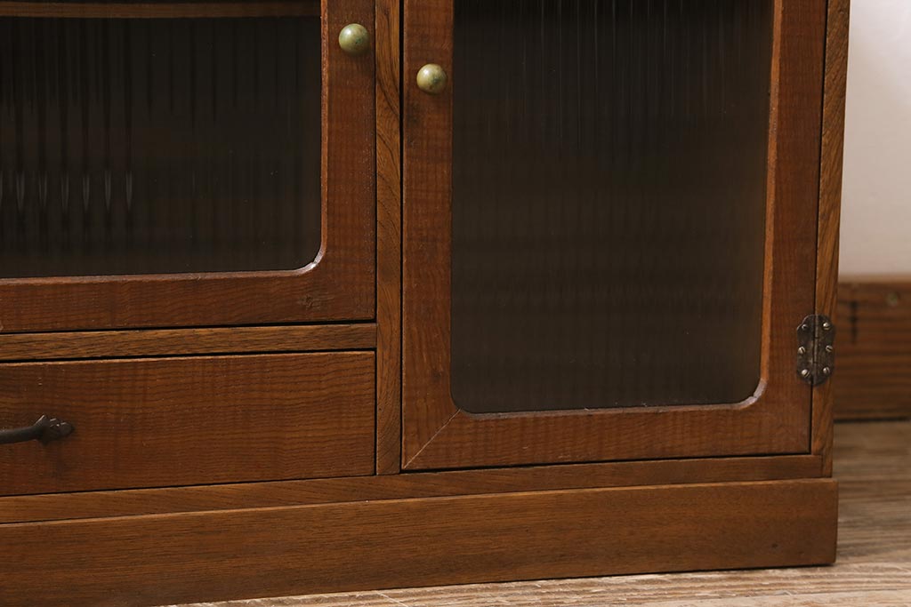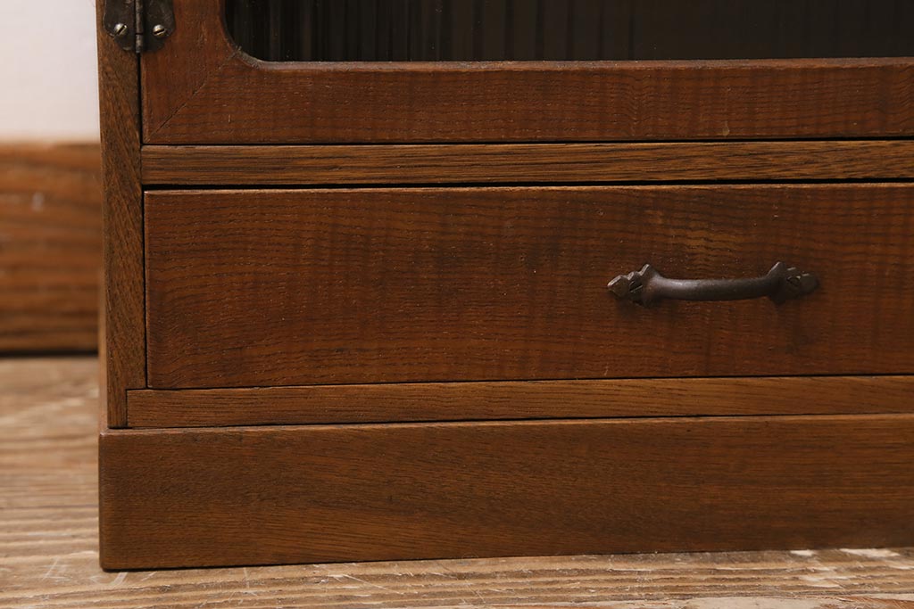 ビンテージ家具 栓材製 引き出し付き モールガラス 小さいレトロなガラス戸棚(収納棚)(R-043568)