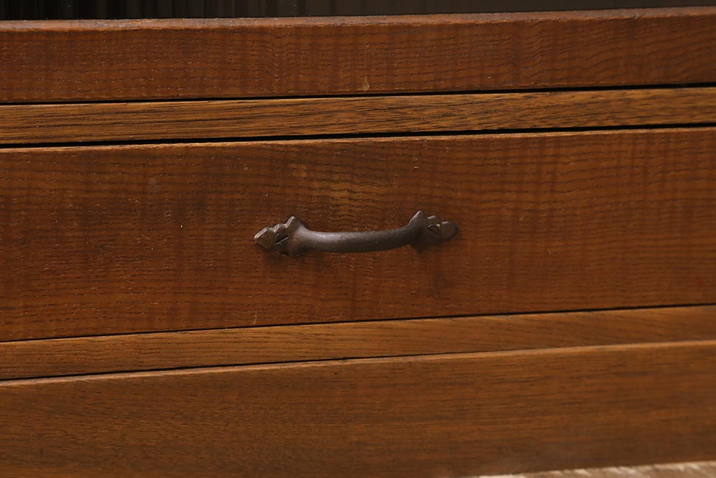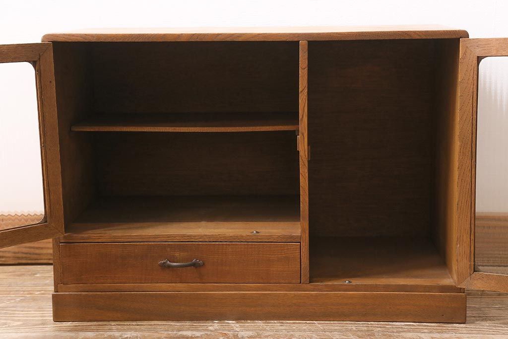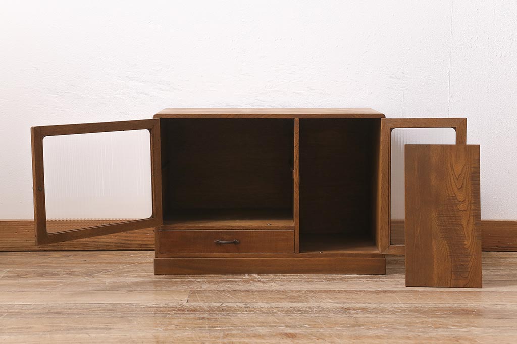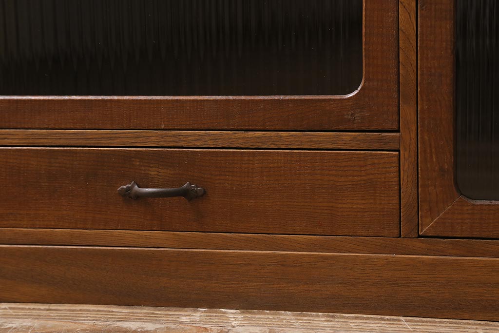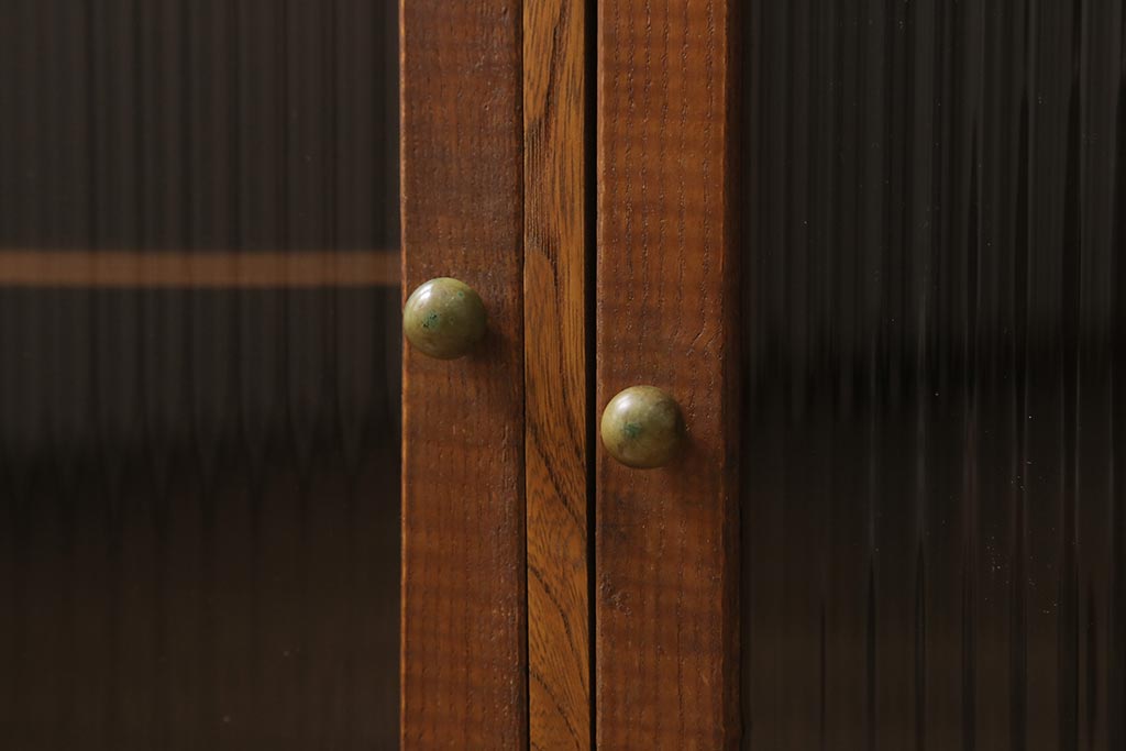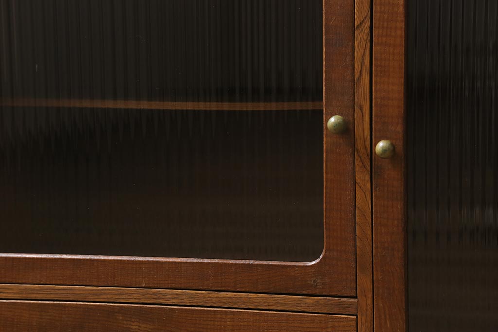 ビンテージ家具 栓材製 引き出し付き モールガラス 小さいレトロなガラス戸棚(収納棚)(R-043568)