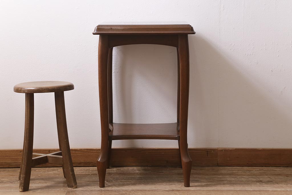 テーブル> サイドテーブル > ビンテージ家具 オールドマルニ maruni(マルニ木工) 棚付き アンティーク家具とも馴染む木製のサイドテーブル(花台)(R-043574)