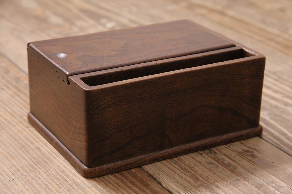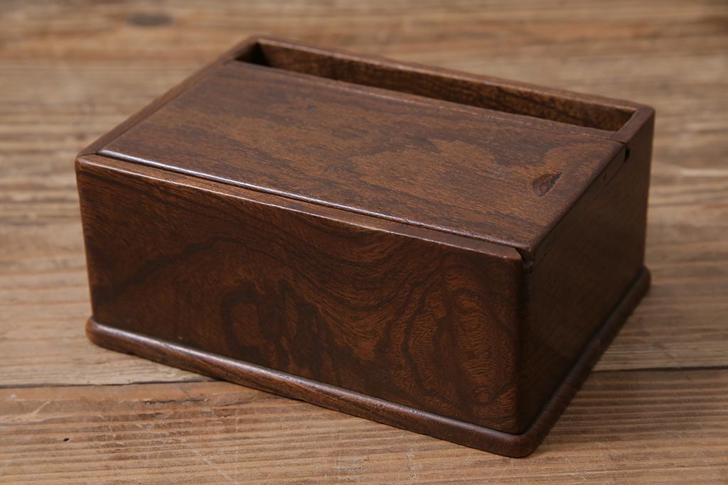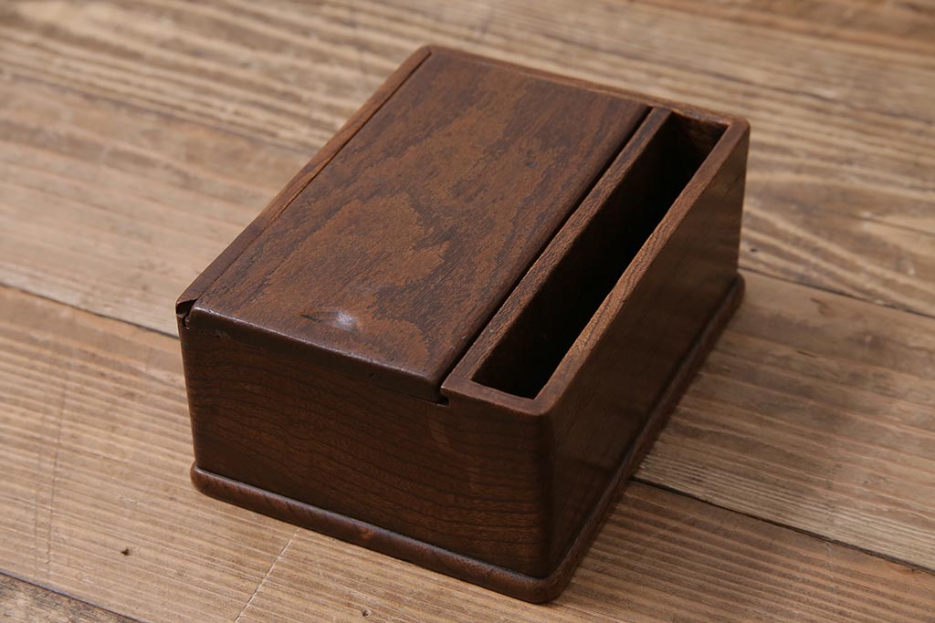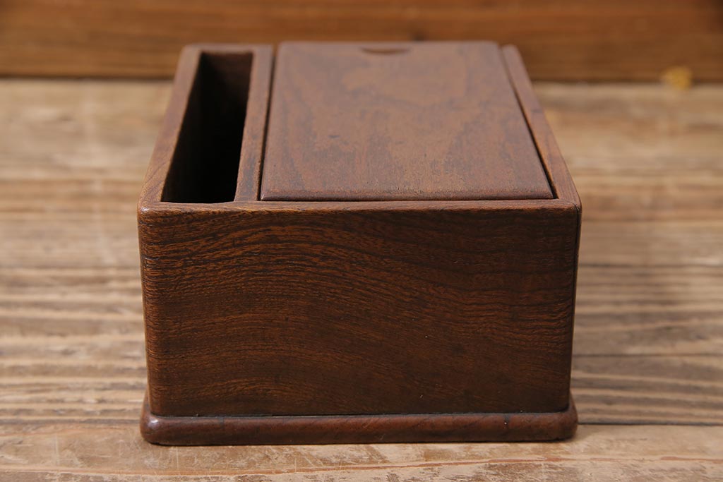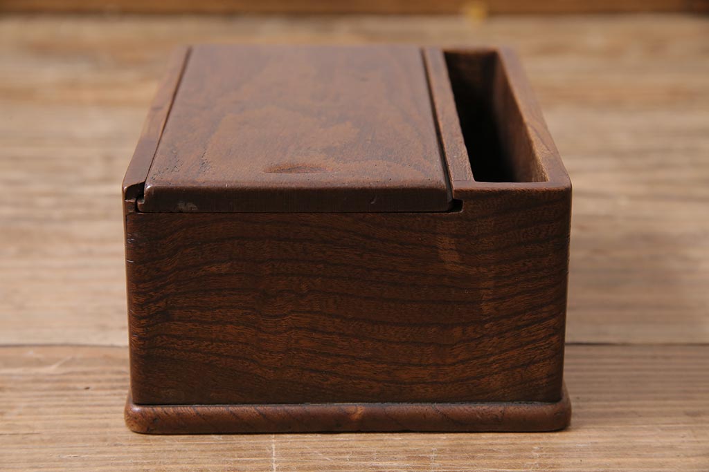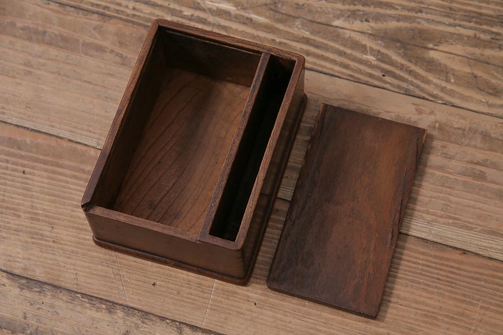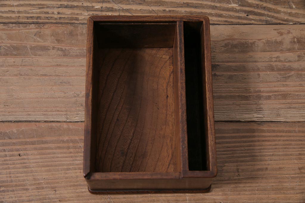小物収納・トランク > アンティーク雑貨 和製アンティーク 明治大正期 総ケヤキ材 蓋付き・仕切り付き 杢目が味わい深い小箱(木箱、小物収納、小物入れ、ペン立て)(R-043714)