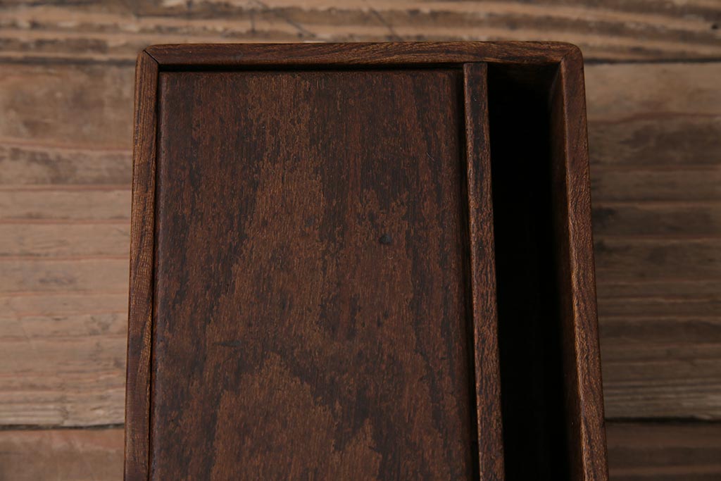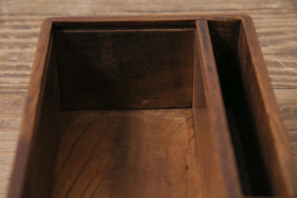 小物収納・トランク> 木箱 > アンティーク雑貨 和製アンティーク 明治大正期 総ケヤキ材 蓋付き・仕切り付き 杢目が味わい深い小箱(木箱、小物収納、小物入れ、ペン立て)(R-043714)