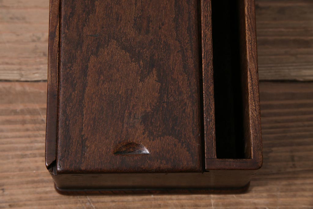 アンティーク雑貨 和製アンティーク 明治大正期 総ケヤキ材 蓋付き・仕切り付き 杢目が味わい深い小箱(木箱、小物収納、小物入れ、ペン立て)(R-043714)