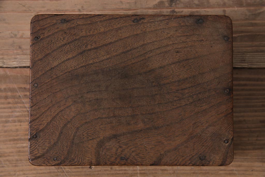 雑貨 > アンティーク雑貨 和製アンティーク 明治大正期 総ケヤキ材 蓋付き・仕切り付き 杢目が味わい深い小箱(木箱、小物収納、小物入れ、ペン立て)(R-043714)