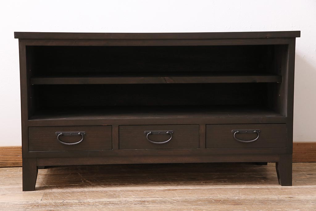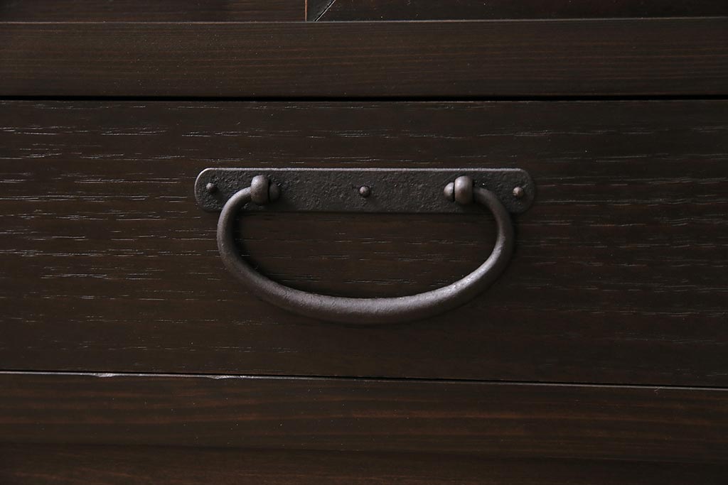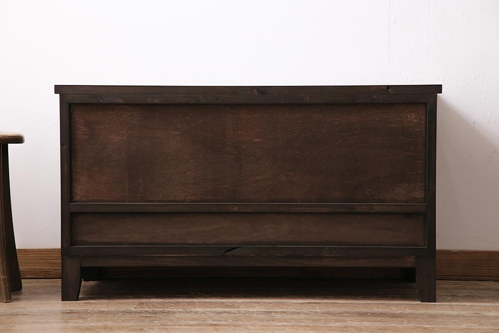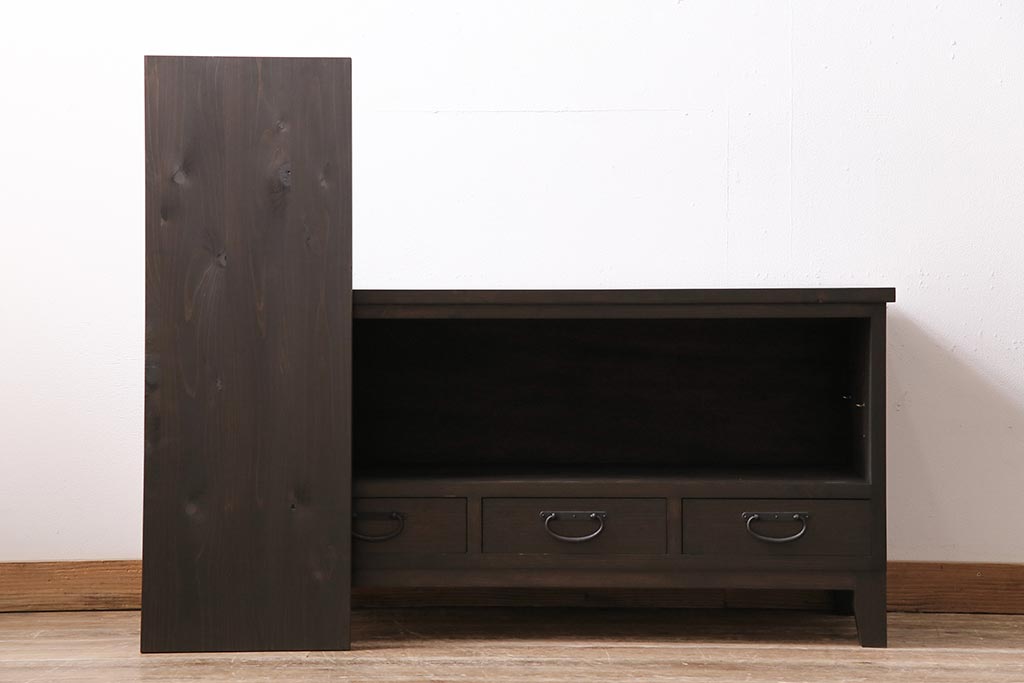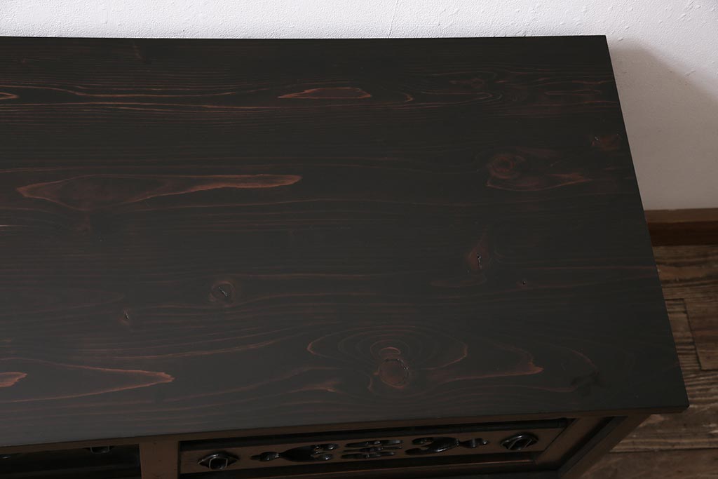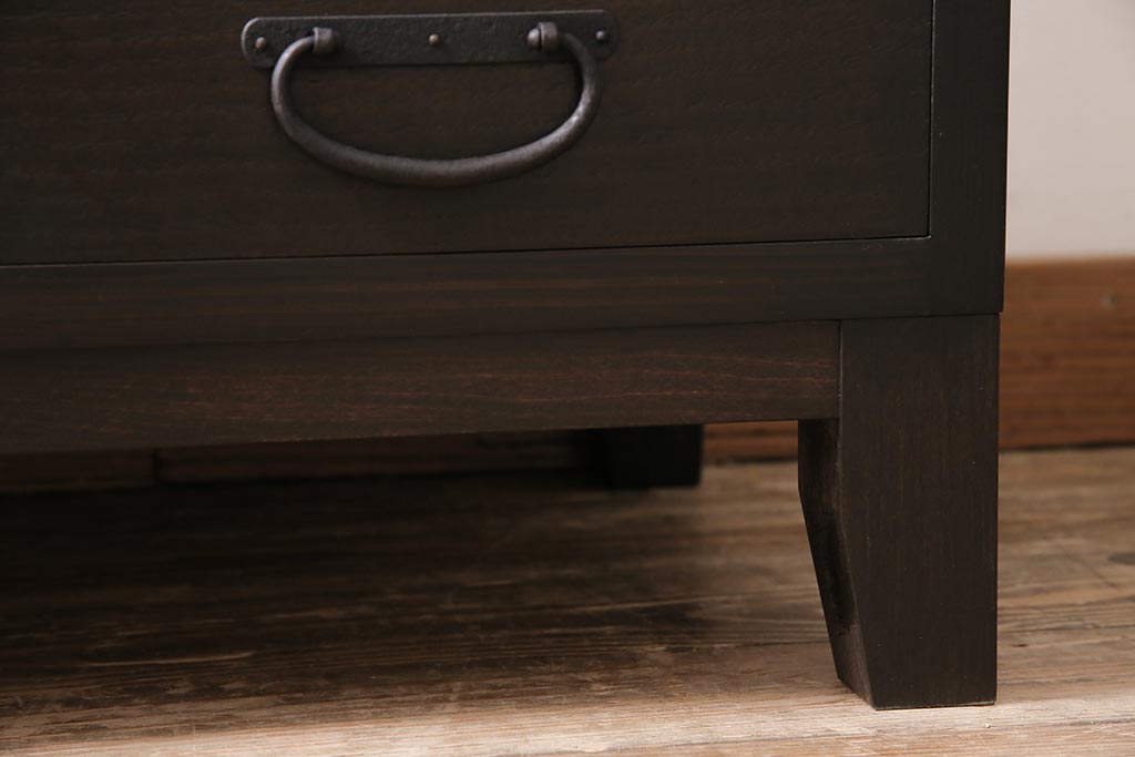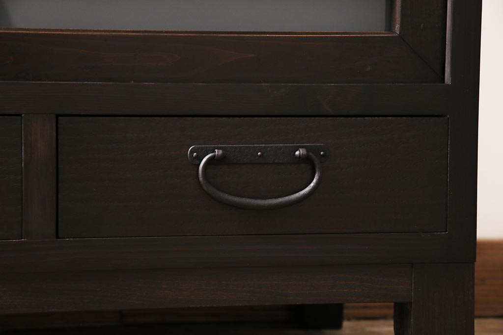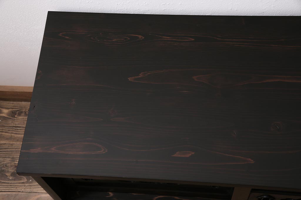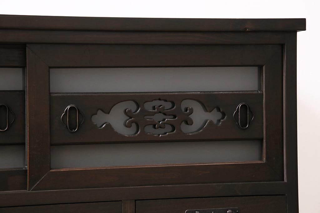 ラフジュ工房オリジナル 古建具リメイク 前板栗材 引き出し付き 和モダンな脚付きローボード(水屋、収納棚、戸棚)(R-043702)です。