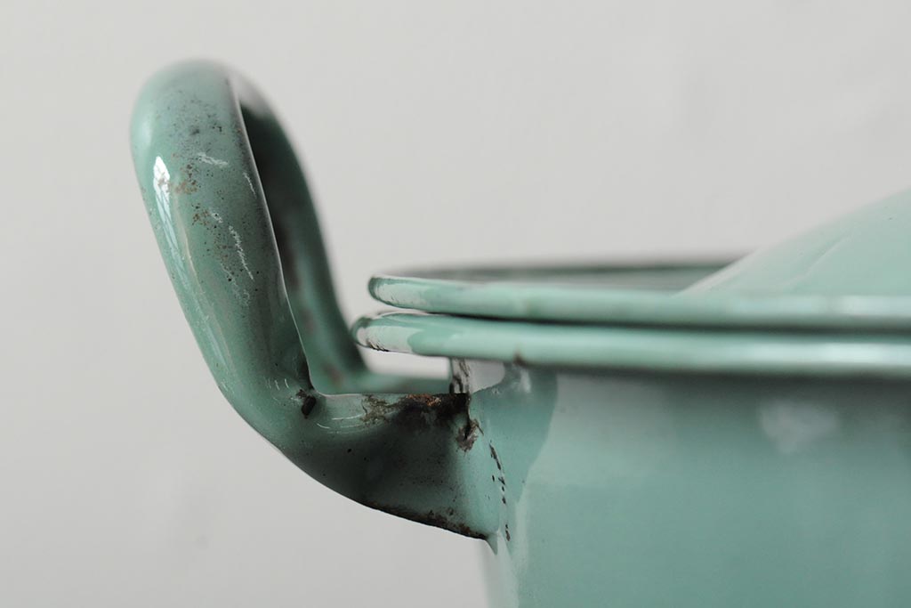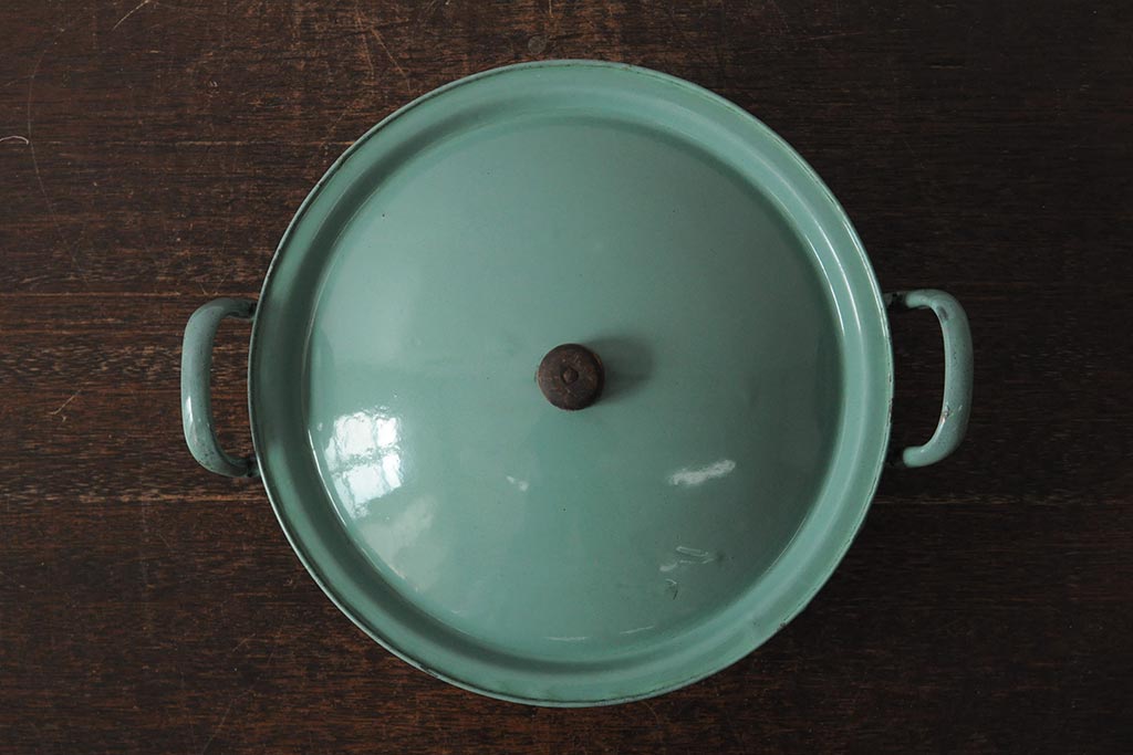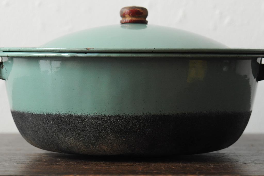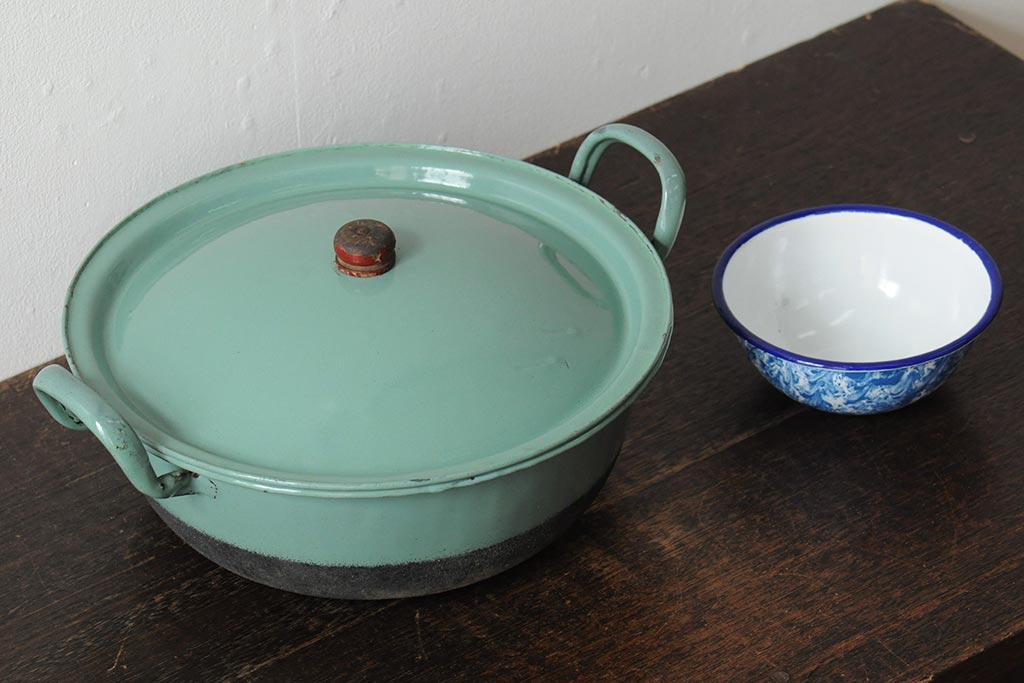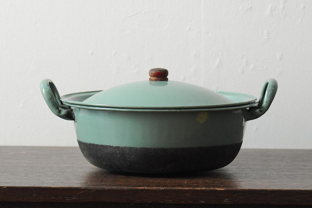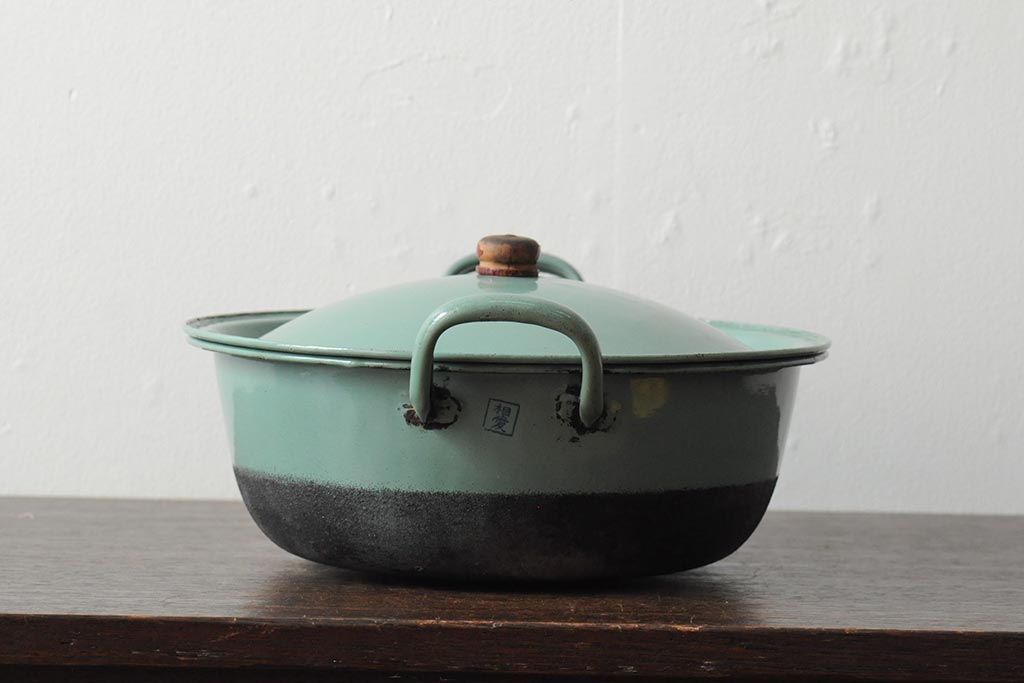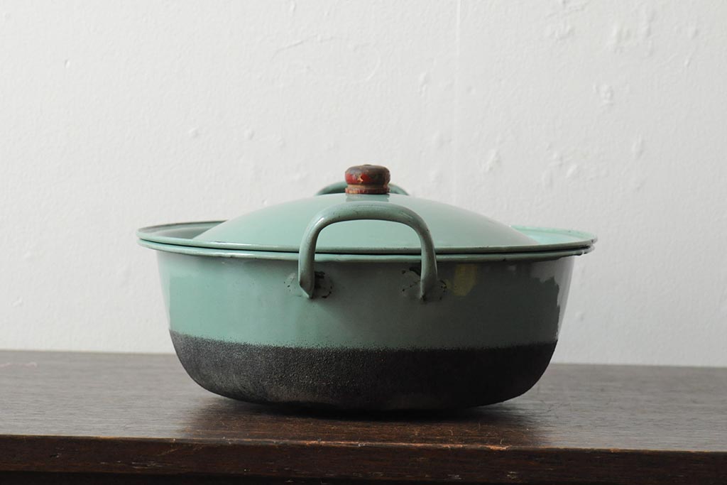 ラフジュ工房> 洋食器・キッチン用品 > アンティーク雑貨 昭和期 レトロなホーロー両手鍋・ボウル(琺瑯、蓋付きなべ、ディスプレイ)(R-043621)