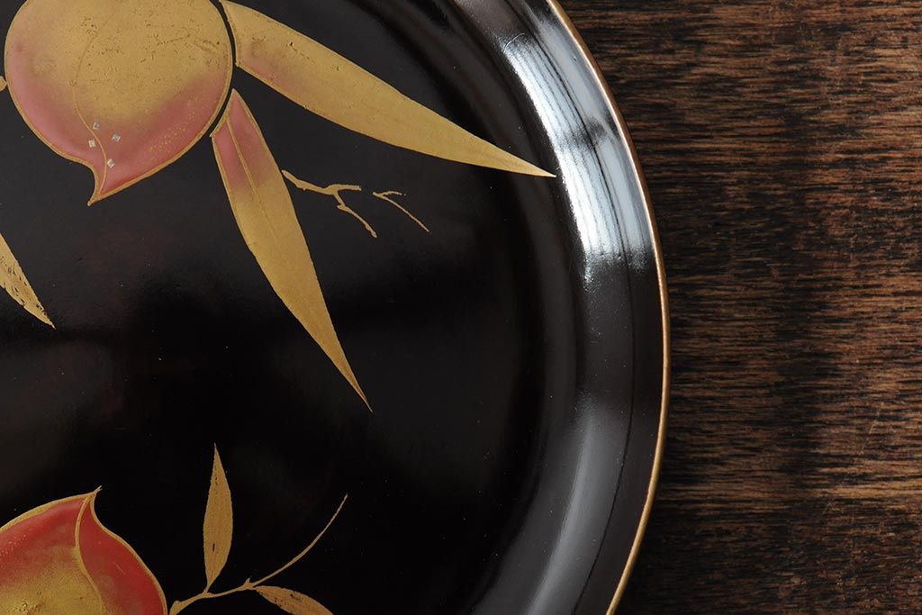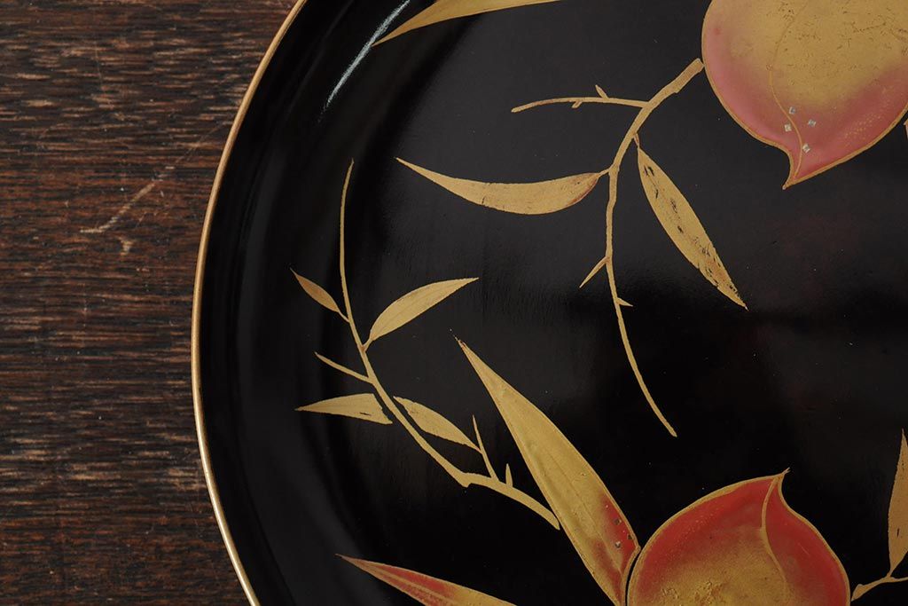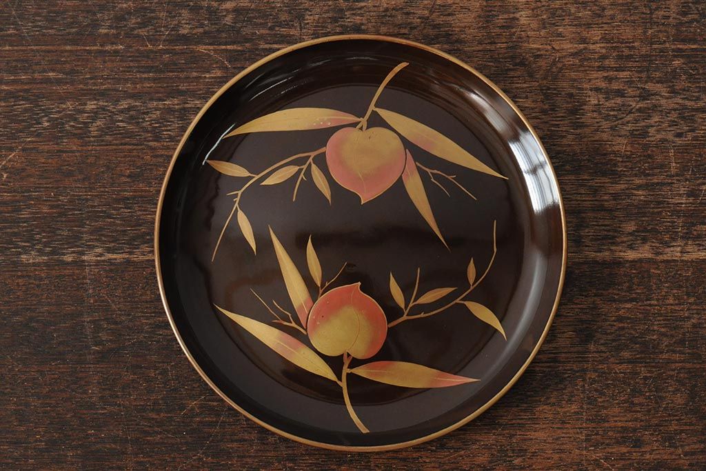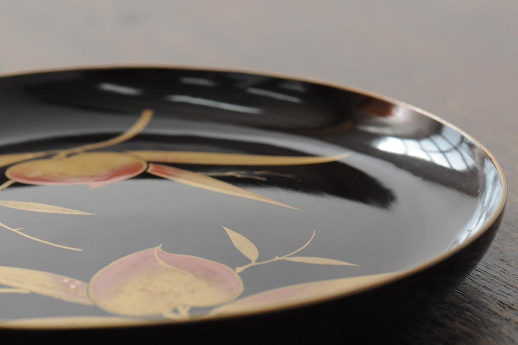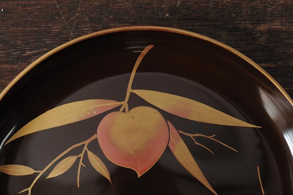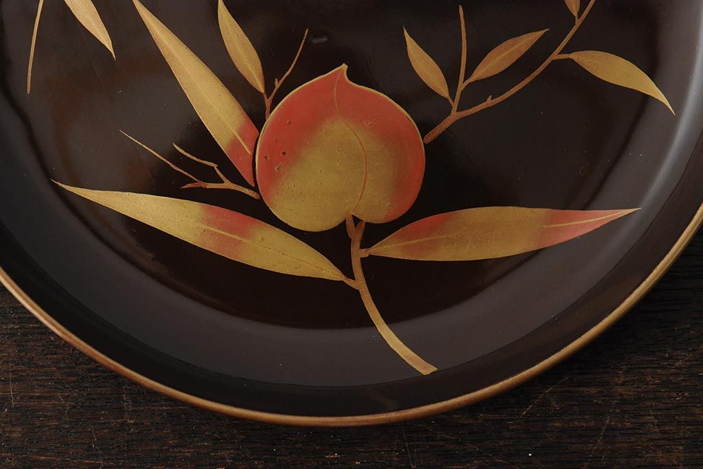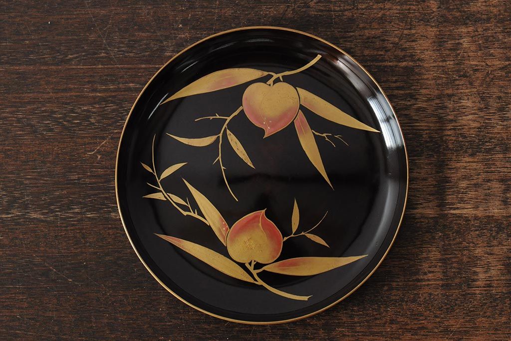 ラフジュ工房> 骨董・美術品> 骨董-漆器 > 大正昭和初期 桃図 蒔絵木皿5枚セット(漆器、木製皿、銘々皿)(R-043623)