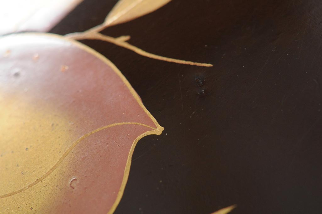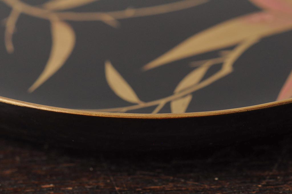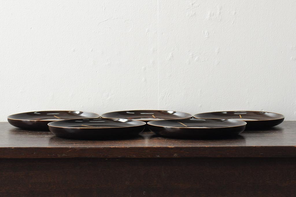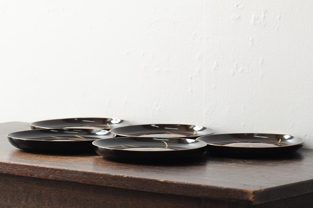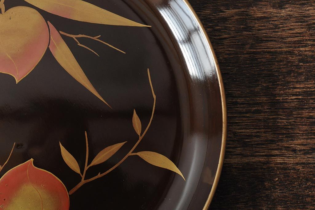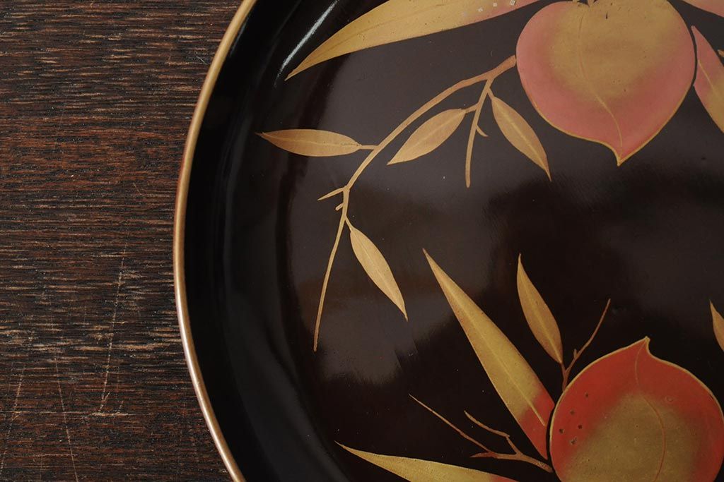 ラフジュ工房> 骨董・美術品> 骨董-漆器 > 大正昭和初期 桃図 蒔絵木皿5枚セット(漆器、木製皿、銘々皿)(R-043623)