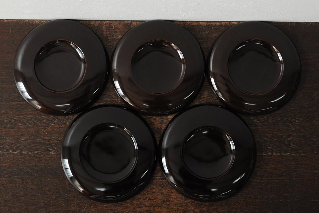 ラフジュ工房> 和食器・茶道具> 皿 > 大正昭和初期 桃図 蒔絵木皿5枚セット(漆器、木製皿、銘々皿)(R-043623)