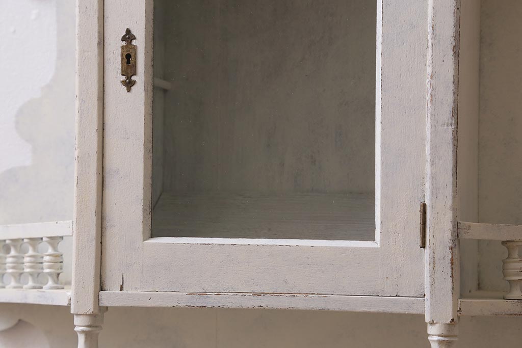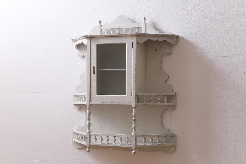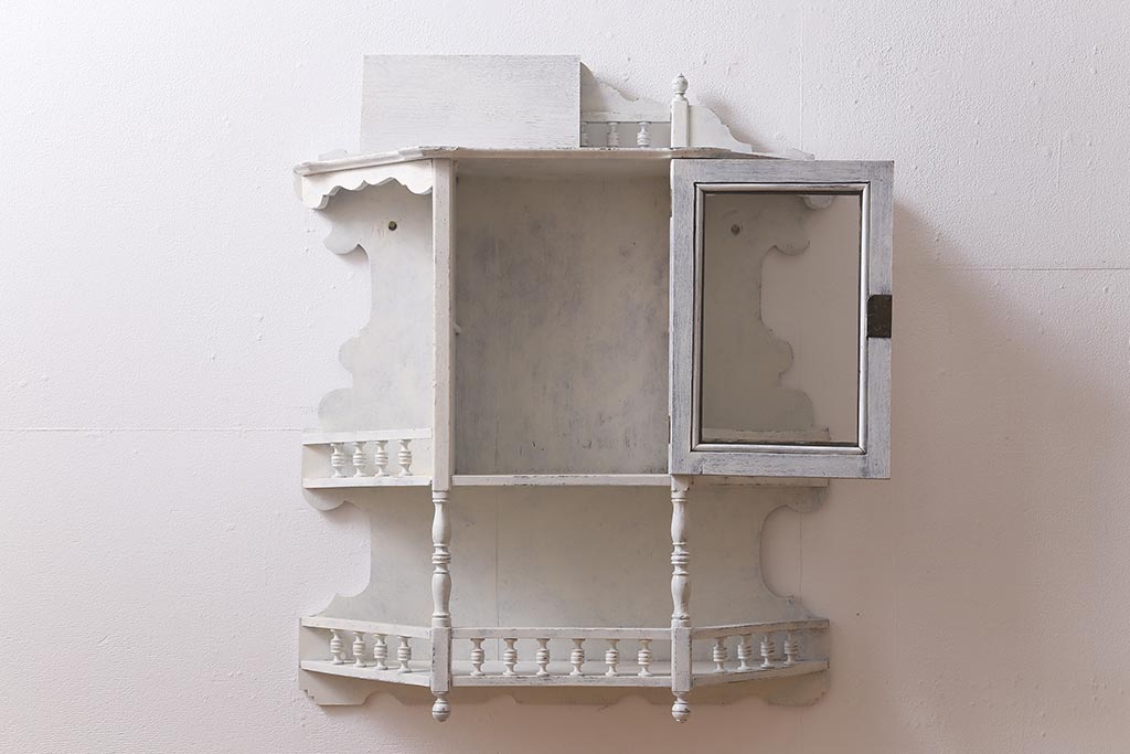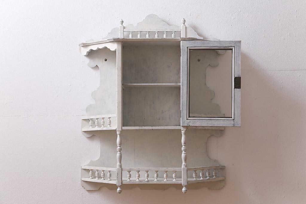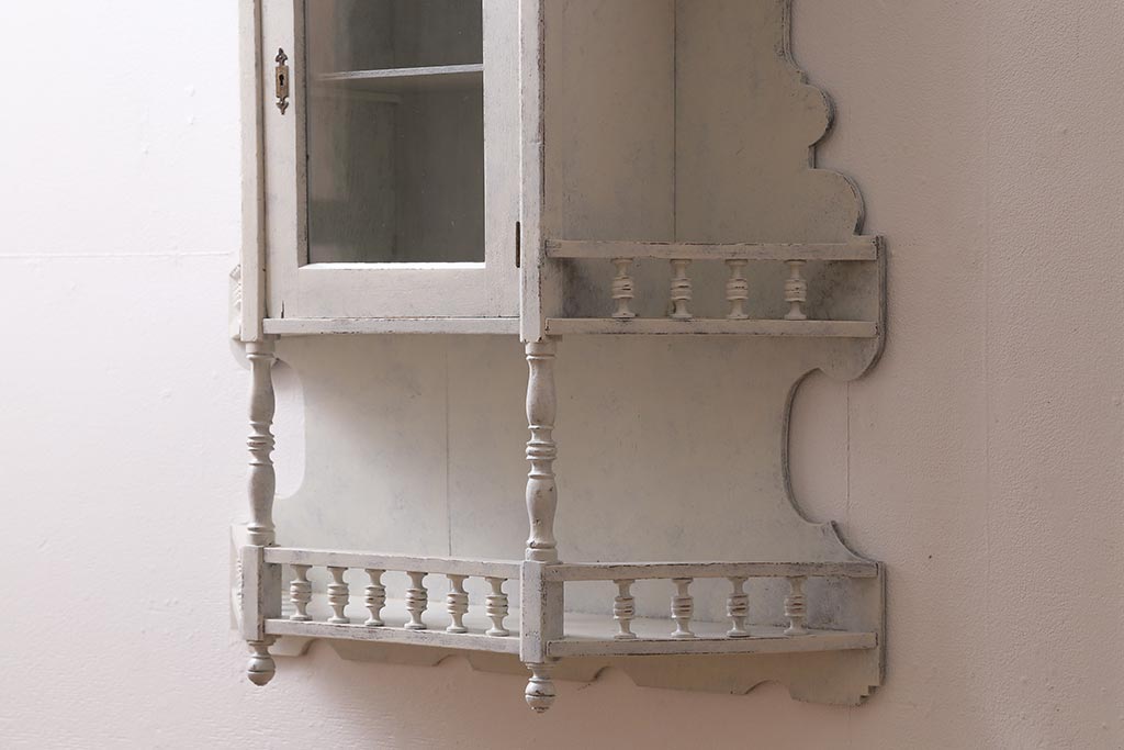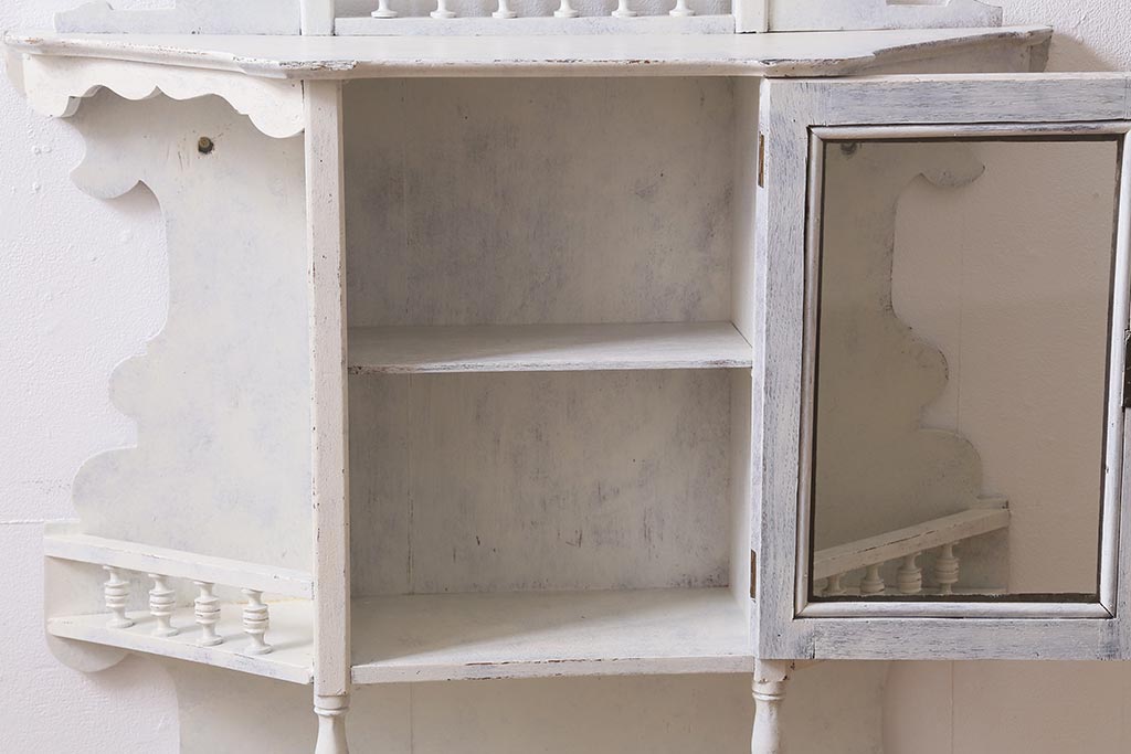 キャビネット・戸棚 > アンティーク家具 フランスアンティーク オーク材 シャビーなペイントがおしゃれなウォールキャビネット(壁掛け収納棚、ウォールシェルフ)(R-043691)