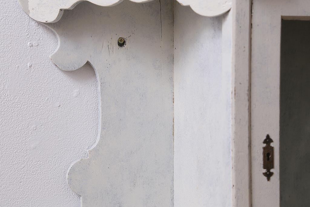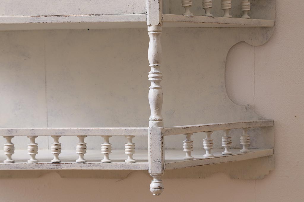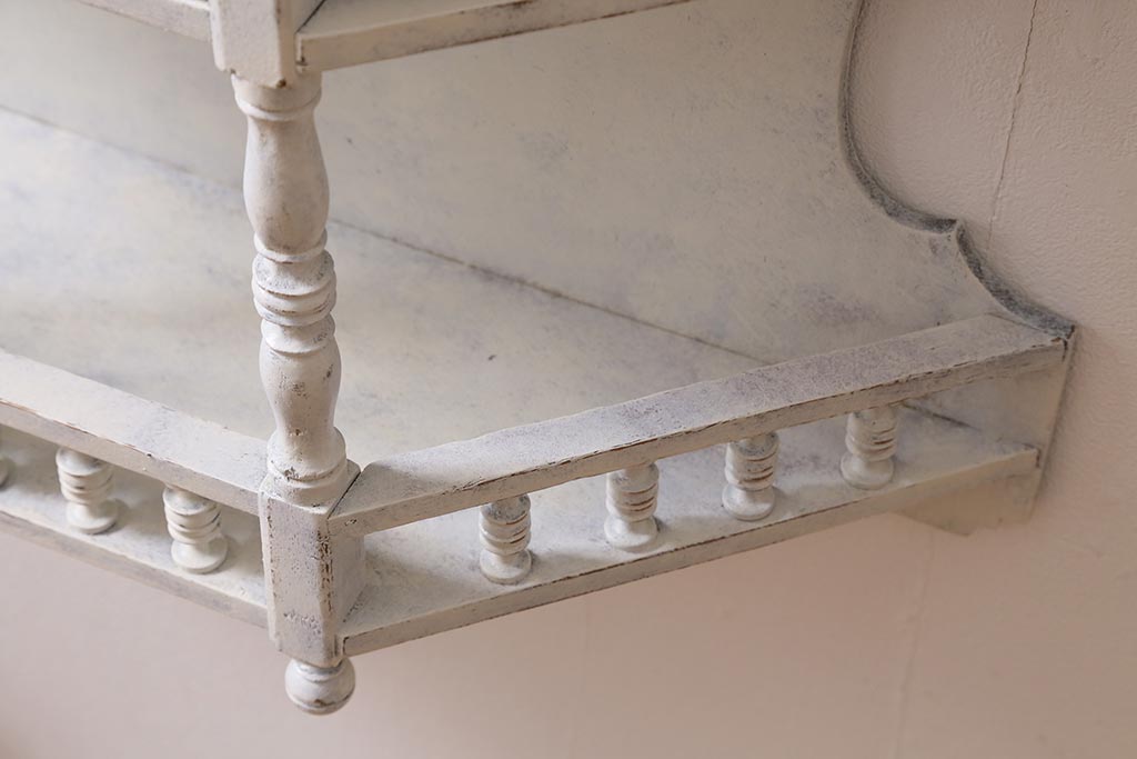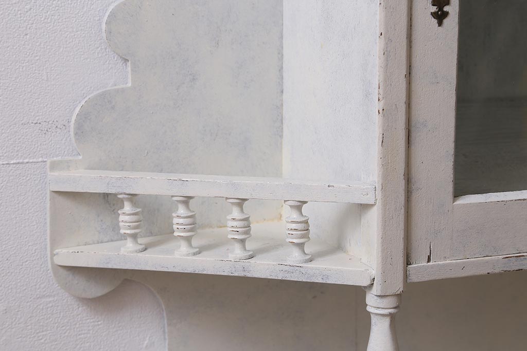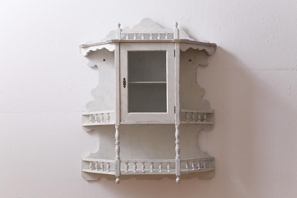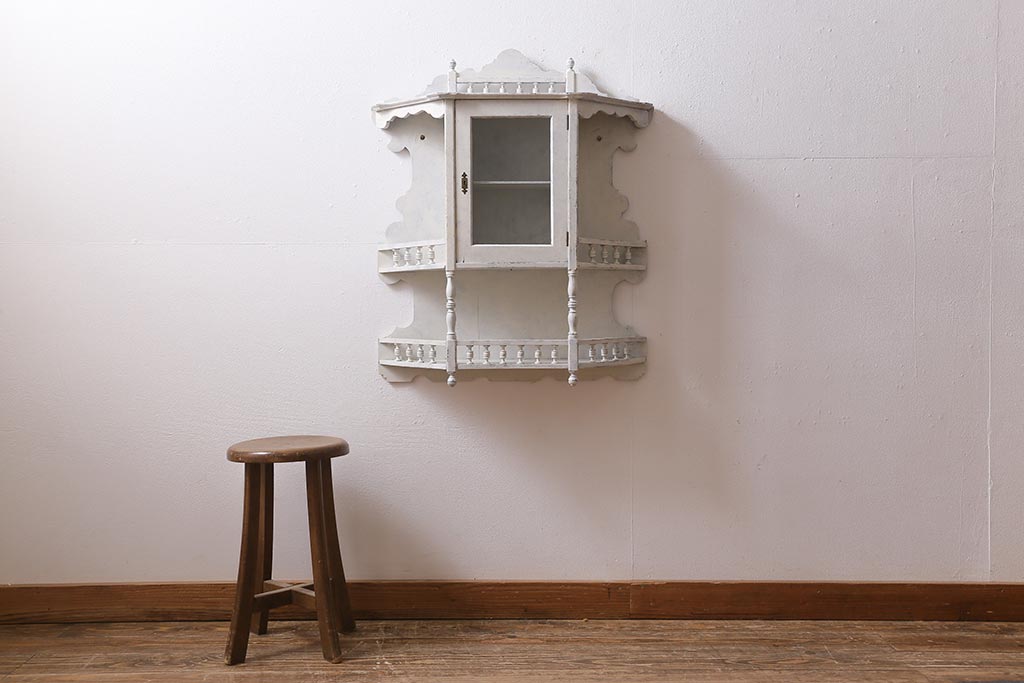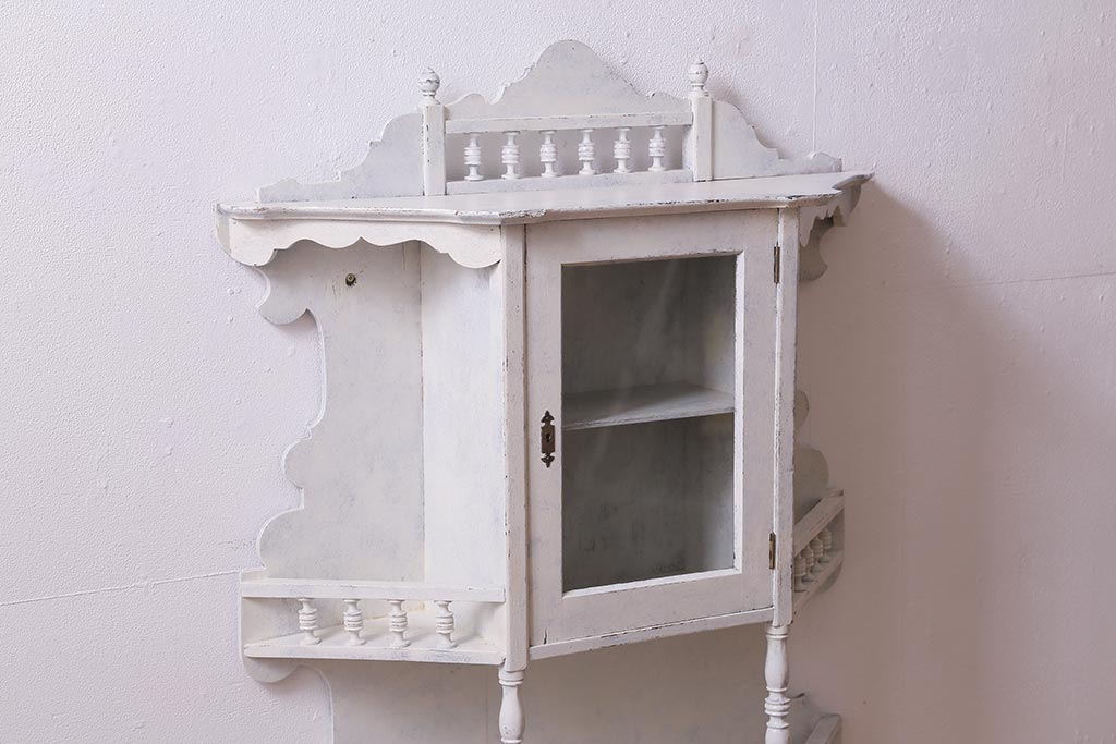 キャビネット・戸棚 > アンティーク家具 フランスアンティーク オーク材 シャビーなペイントがおしゃれなウォールキャビネット(壁掛け収納棚、ウォールシェルフ)(R-043691)