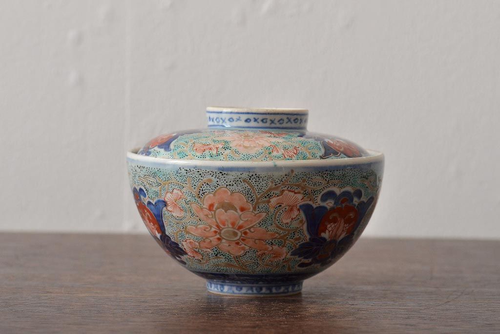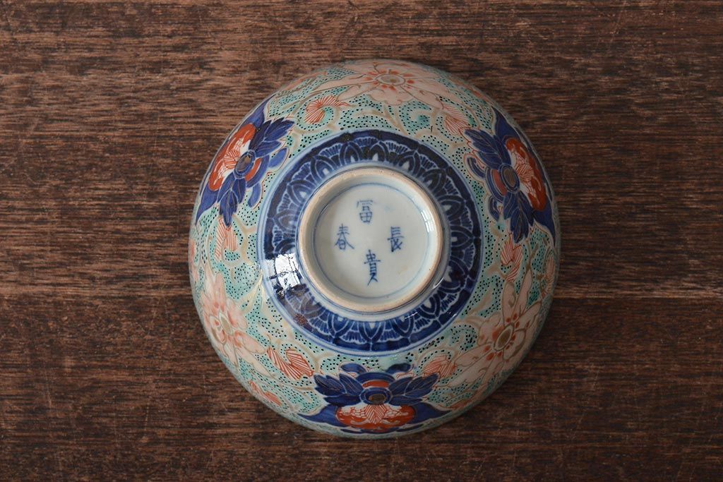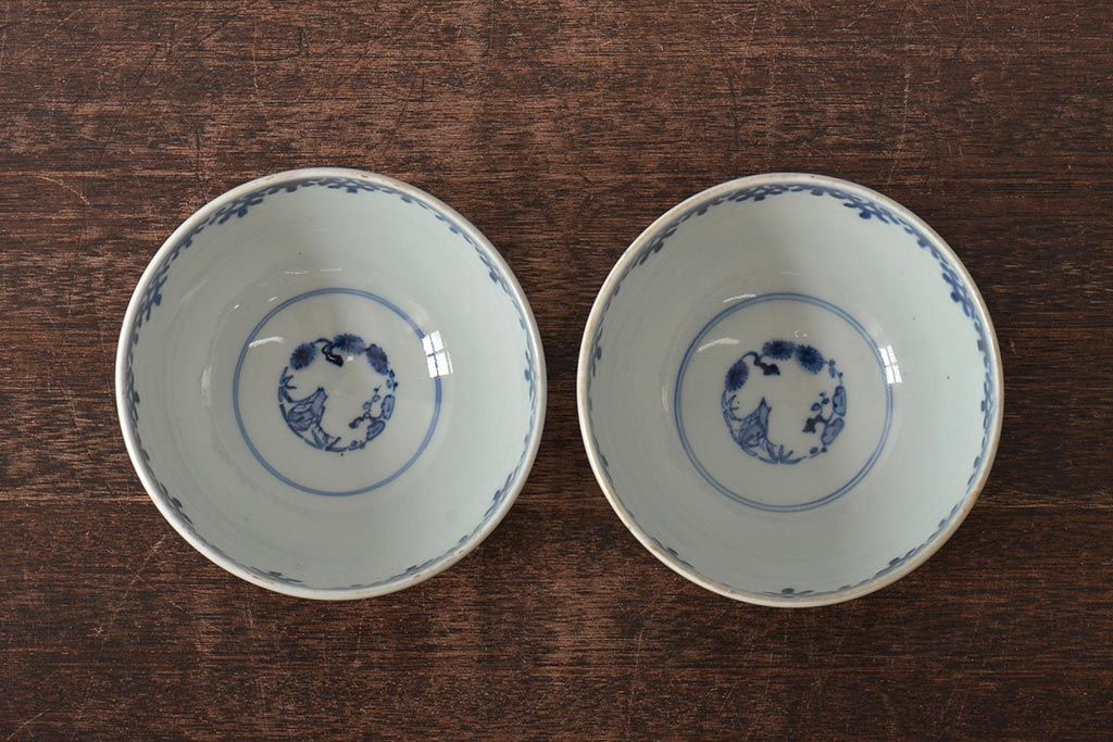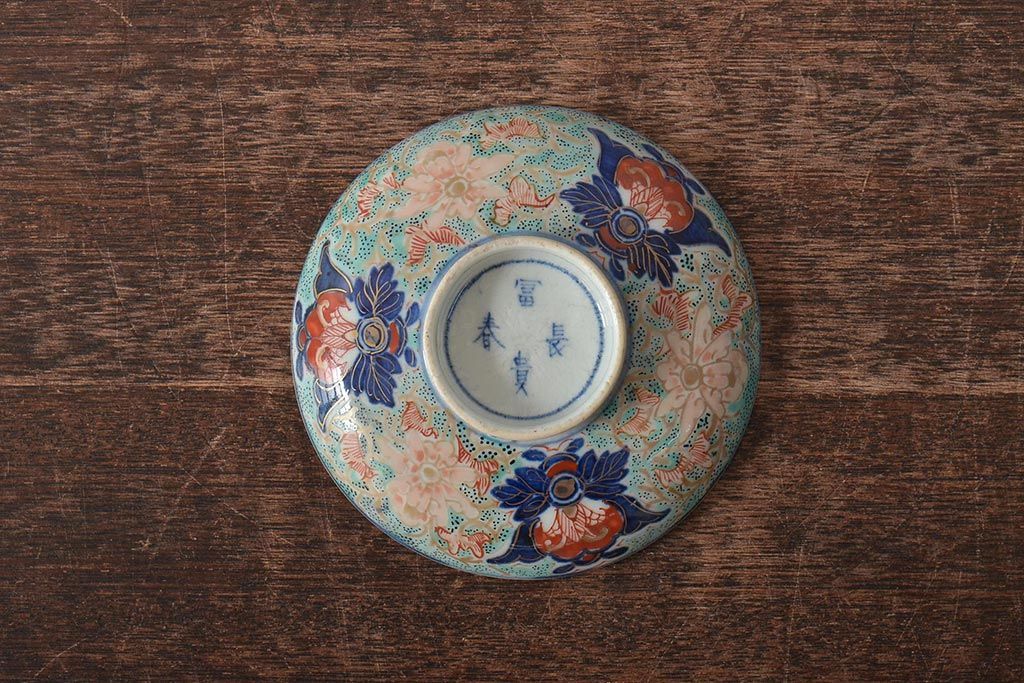 ラフジュ工房> 和食器・茶道具> お椀・茶碗 > 古民具・骨董 幕末明治 富長貴春銘 色絵染付蓋茶碗2客セット(和食器)(R-043345)