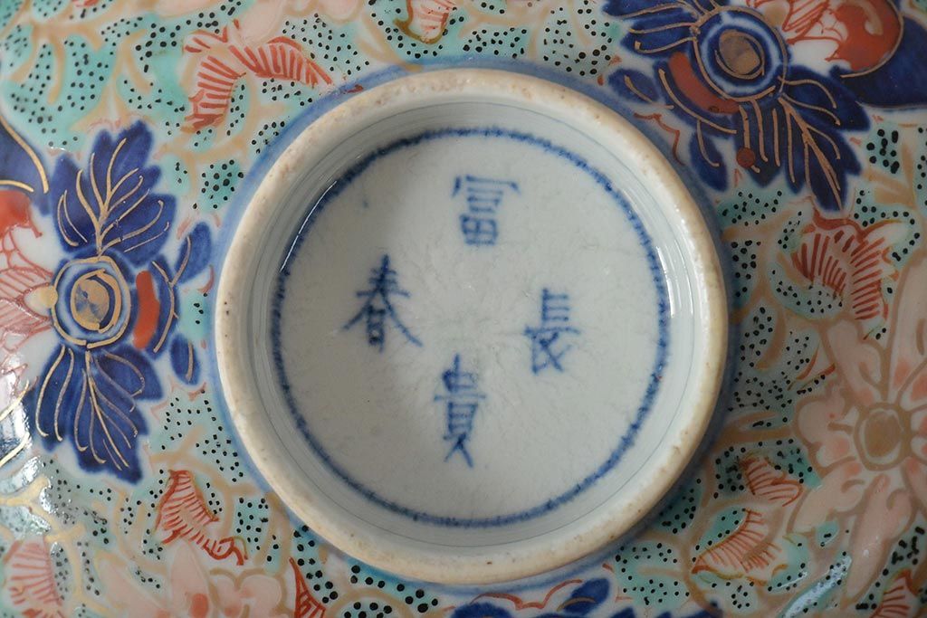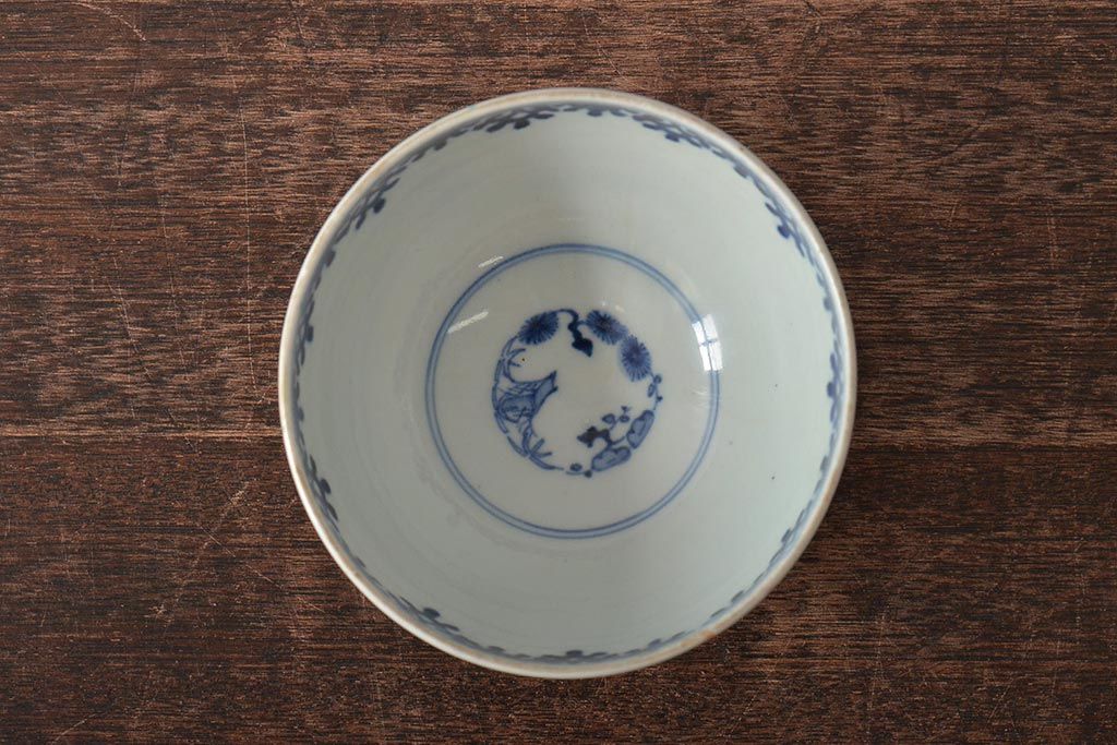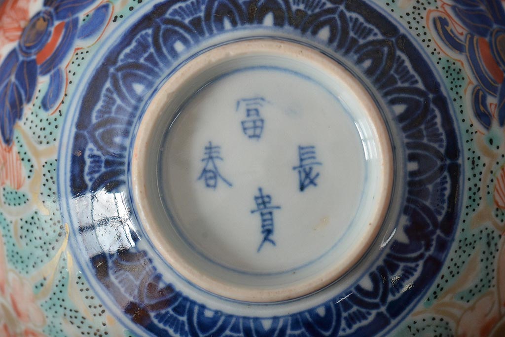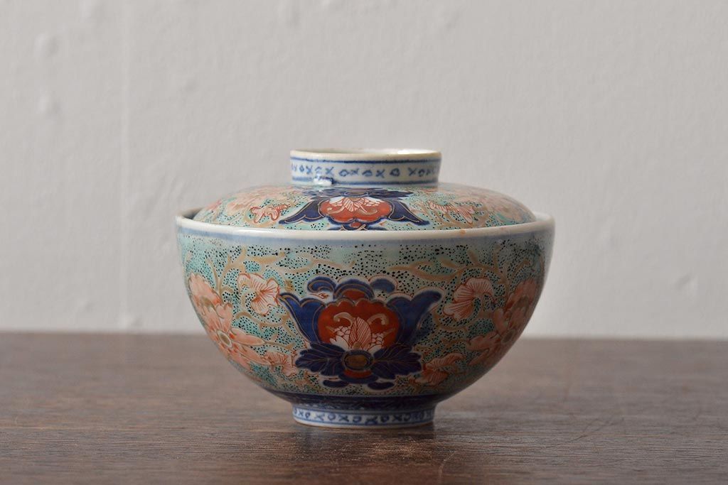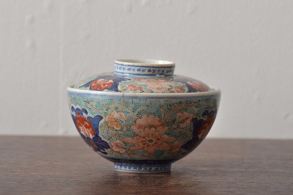 ラフジュ工房> 和食器・茶道具> お椀・茶碗 > 古民具・骨董 幕末明治 富長貴春銘 色絵染付蓋茶碗2客セット(和食器)(R-043345)