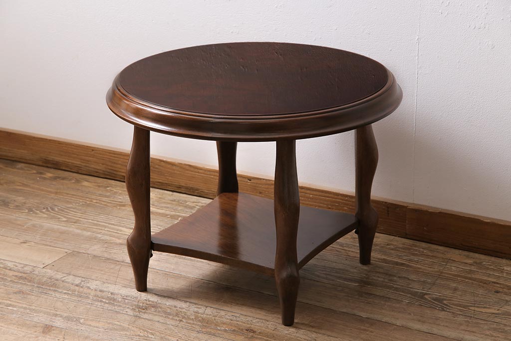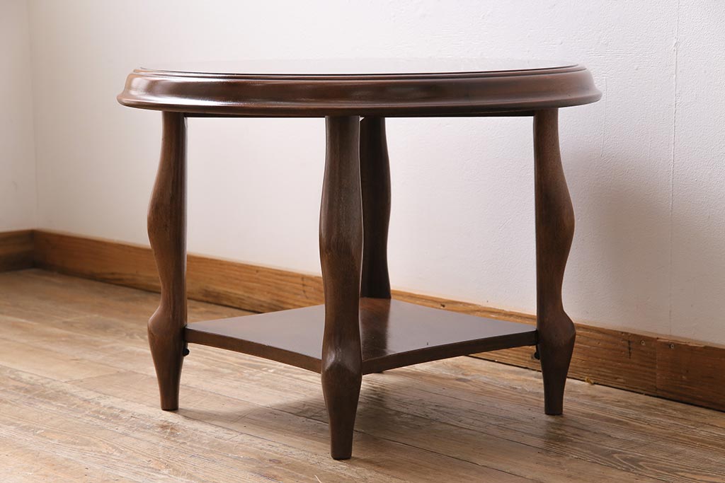 テーブル> 丸テーブル > ビンテージ家具 オールドマルニ maruni(マルニ木工) 棚付き アンティークスタイルにおすすめな木製のサイドテーブル(コーヒーテーブル)(R-043797)