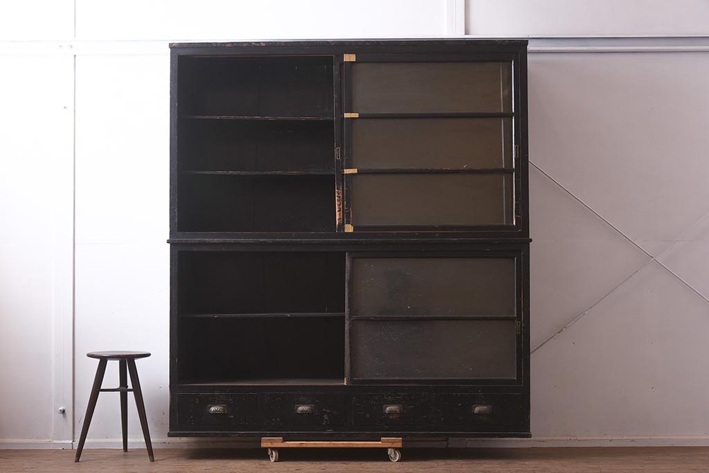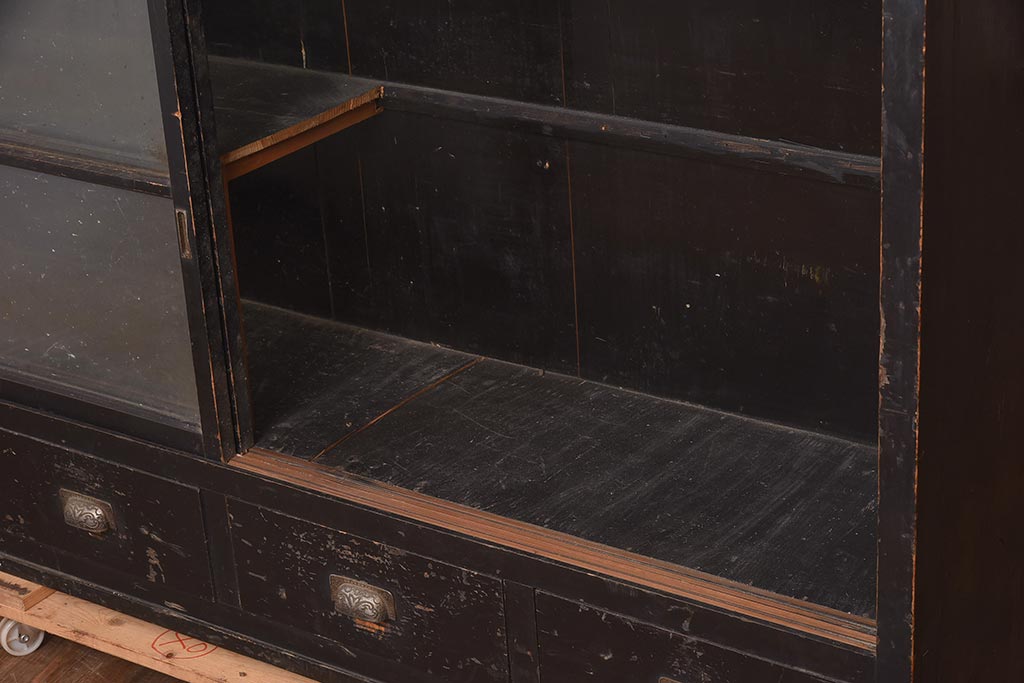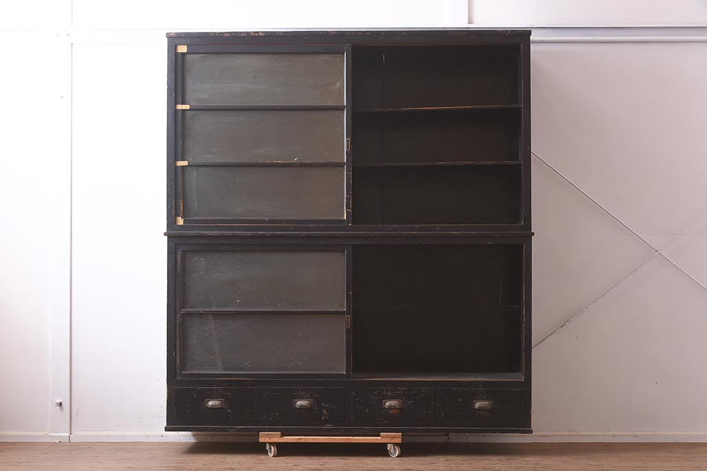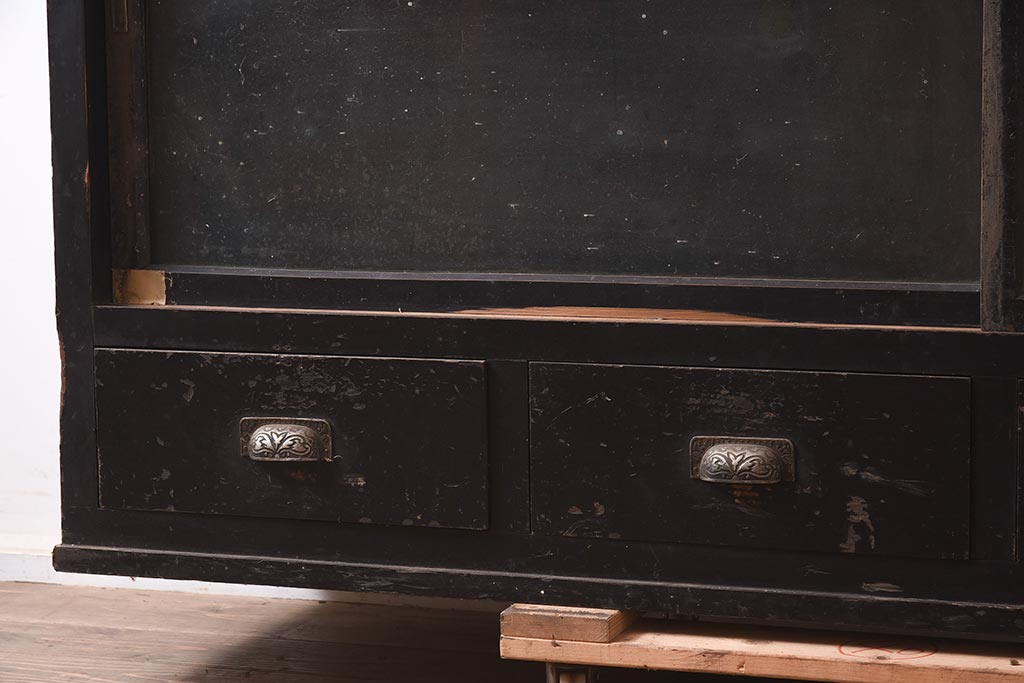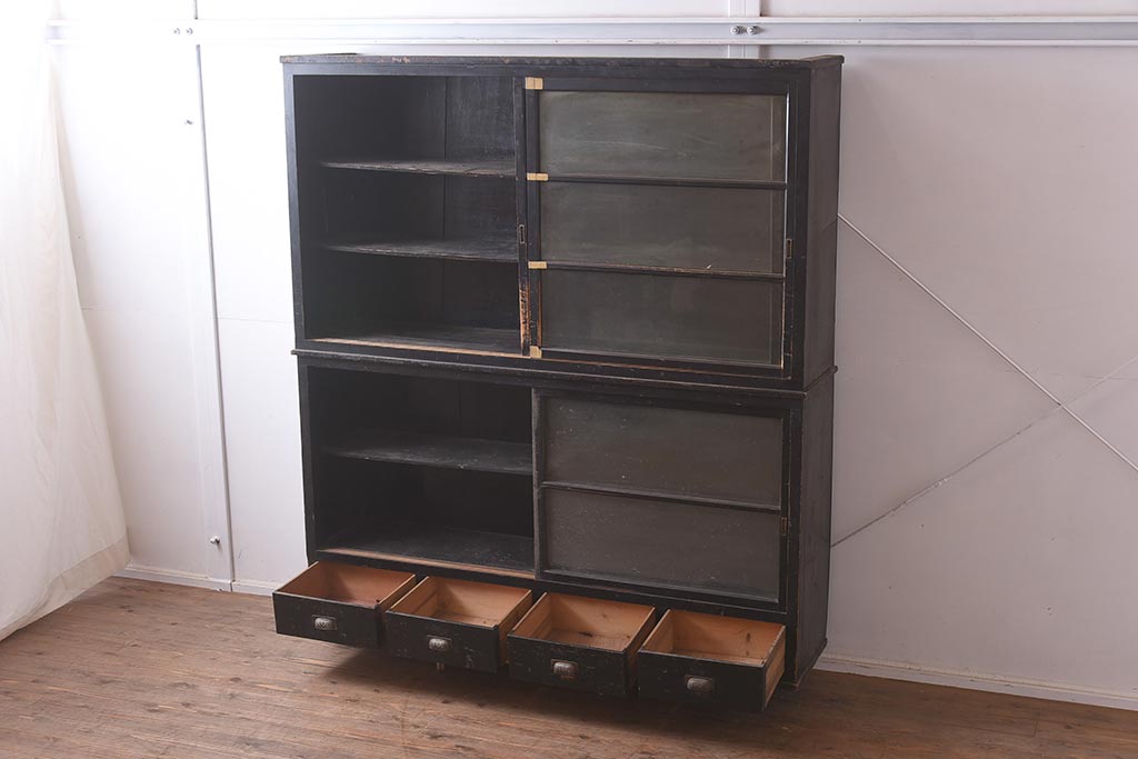 アンティーク家具 和製アンティーク 大正昭和初期 引き出し付の重ねガラス戸棚(キャビネット、収納棚)(R-043598)です。