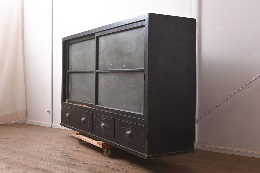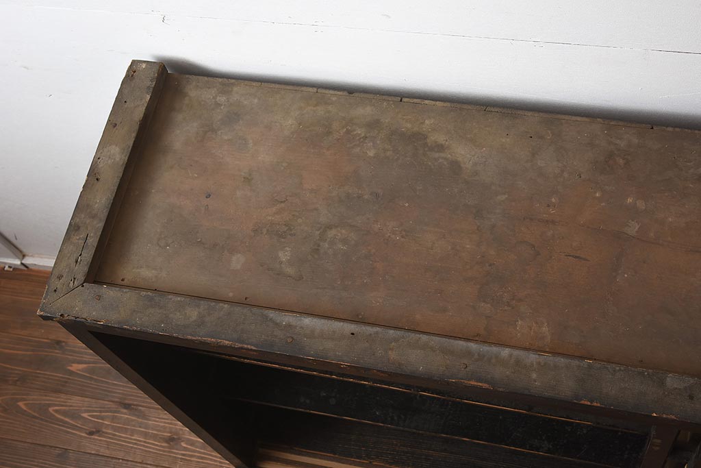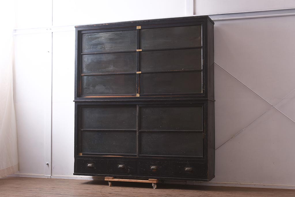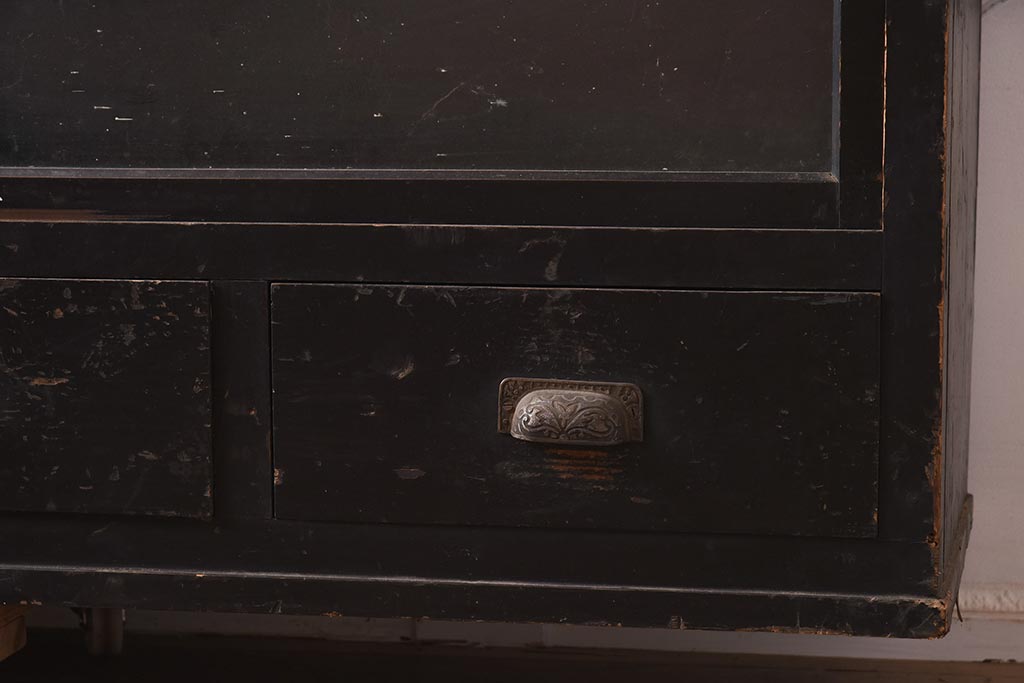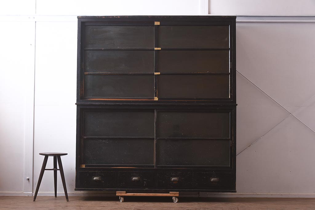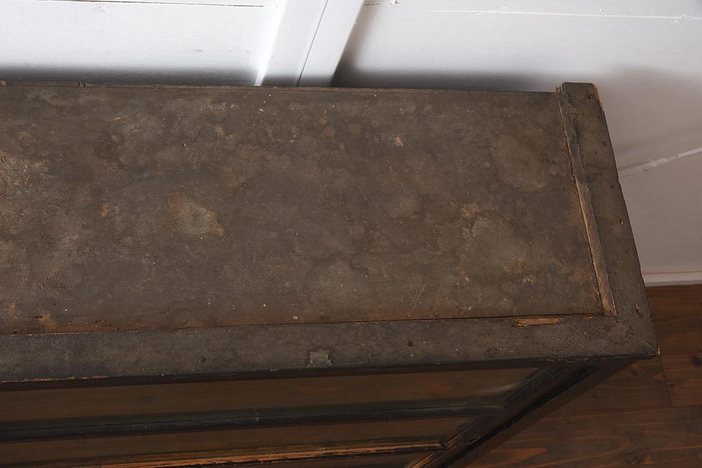 アンティーク家具 和製アンティーク 大正昭和初期 引き出し付の重ねガラス戸棚(キャビネット、収納棚)(R-043598)です。