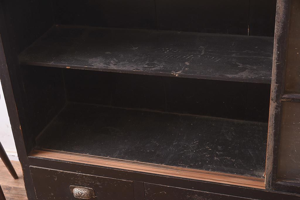 和製アンティークのガラス戸棚です。