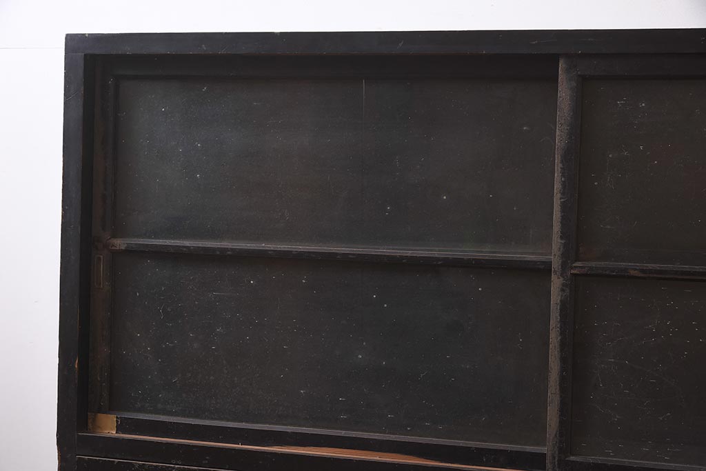 アンティーク家具 和製アンティーク 大正昭和初期 引き出し付の重ねガラス戸棚(キャビネット、収納棚)(R-043598)