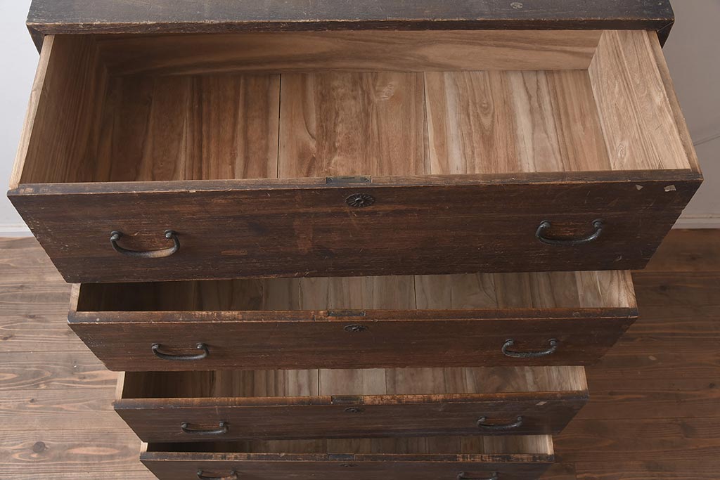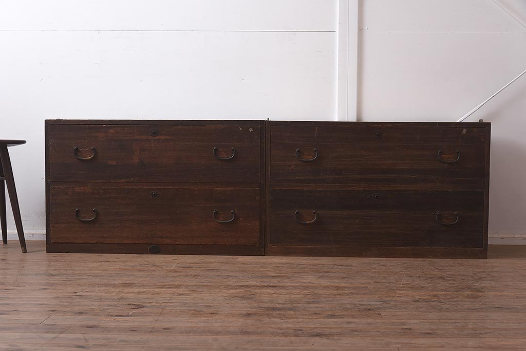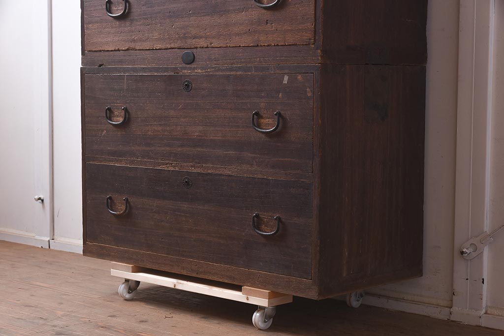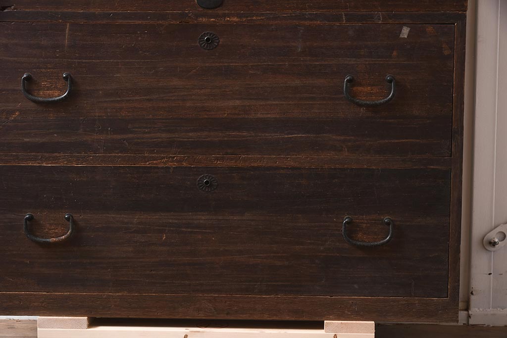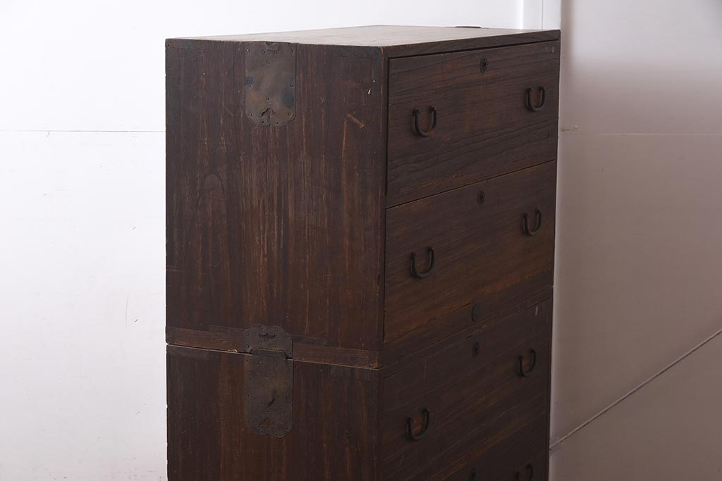 和箪笥 > アンティーク家具 昭和初期 総桐材 味わい深い風合いシンプルな重ね箪笥(衣裳箪笥、引き出し、時代箪笥)(R-043564)