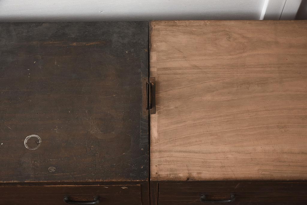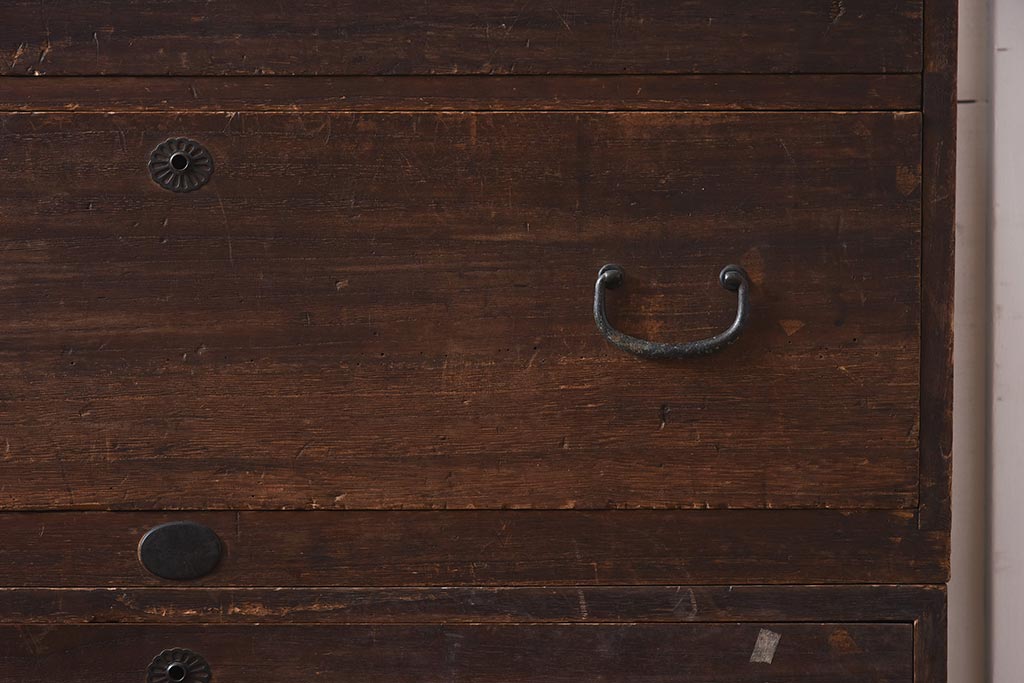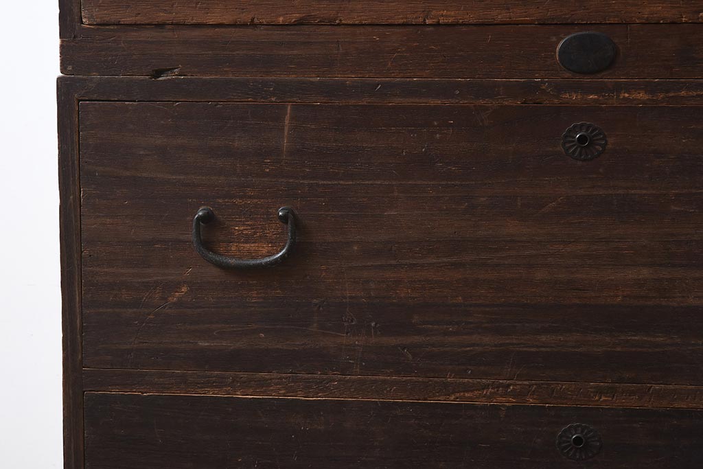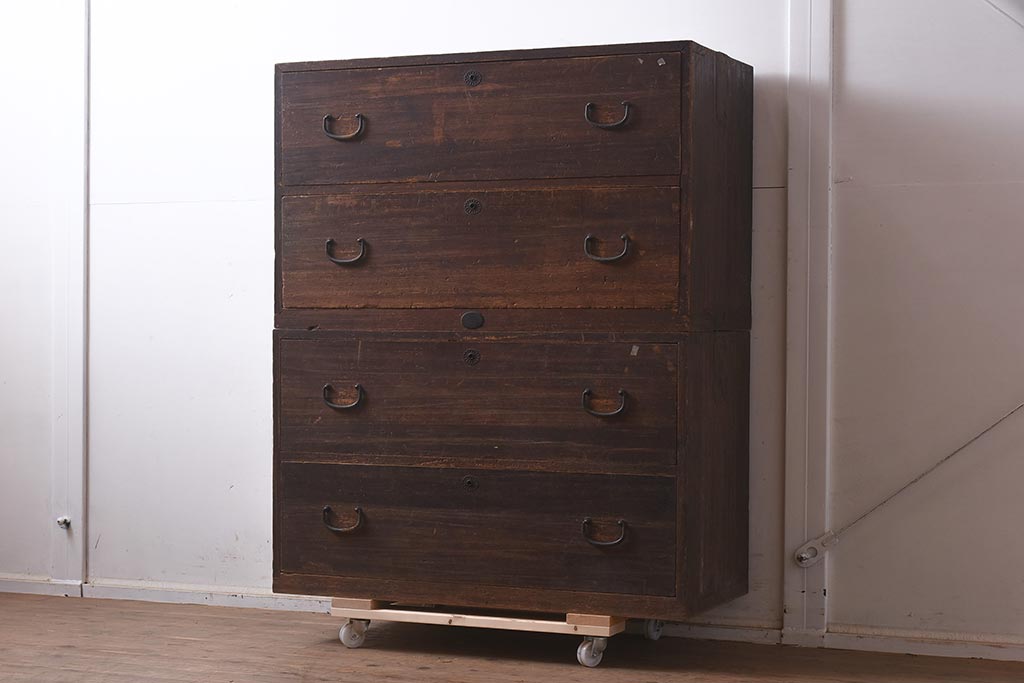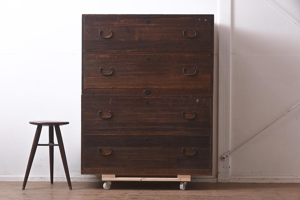 和箪笥 > アンティーク家具 昭和初期 総桐材 味わい深い風合いシンプルな重ね箪笥(衣裳箪笥、引き出し、時代箪笥)(R-043564)