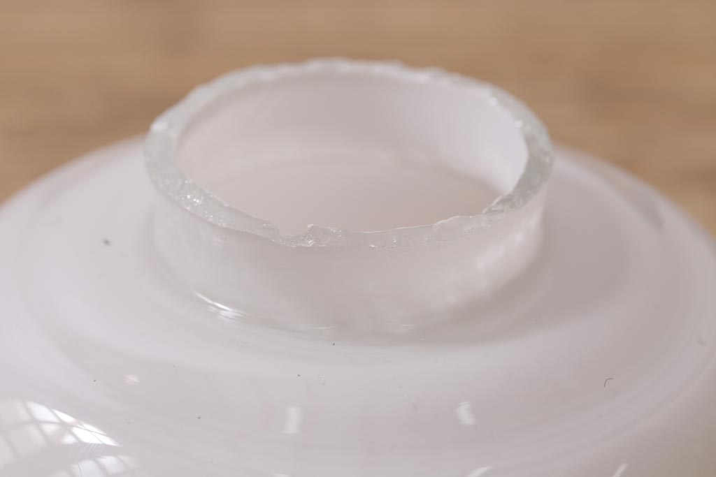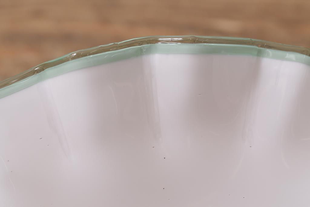 アンティーク照明 昭和初期 おたるガラス 緑縁 フリルシェードの天井照明(北一硝子?ランプシェード、電笠、花笠)(R-043588)です。